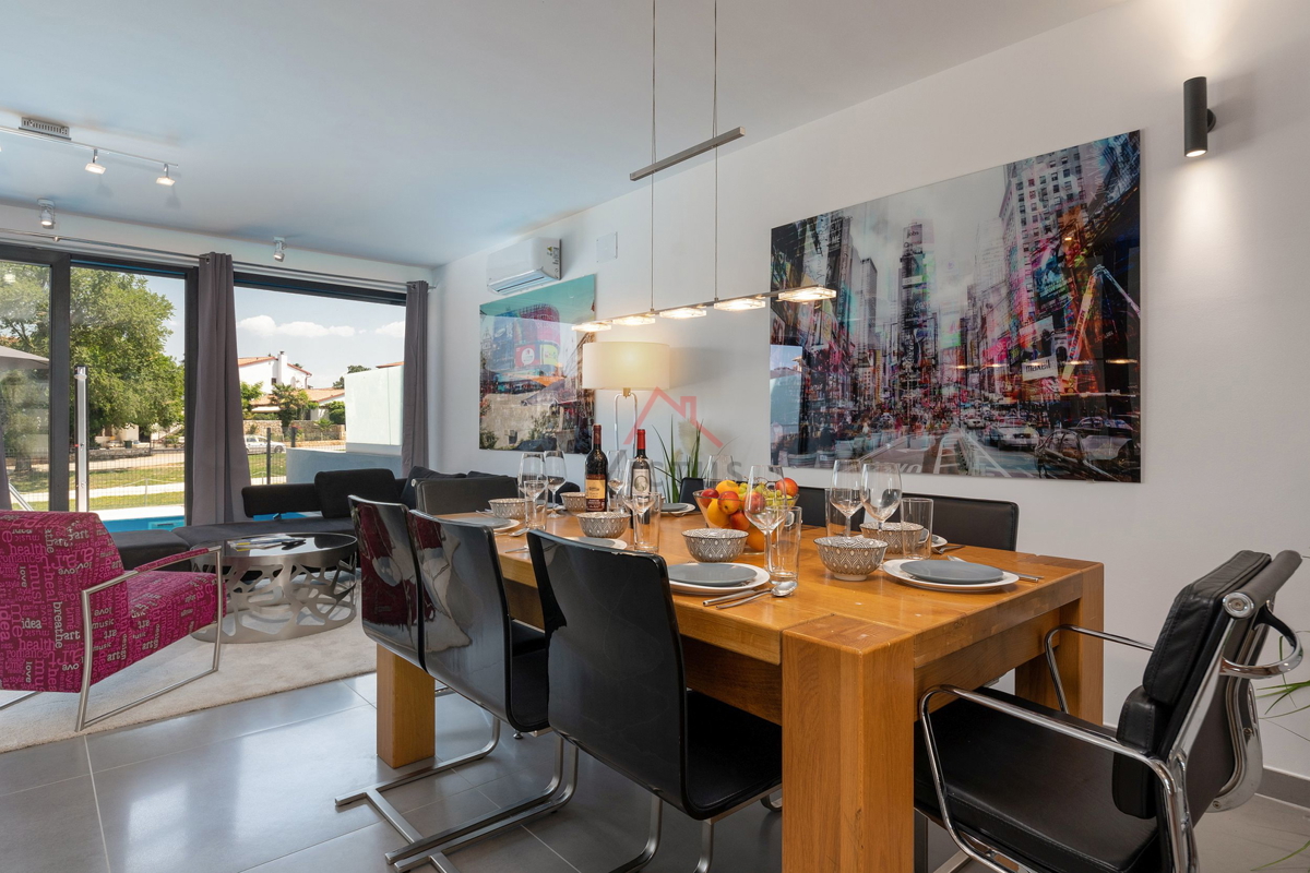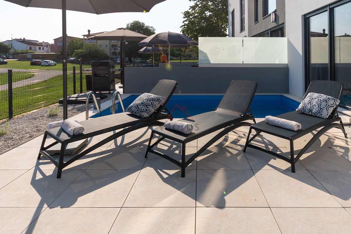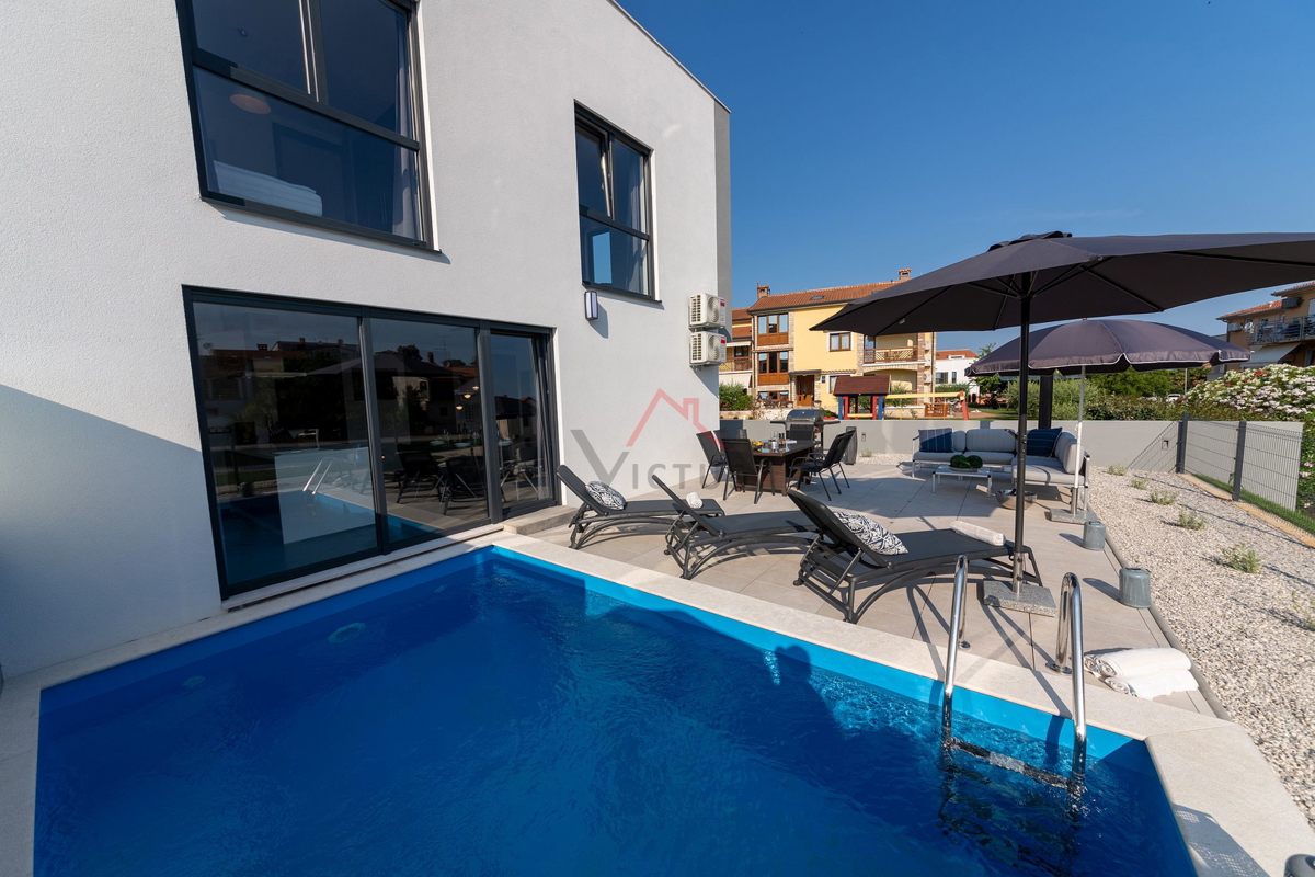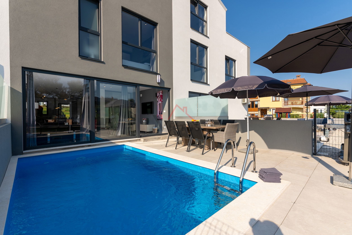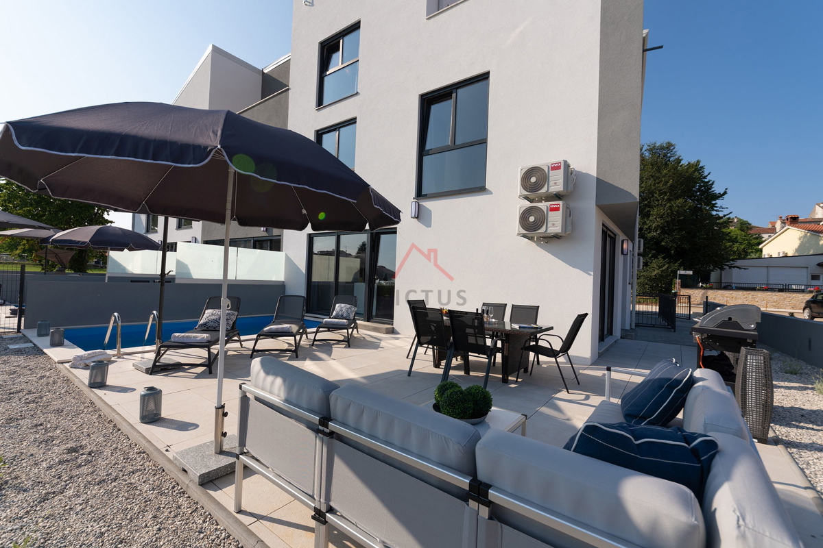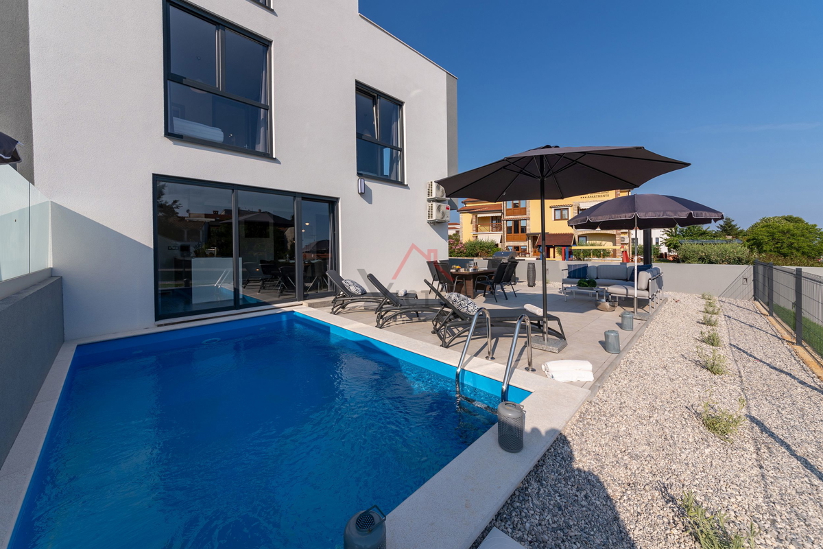 Haus zum Verkauf auf drei Etagen mit Pool in attraktiver Lage, 500 m vom Meer und den nahe gelegenen Stränden entfernt. Objekt Baujahr 2020. Poreč ist eine Touristenstadt an der Ostküste Istriens, die Architektur mit vielfältiger Geschichte, makellos sau