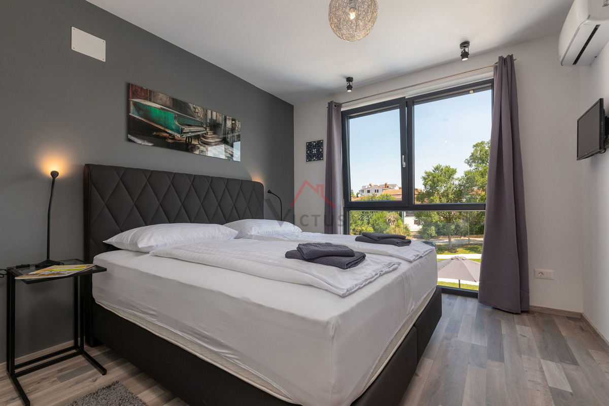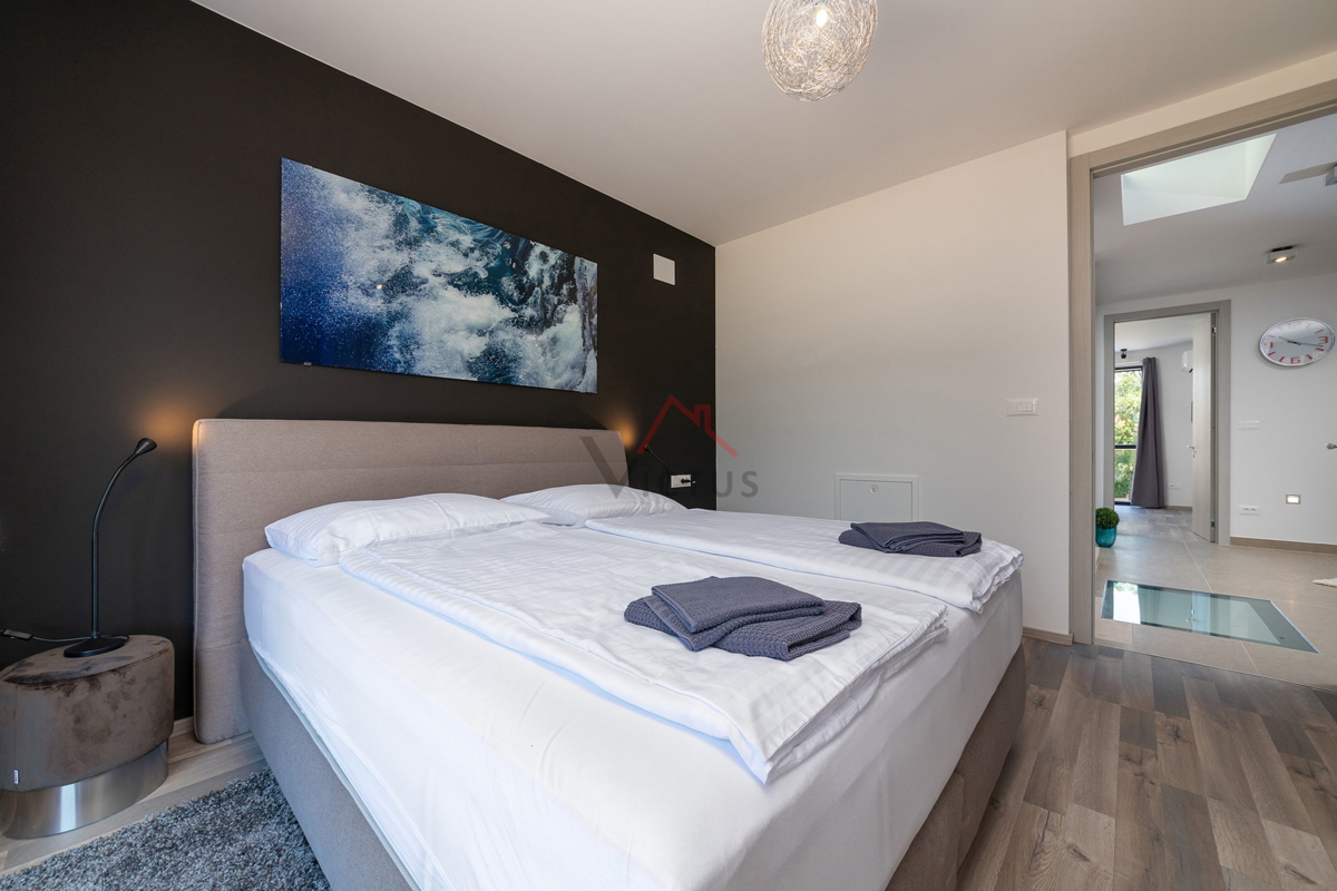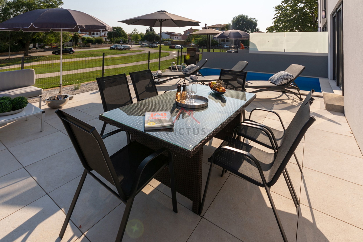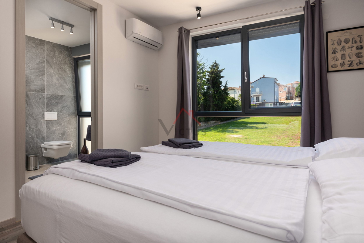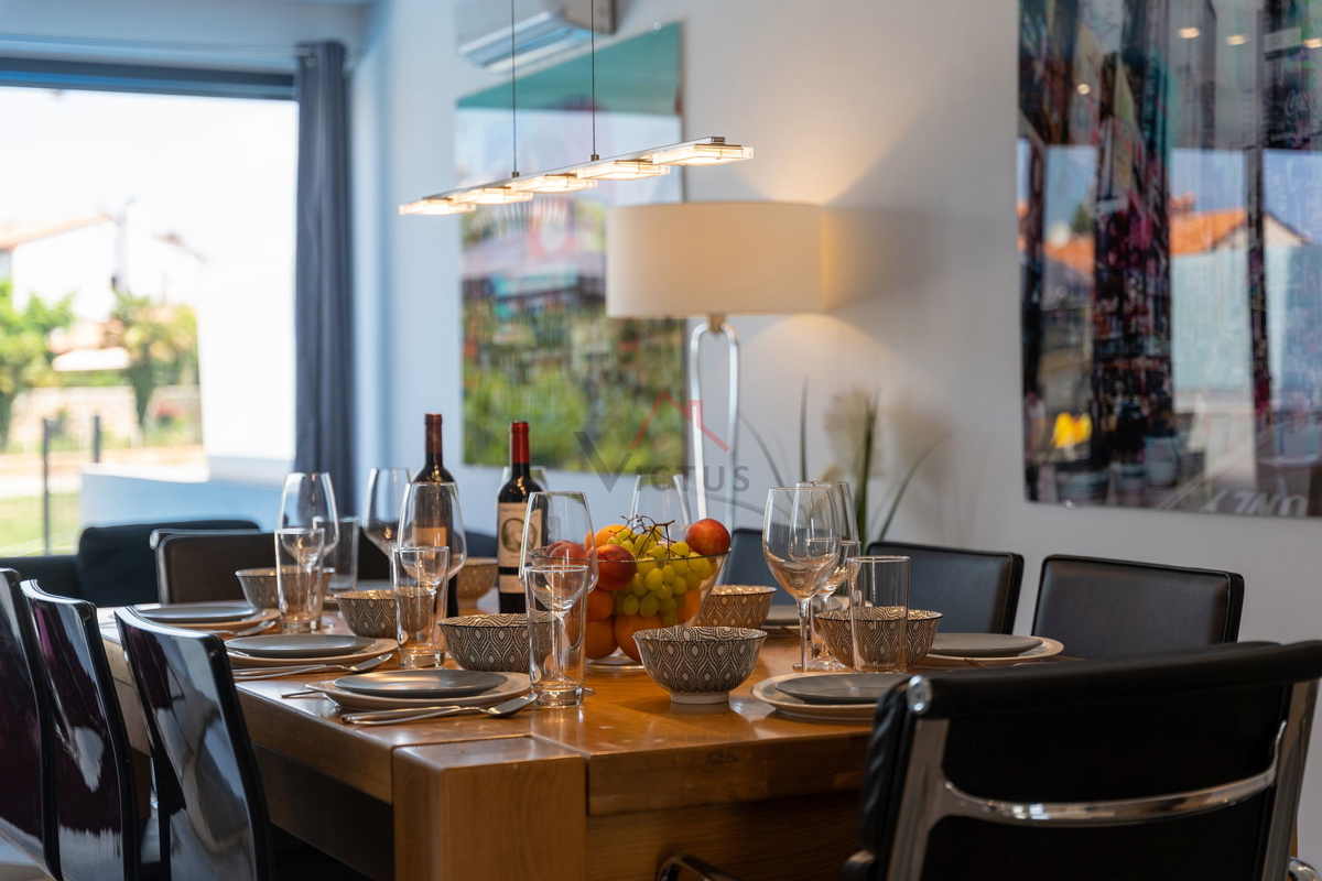 Haus zum Verkauf auf drei Etagen mit Pool in attraktiver Lage, 500 m vom Meer und den nahe gelegenen Stränden entfernt. Objekt Baujahr 2020. Poreč ist eine Touristenstadt an der Ostküste Istriens, die Architektur mit vielfältiger Geschichte, makellos sau