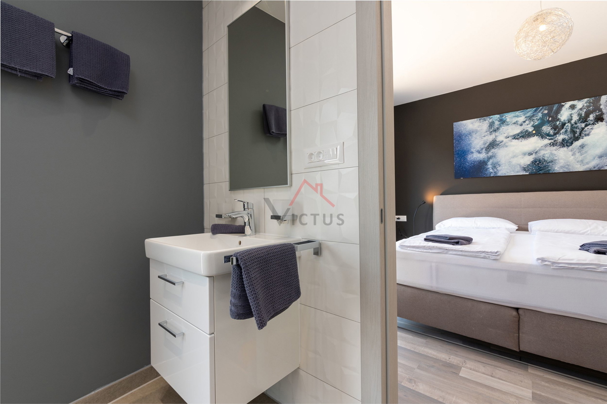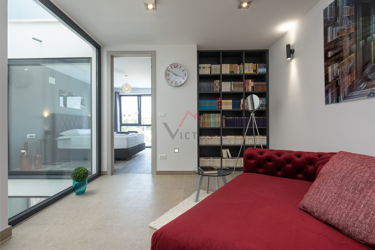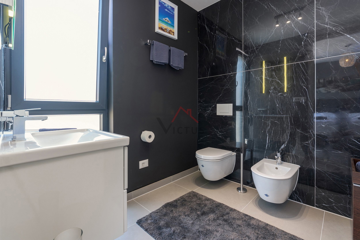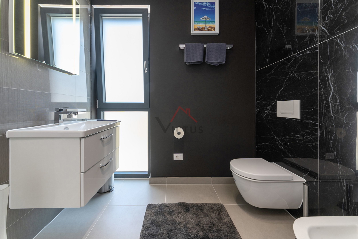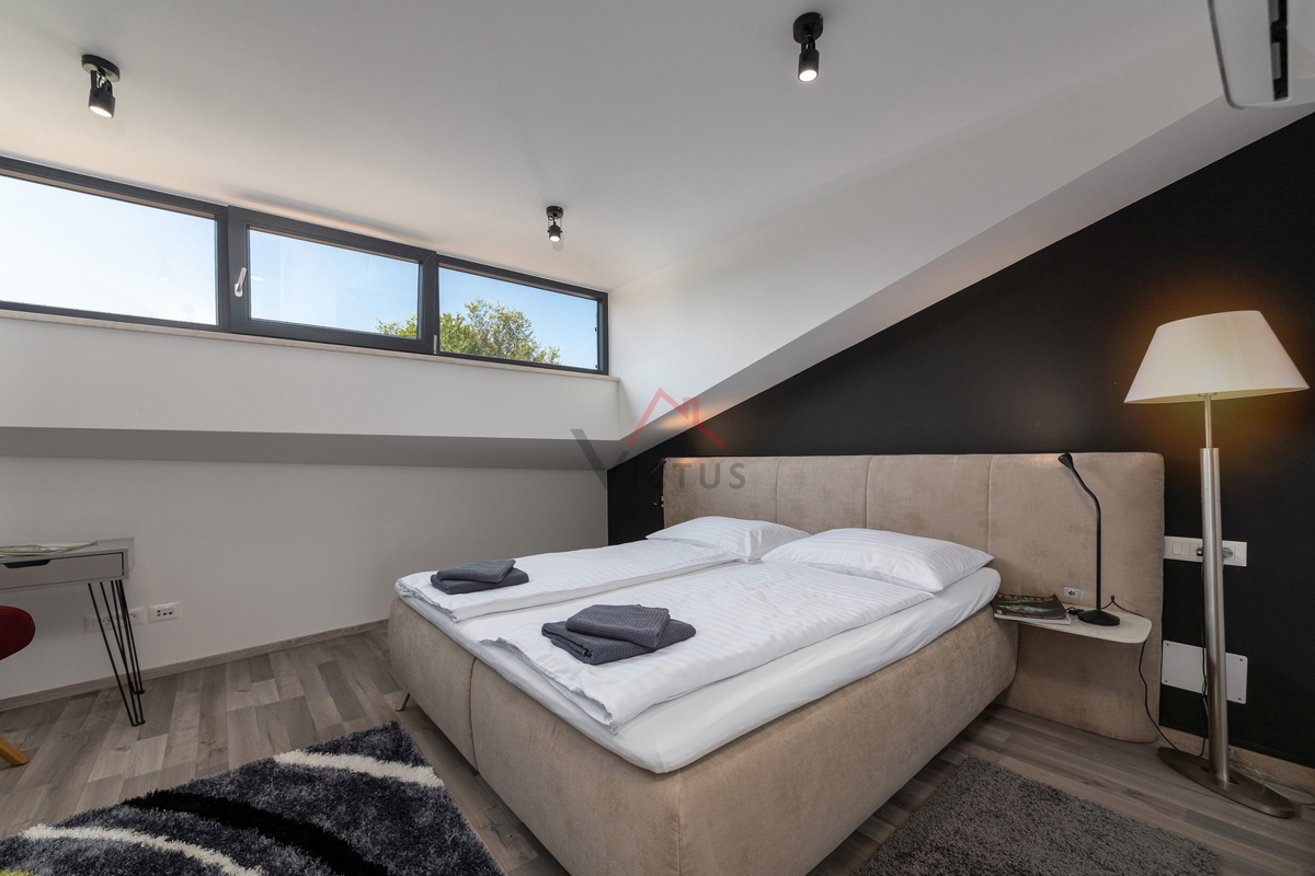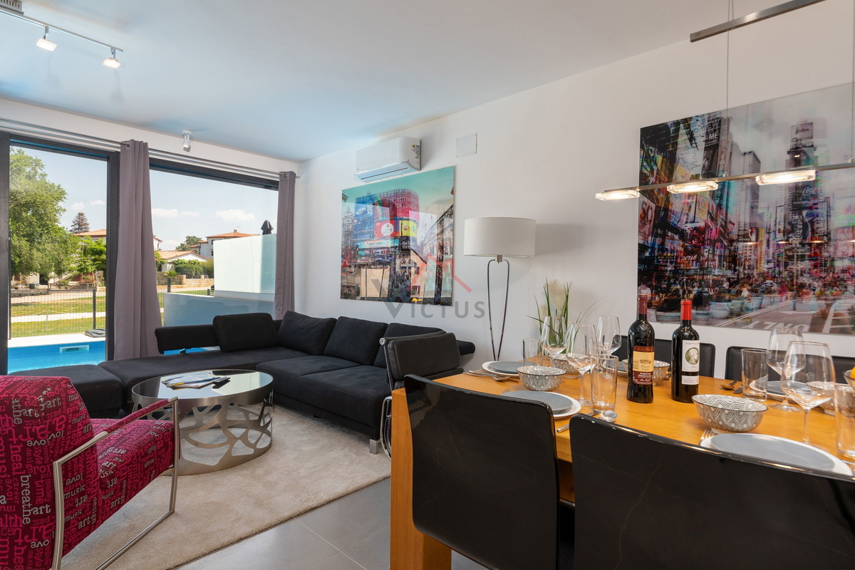 Haus zum Verkauf auf drei Etagen mit Pool in attraktiver Lage, 500 m vom Meer und den nahe gelegenen Stränden entfernt. Objekt Baujahr 2020. Poreč ist eine Touristenstadt an der Ostküste Istriens, die Architektur mit vielfältiger Geschichte, makellos sau