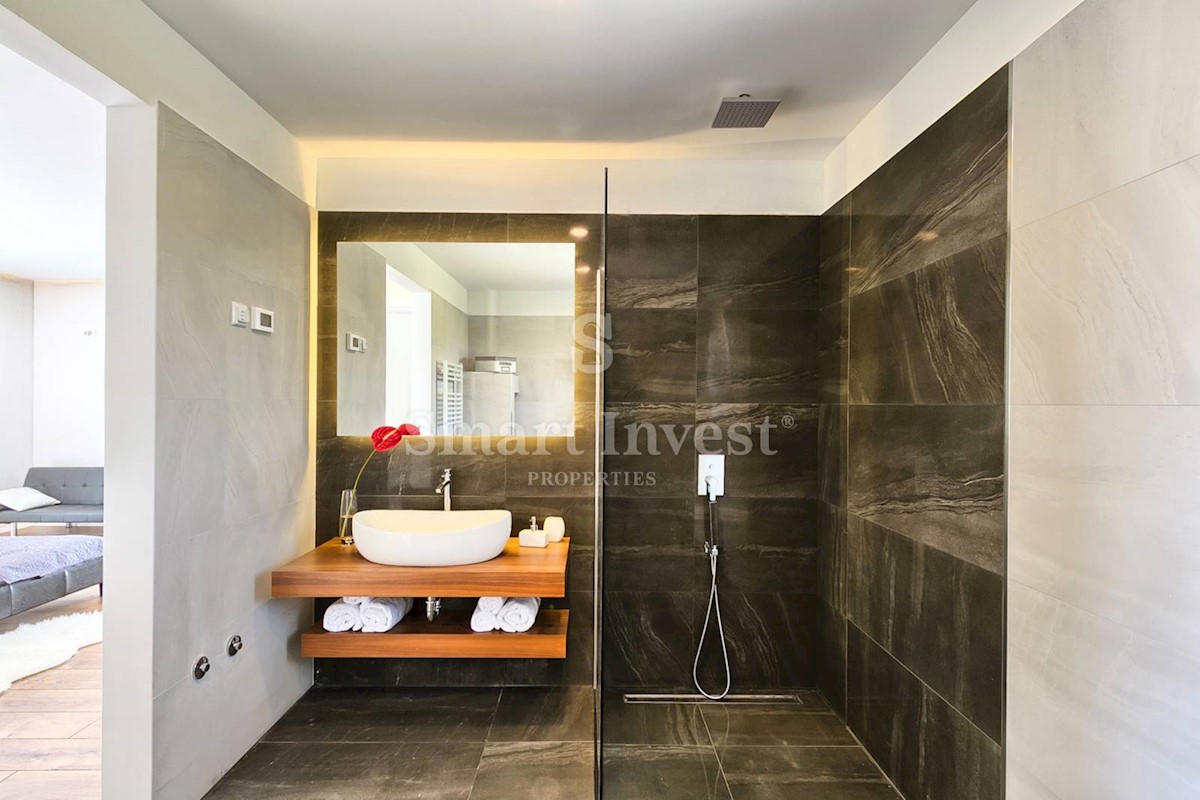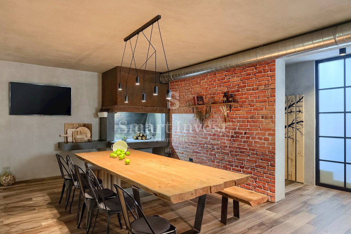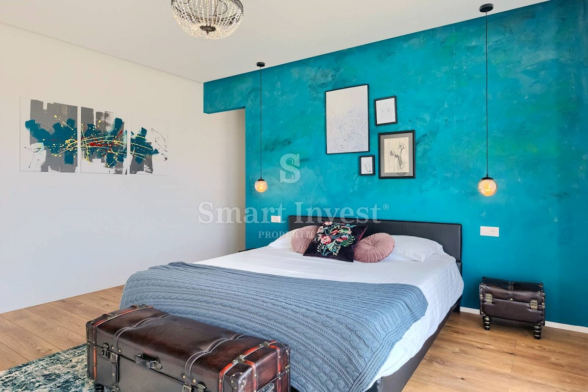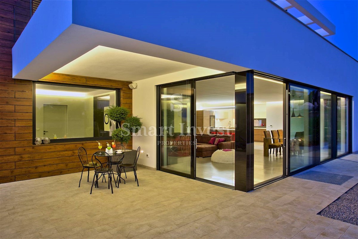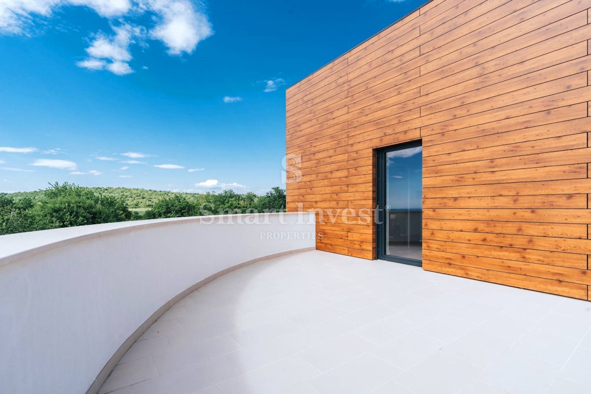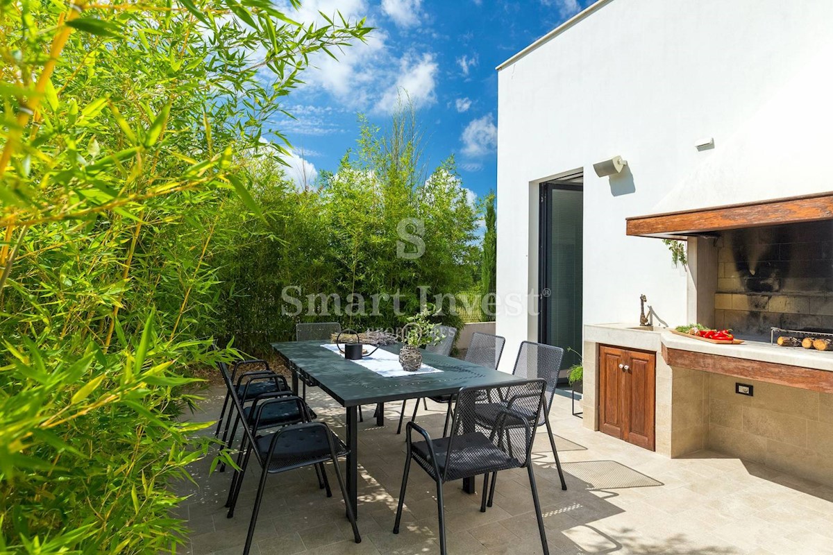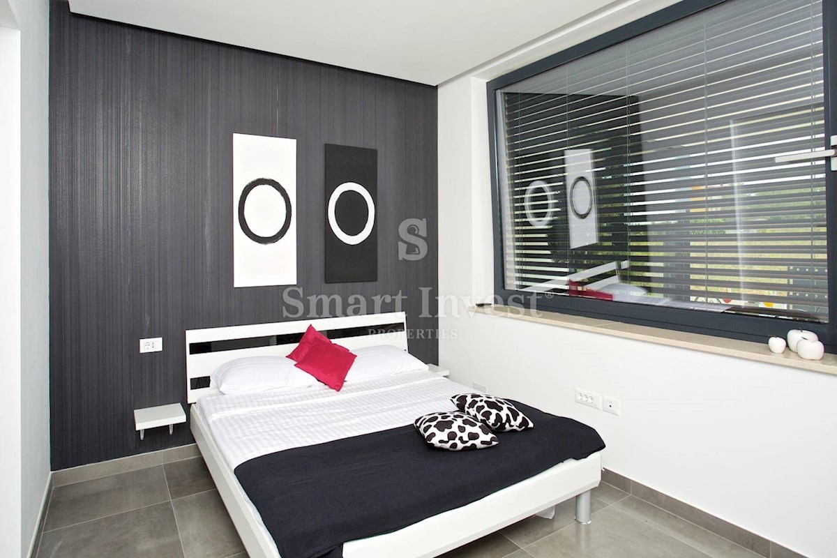 ISTRIEN - POREČ Nähe. Zum Verkauf steht eine moderne Villa mit Pool und Meerblick in schöner ruhiger Lage in der Nähe von Porec, 10 km vom Meer entfernt. Die Villa besteht aus Keller, Erdgeschoss und Obergeschoss, mit einer Gesamtfläche von 370 m2 auf ei
