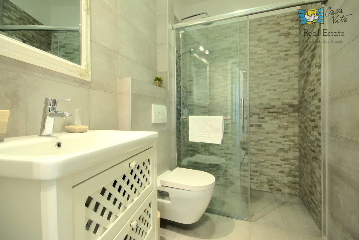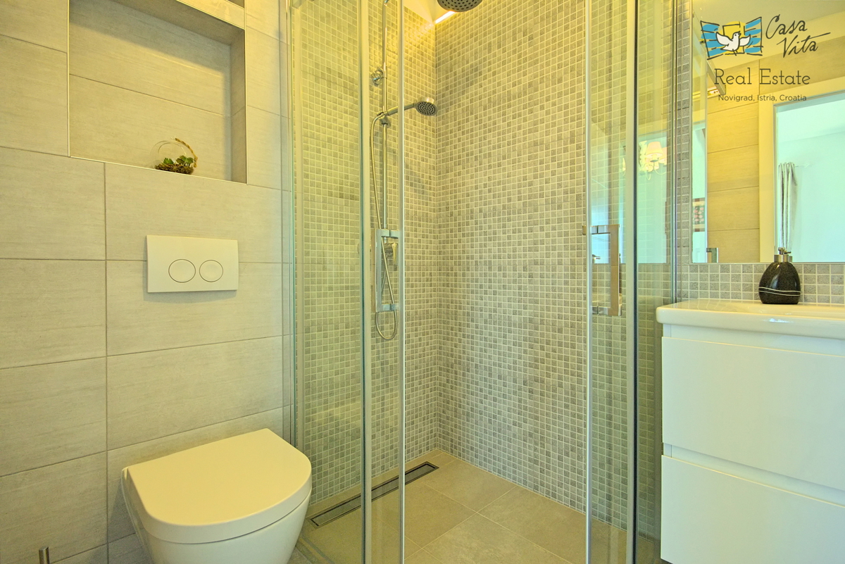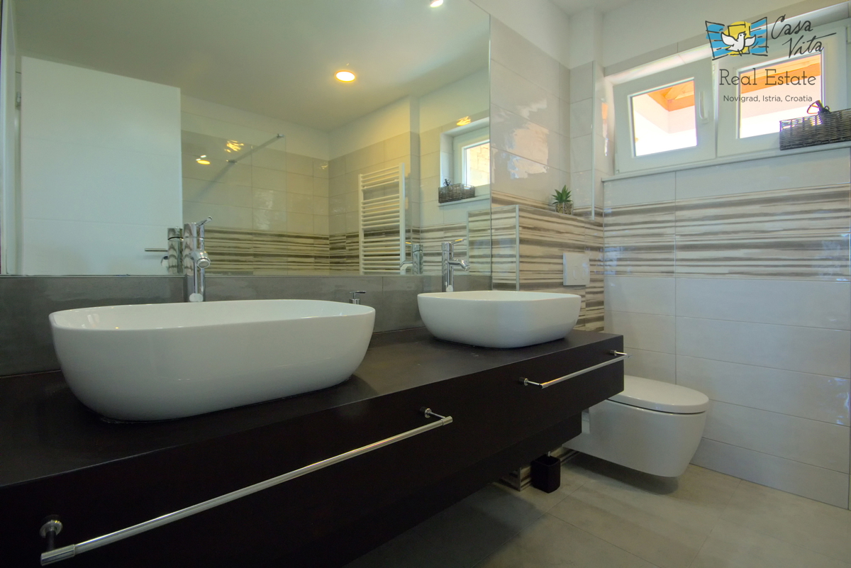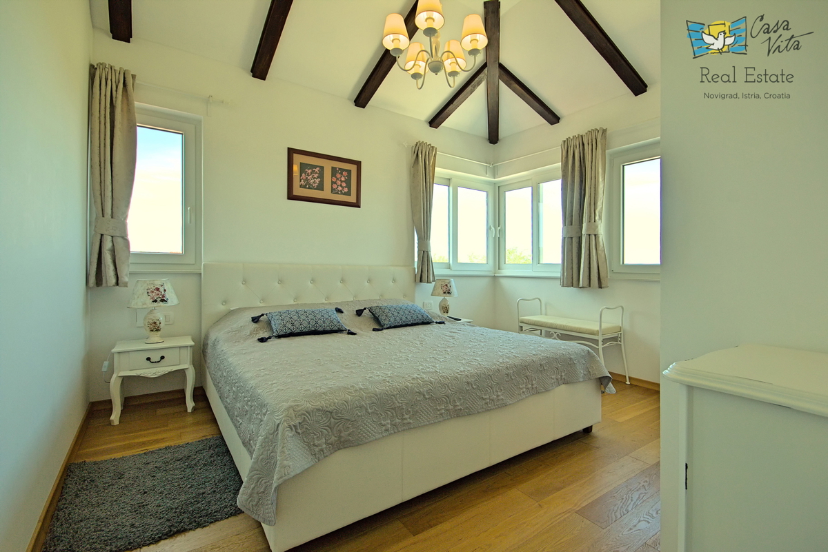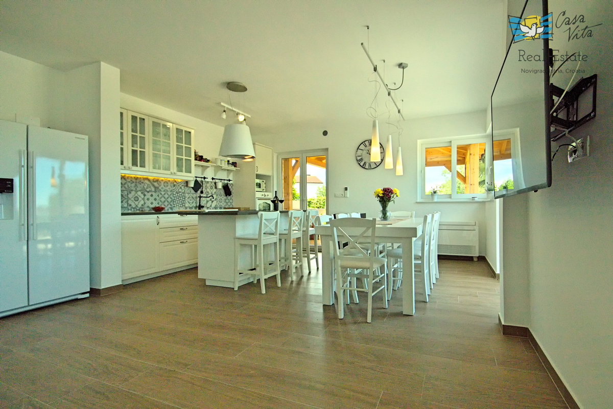 Istria, Poreč Ein neu gebautes Steinhaus zu verkaufen, in schöner und ruhiger Lage, 4 km vom Zentrum von Porec und schönen Stränden entfernt. Die Villa besteht aus Erdgeschoss und 1. Stock Im Erdgeschoss gibt es eine Eingangshalle, ein geräumiges Schla