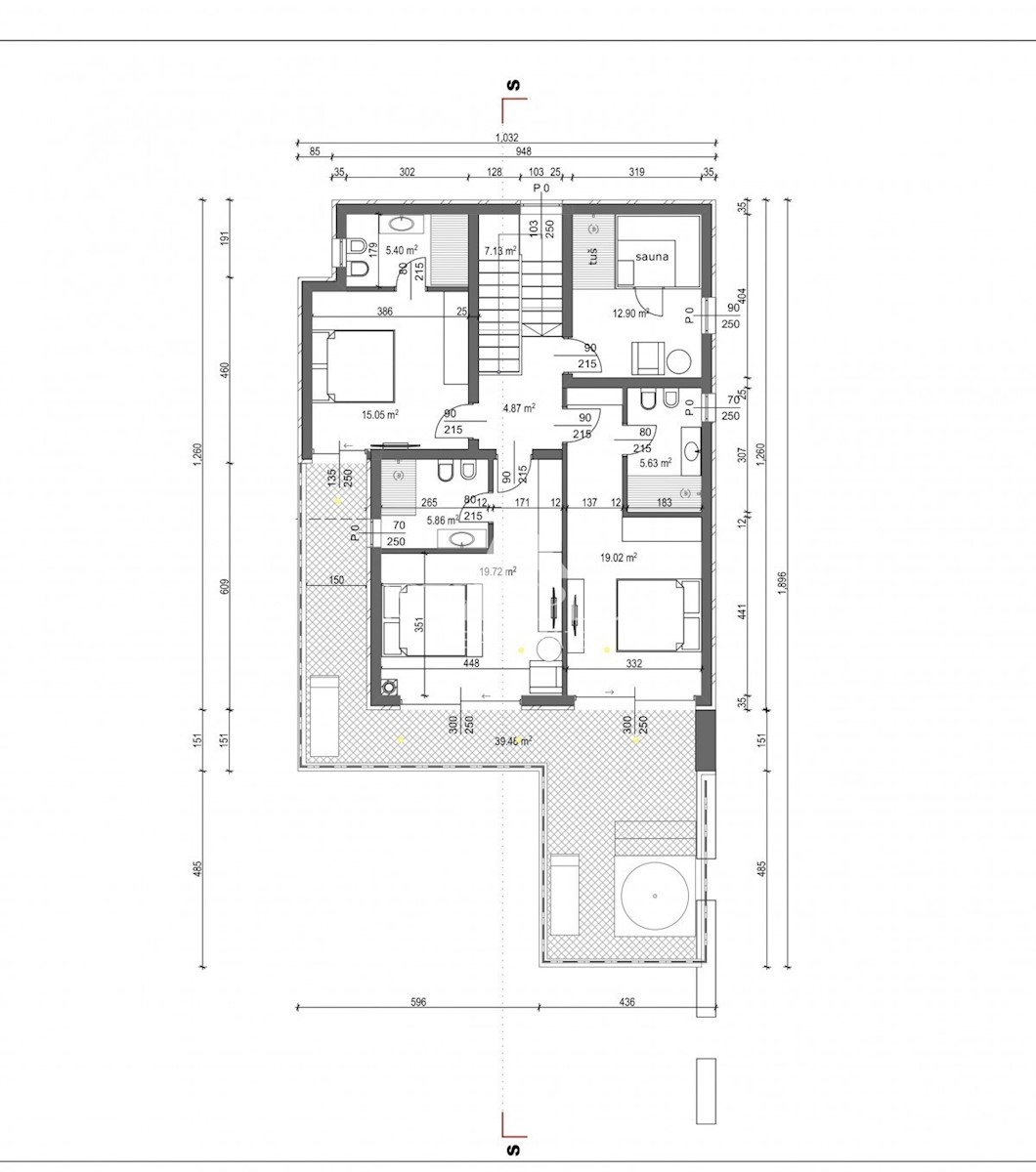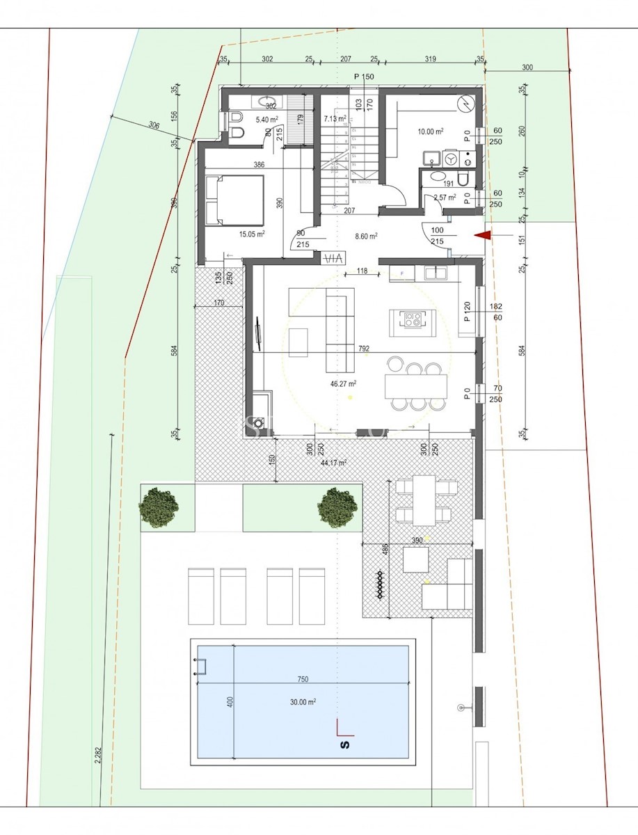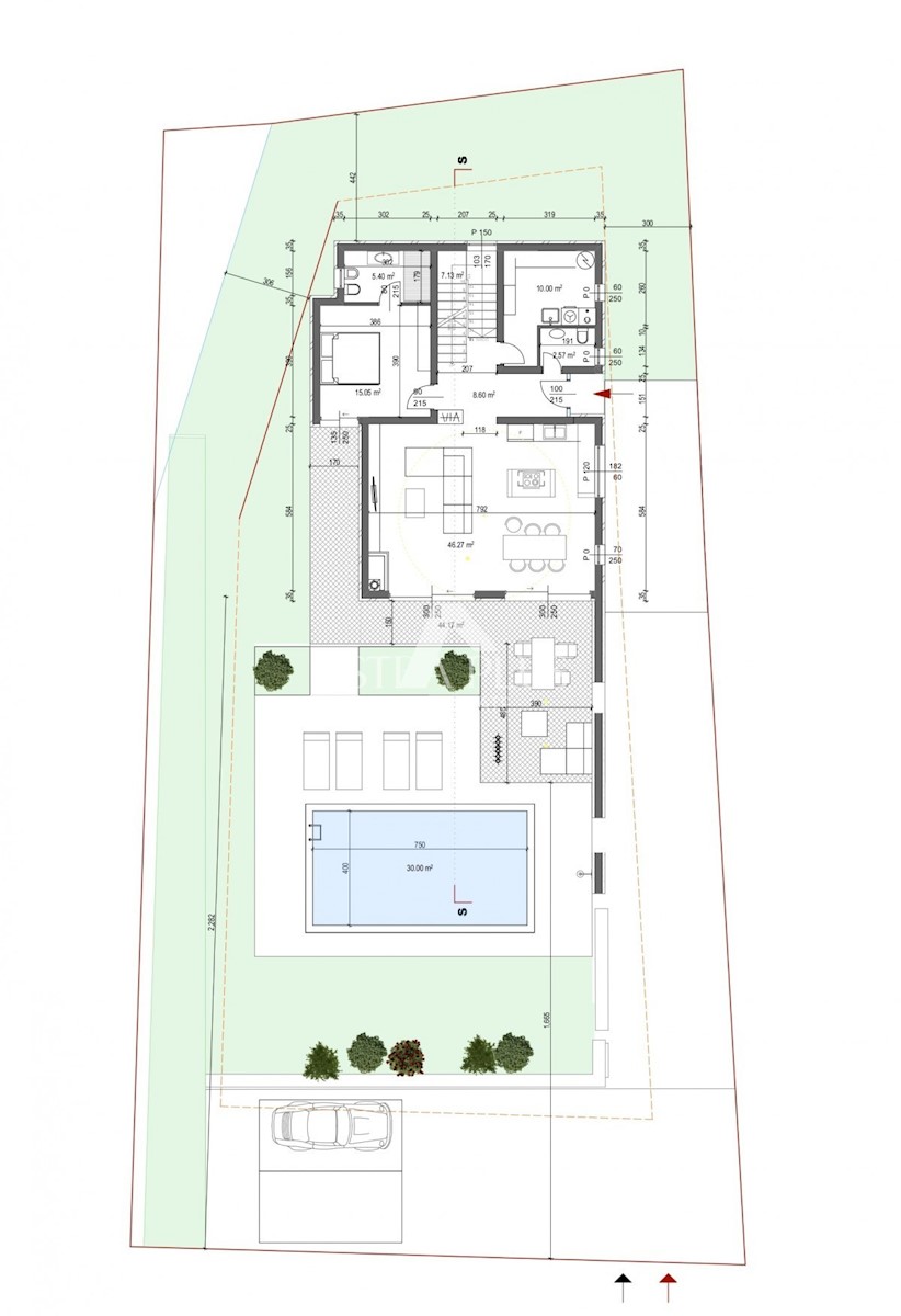 K32 Schönes modernes Projekt, moderne Villa auf einem Grundstück von 774 m2. Es befindet sich im Erdgeschoss und im ersten Stock mit Meerblick. Das Erdgeschoss verfügt über einen Flur, Heizraum und Waschküche, Abstellraum, Schlafzimmer mit Hofausgängen u