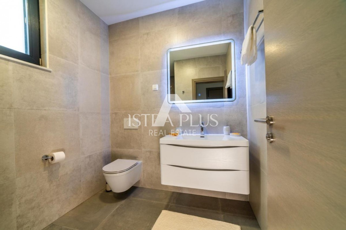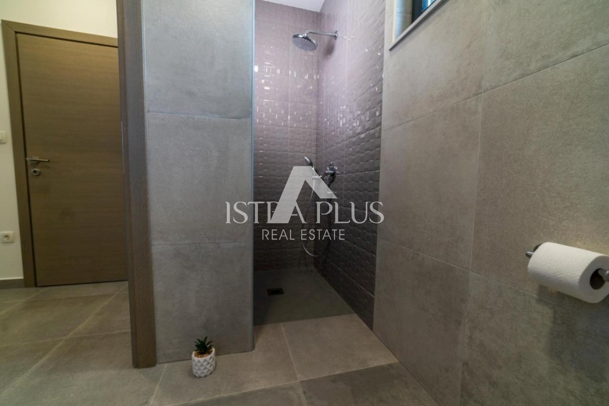 K35 Ein neu gebautes Haus zum Verkauf, 6 km vom Zentrum von Poreč und dem Strand entfernt. Diese neu erbaute Villa mit 204 m2 Nutzfläche befindet sich auf einem Grundstück von 592 m2. Das Haus hat eine Fläche von 204 m2 und erstreckt sich über zwei Etagen