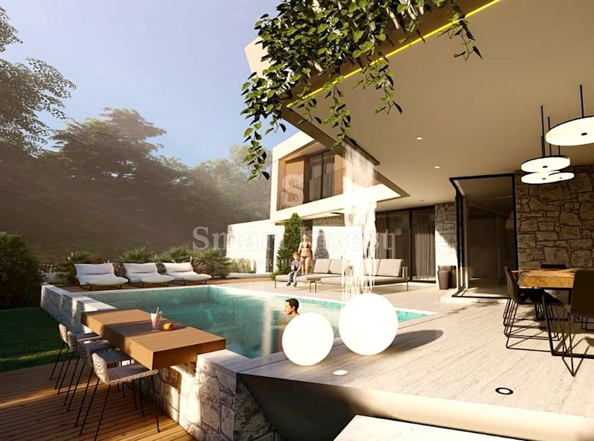 POREČ, Luxury 4-bedrooms villa with a heated swimming pool and fitness, on an excellent quiet location next to a forest, 5 km away from the sea and Poreč. Possibility to choose materials and equipment according to the customer's wishes. The villa of 180