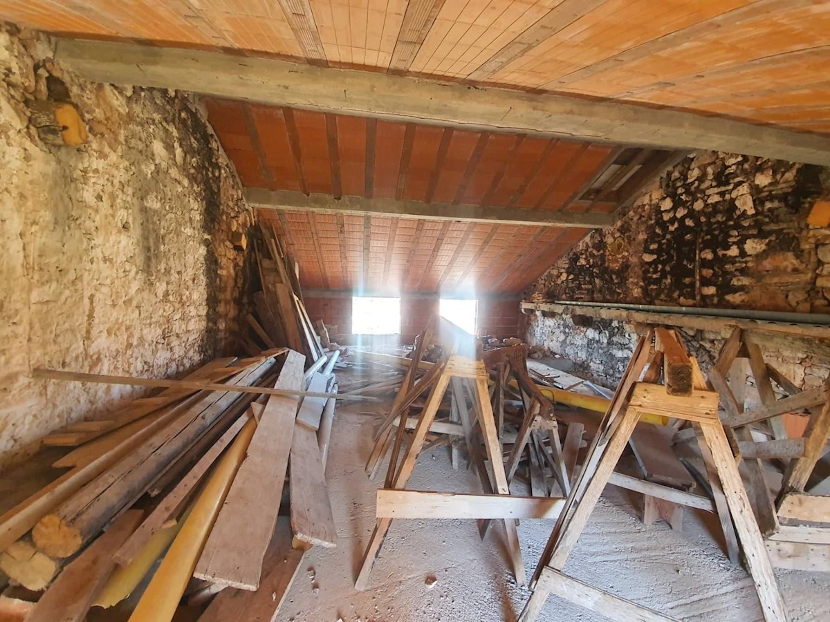 In der Nähe von Poreč verkaufen wir ein Reihenhaus aus Stein - das Haus besteht aus drei Etagen, Gesamtfläche von ca. 210 m2 - Grundstück von ca. 250 m2 - Dachneubau und Zwischengeschoss - Strom, Wasser, Kanalanschluss - ohne Trennwände (Innenausstattung