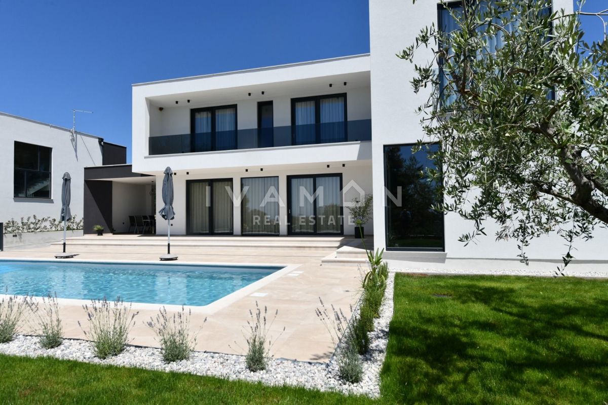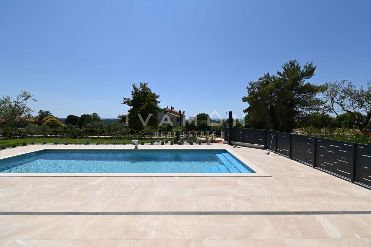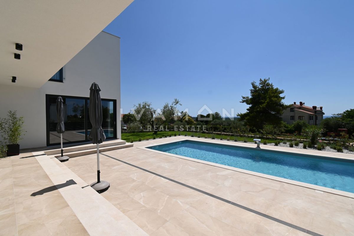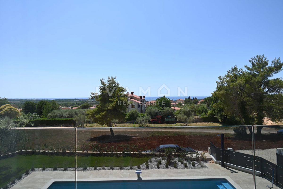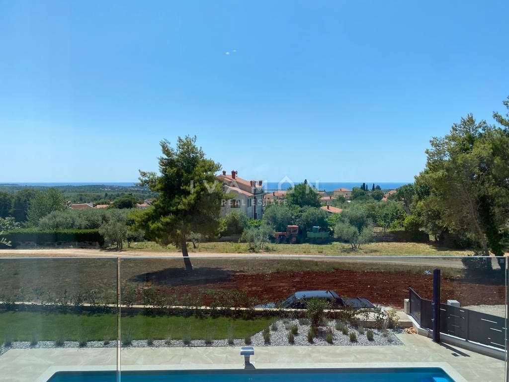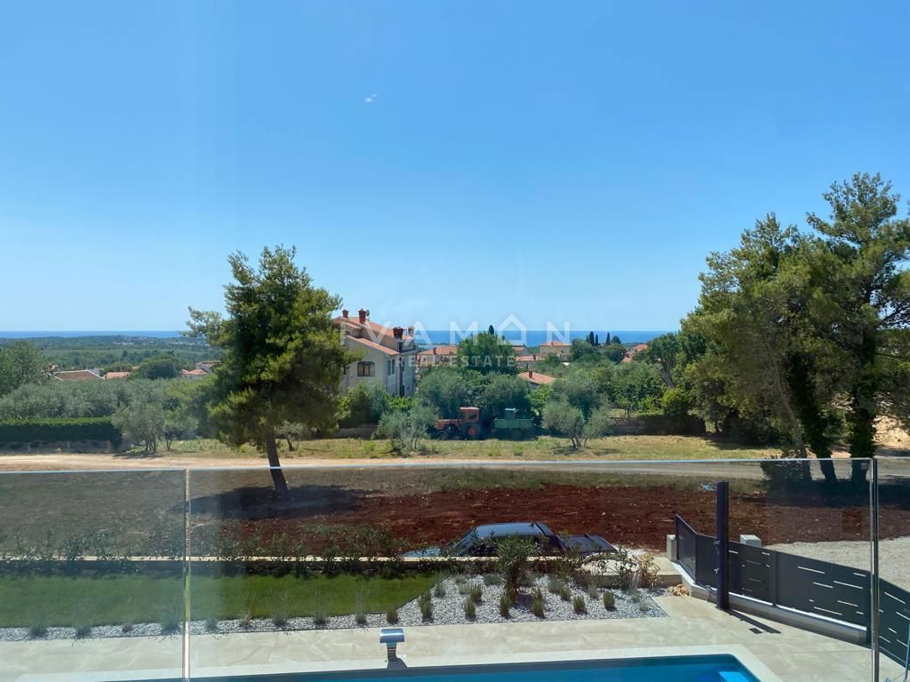 In der Nähe von Poreč, nur zwei Kilometer vom Meer entfernt, steht eine schöne Villa mit Swimmingpool und offenem Meerblick zum Verkauf. Die Villa befindet sich auf einem Grundstück von 850 m2, wo es einen Zugang zum Haus und Parkplätze, einen Garten, ei
