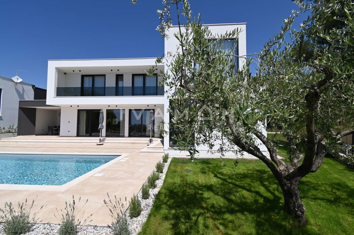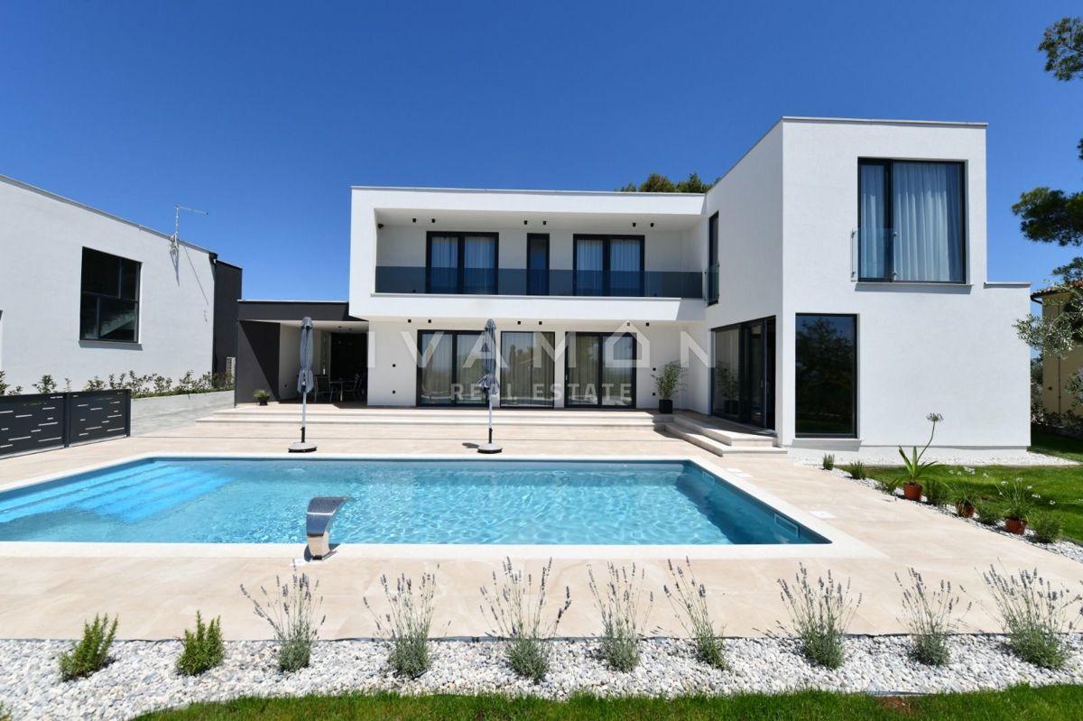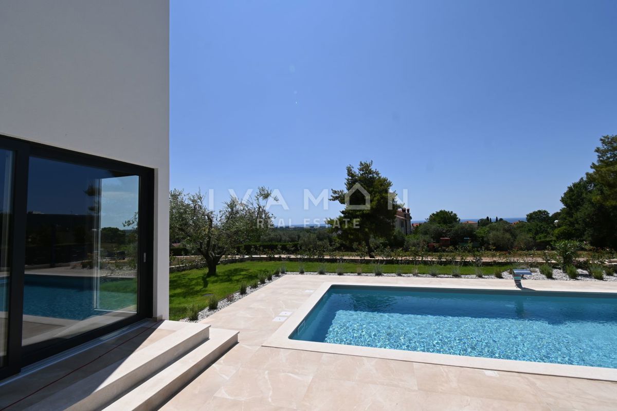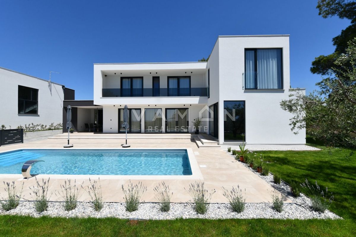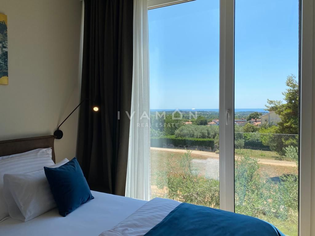 In der Nähe von Poreč, nur zwei Kilometer vom Meer entfernt, steht eine schöne Villa mit Swimmingpool und offenem Meerblick zum Verkauf. Die Villa befindet sich auf einem Grundstück von 850 m2, wo es einen Zugang zum Haus und Parkplätze, einen Garten, ei