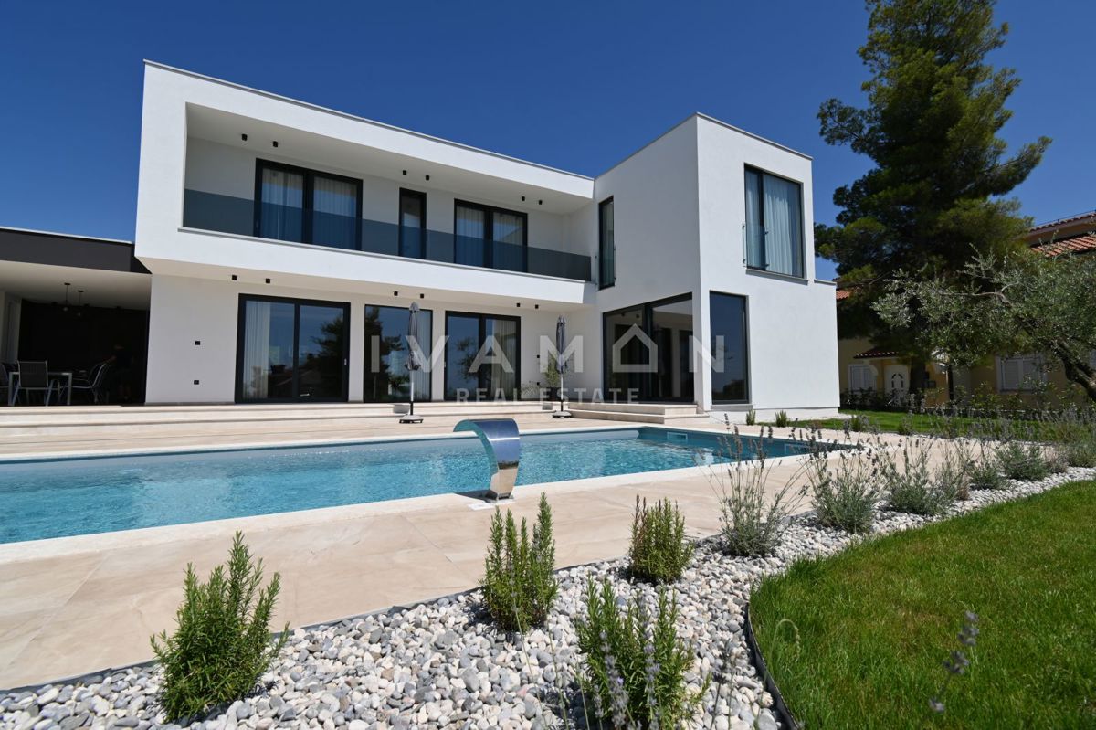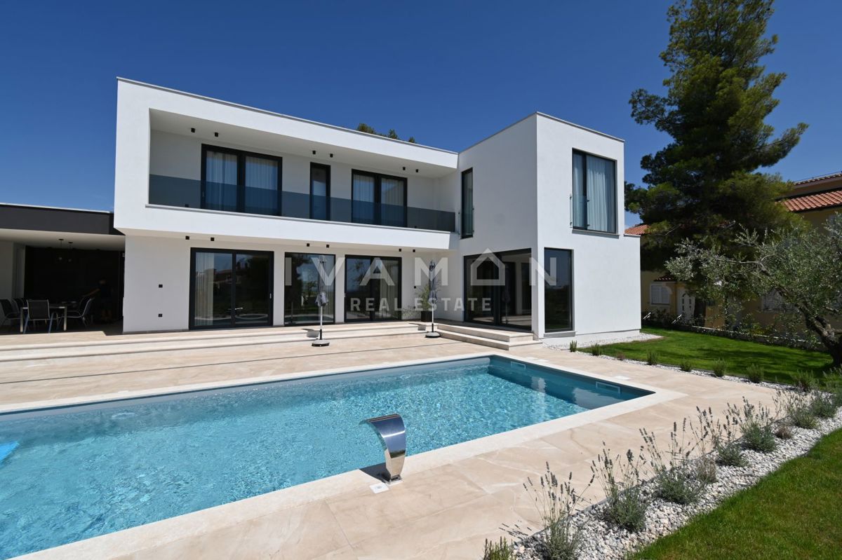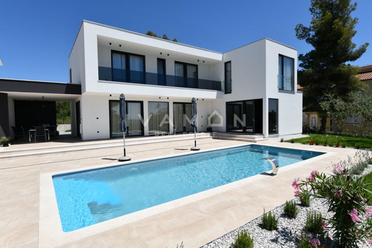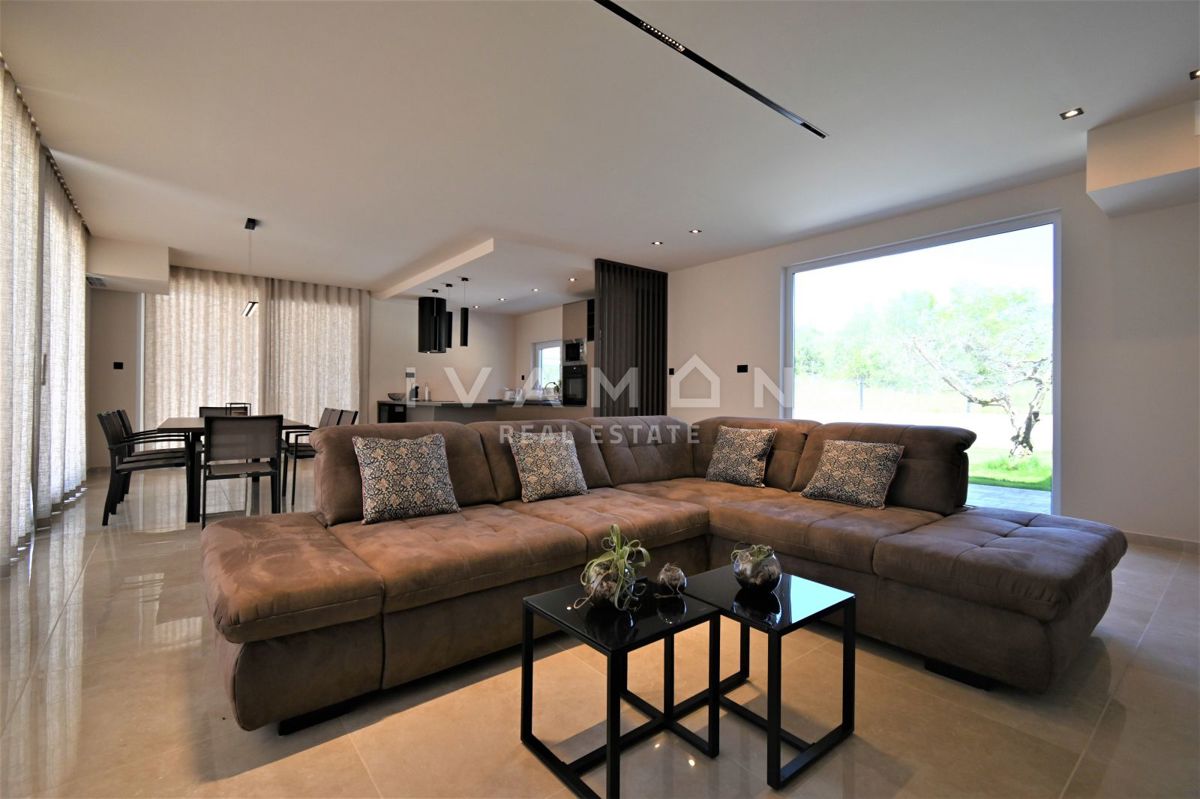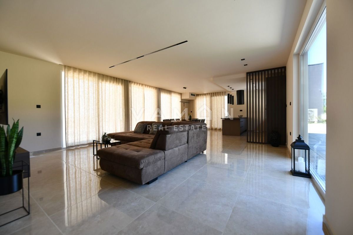 In der Nähe von Poreč, nur zwei Kilometer vom Meer entfernt, steht eine schöne Villa mit Swimmingpool und offenem Meerblick zum Verkauf. Die Villa befindet sich auf einem Grundstück von 850 m2, wo es einen Zugang zum Haus und Parkplätze, einen Garten, ei