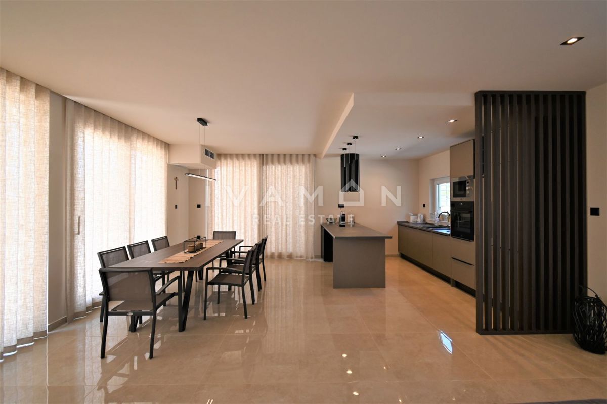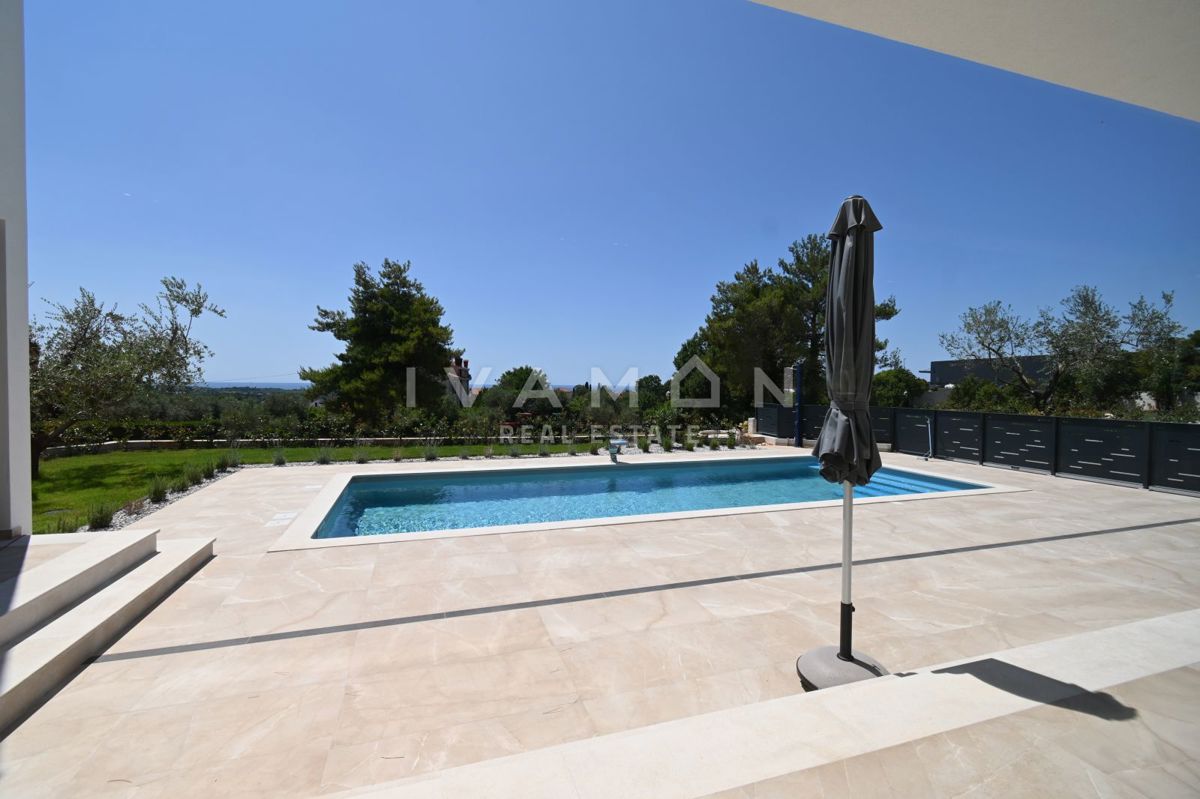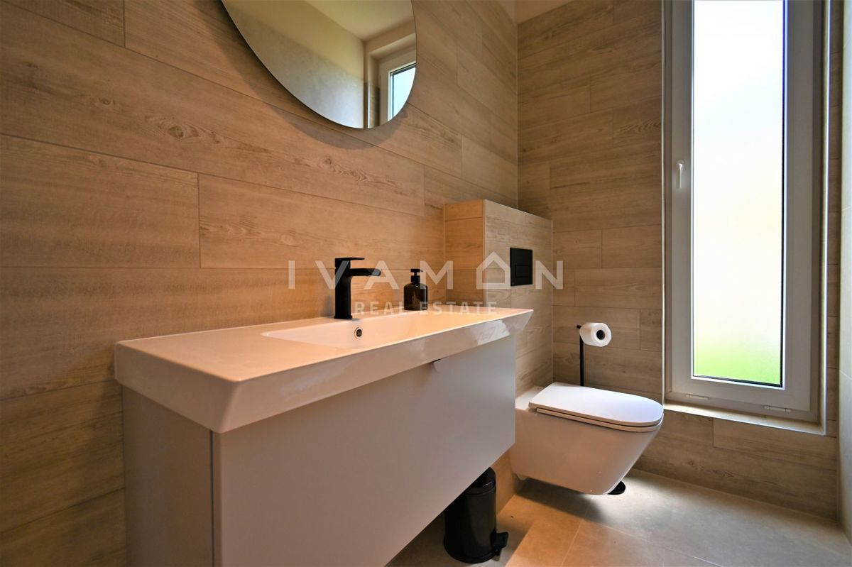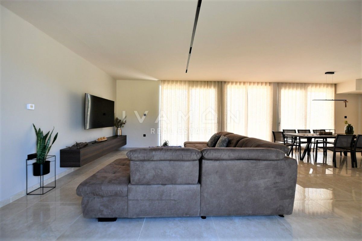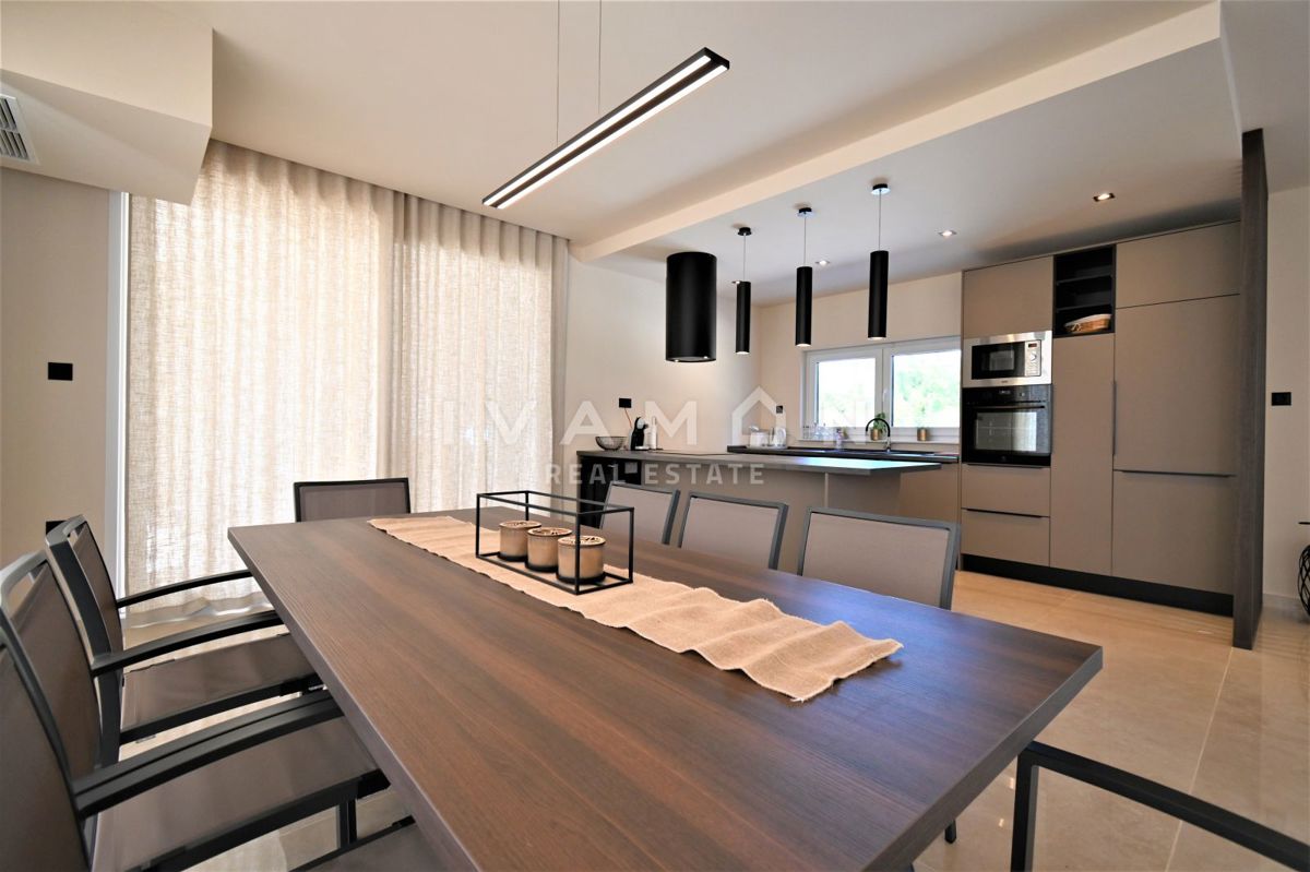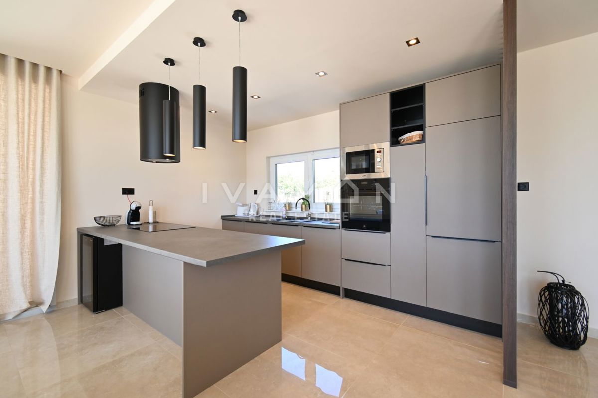 In der Nähe von Poreč, nur zwei Kilometer vom Meer entfernt, steht eine schöne Villa mit Swimmingpool und offenem Meerblick zum Verkauf. Die Villa befindet sich auf einem Grundstück von 850 m2, wo es einen Zugang zum Haus und Parkplätze, einen Garten, ei