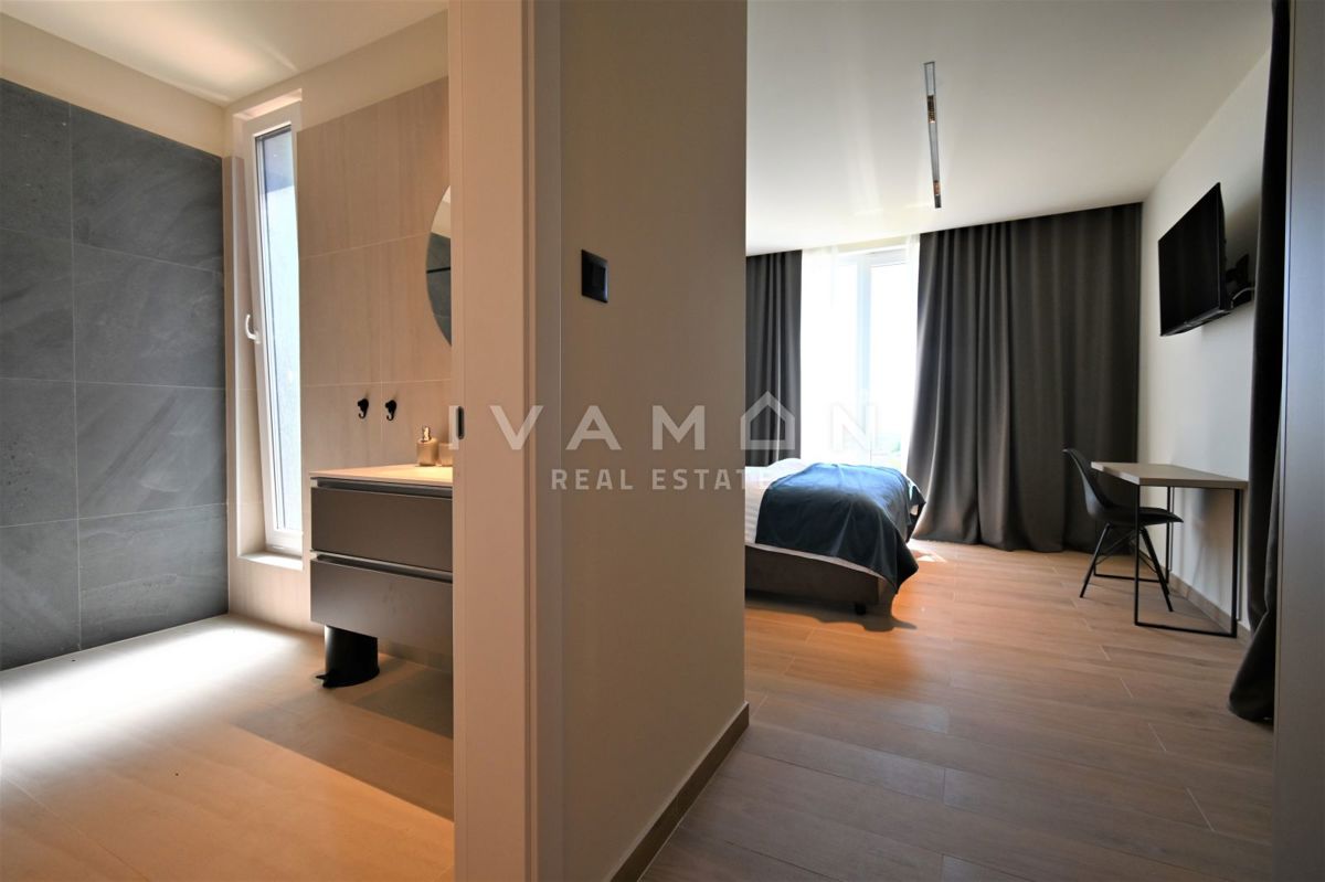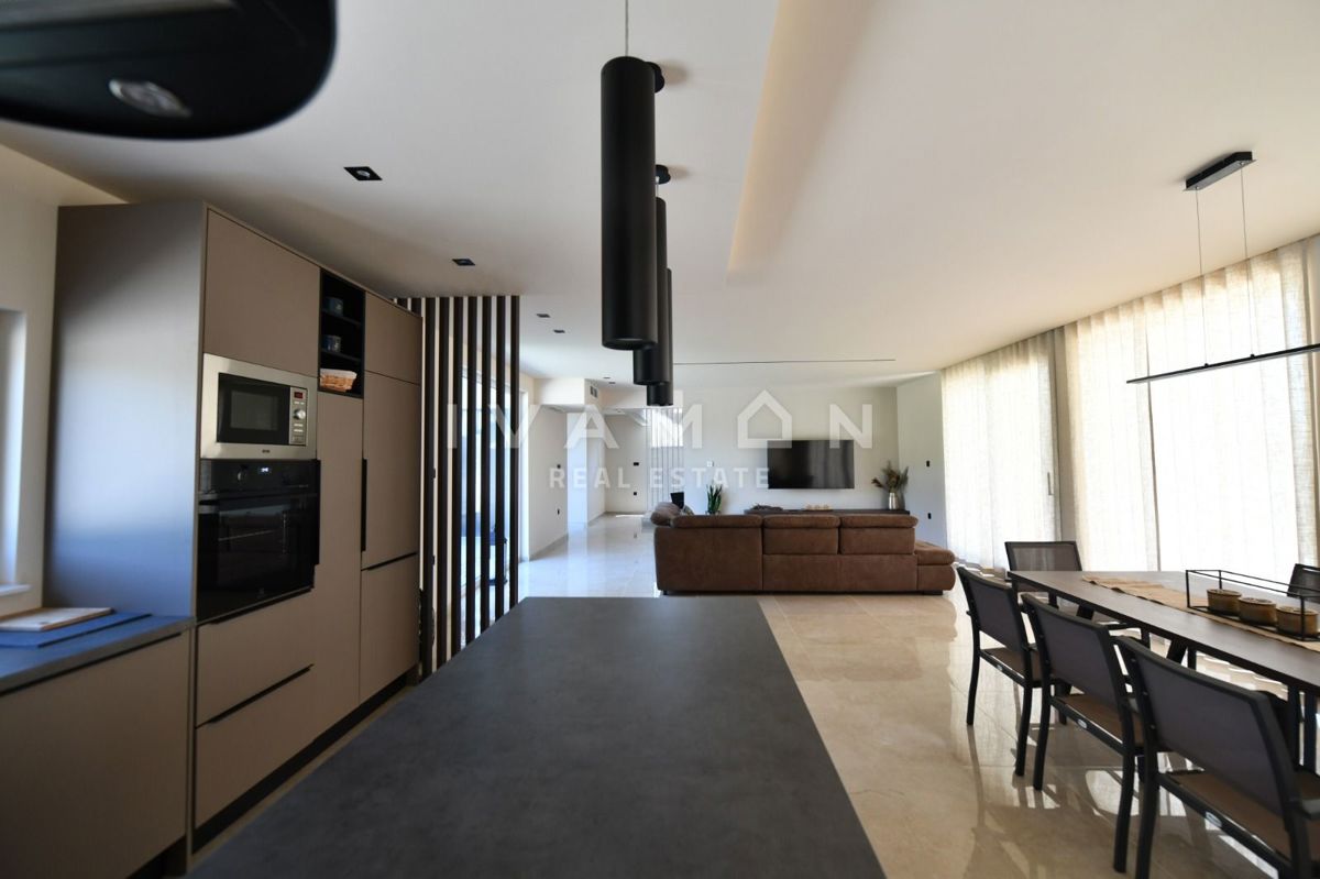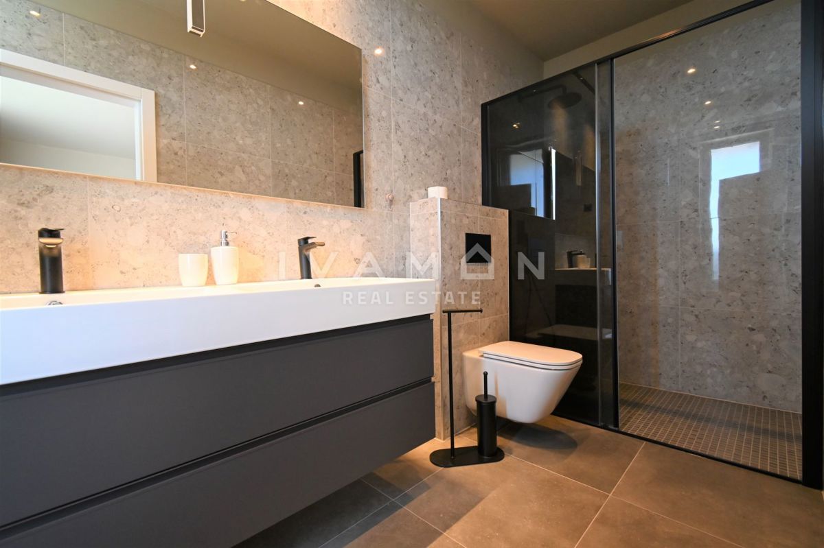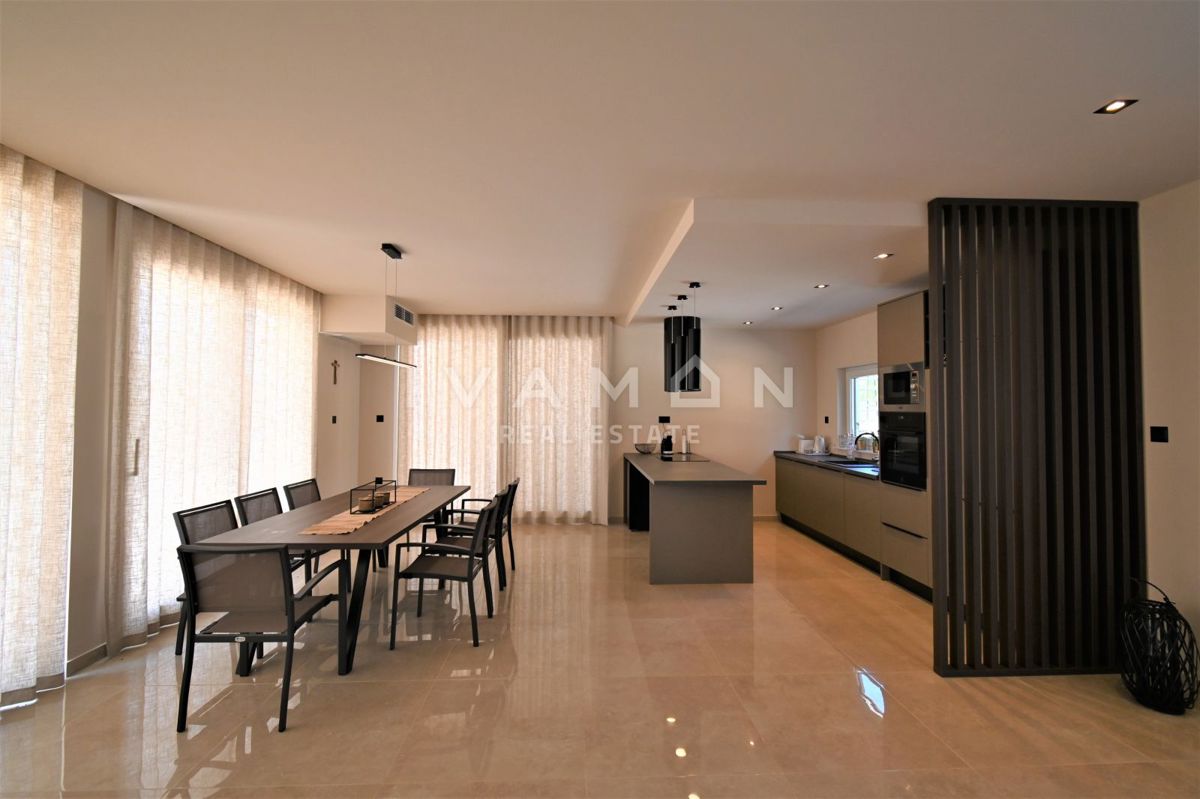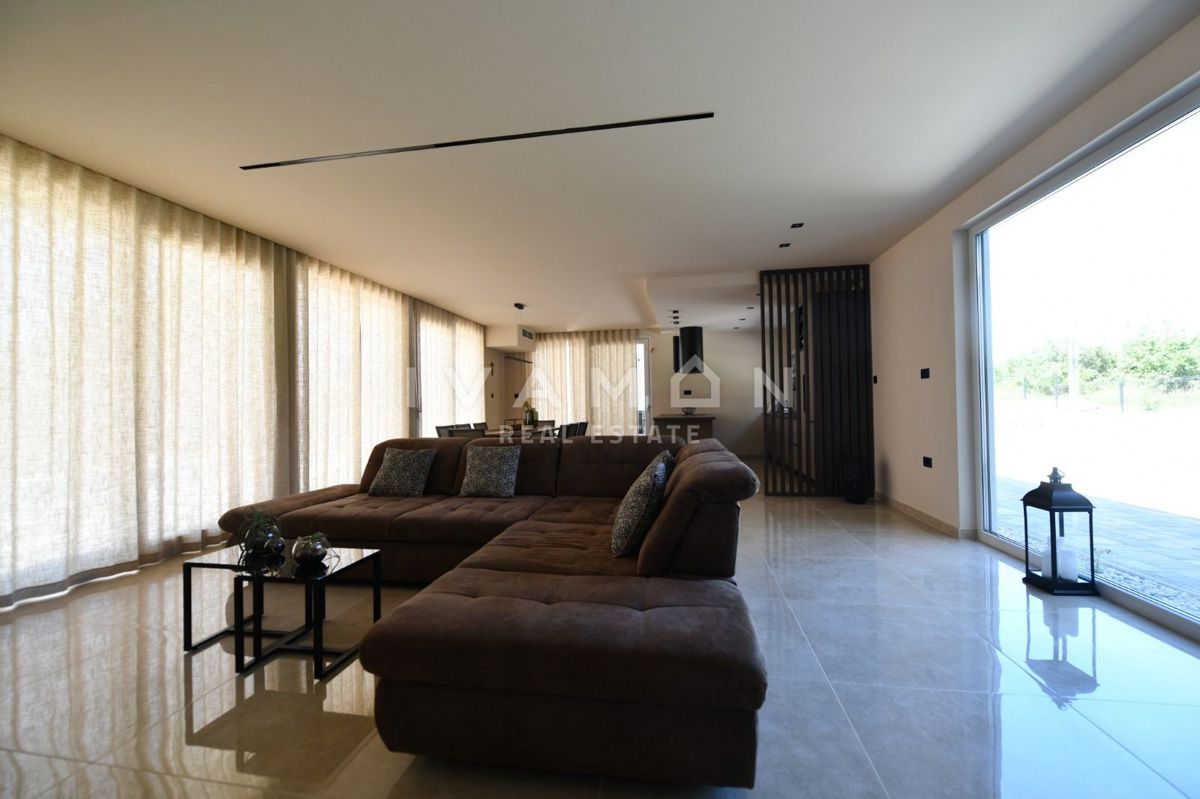 In der Nähe von Poreč, nur zwei Kilometer vom Meer entfernt, steht eine schöne Villa mit Swimmingpool und offenem Meerblick zum Verkauf. Die Villa befindet sich auf einem Grundstück von 850 m2, wo es einen Zugang zum Haus und Parkplätze, einen Garten, ei