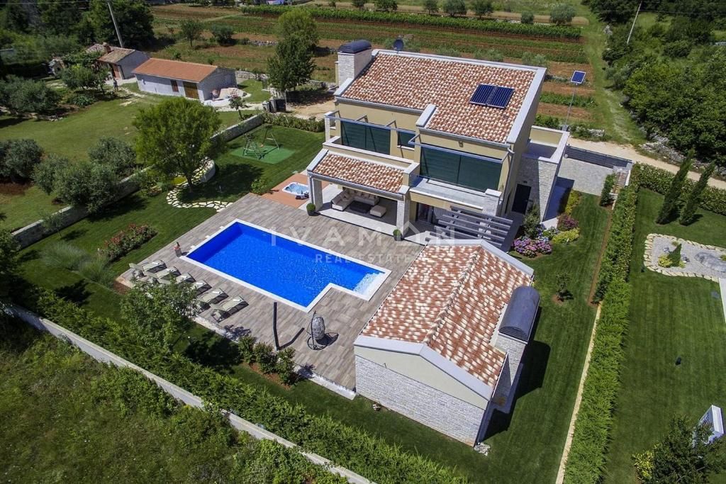 An einem Ort zwischen Poreč und Rovinj steht eine schöne Villa mit Swimmingpool zum Verkauf. Die Villa befindet sich auf einem Grundstück von 1160 m2, in einem sehr ruhigen Teil des Dorfes, umgeben von Villen und Natur. Auf dem Gelände gibt es einen groß