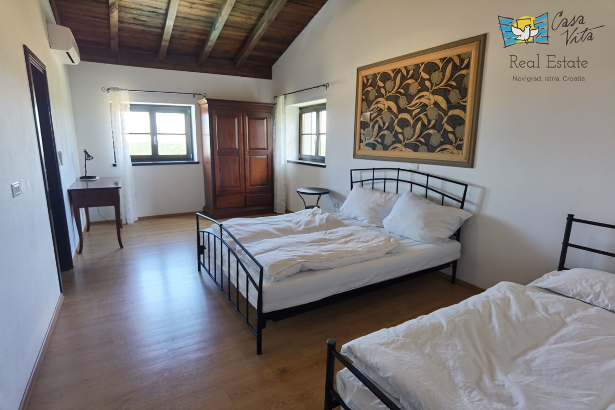Istrien, Poreč Nicht weit von Poreč, in einem schönen und ruhigen Dorf, befindet sich diese Steinvilla mit Swimmingpool. Die Villa erstreckt sich über drei Etagen. Sie betreten die Etage, wo sich ein Flur und 4 Schlafzimmer befinden, zwei mit eigenem Bad