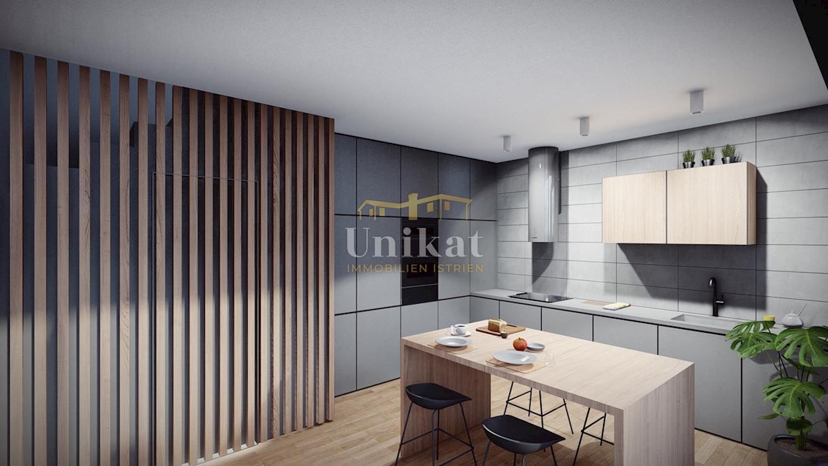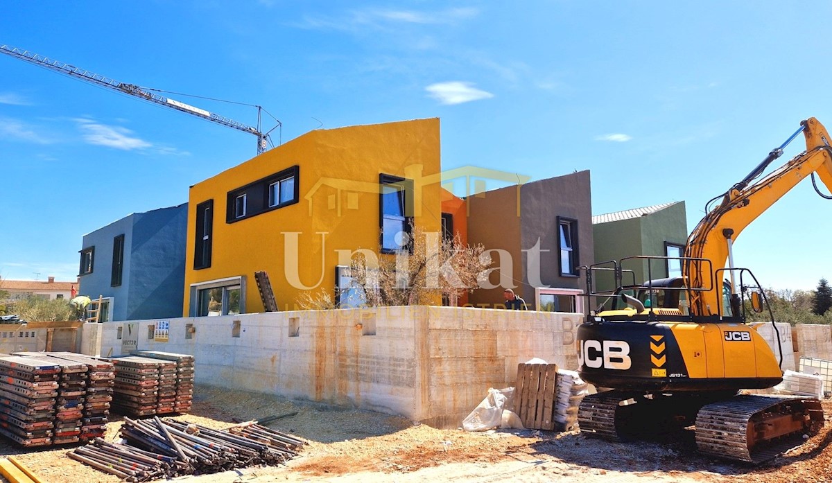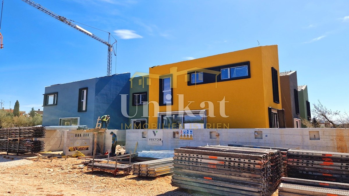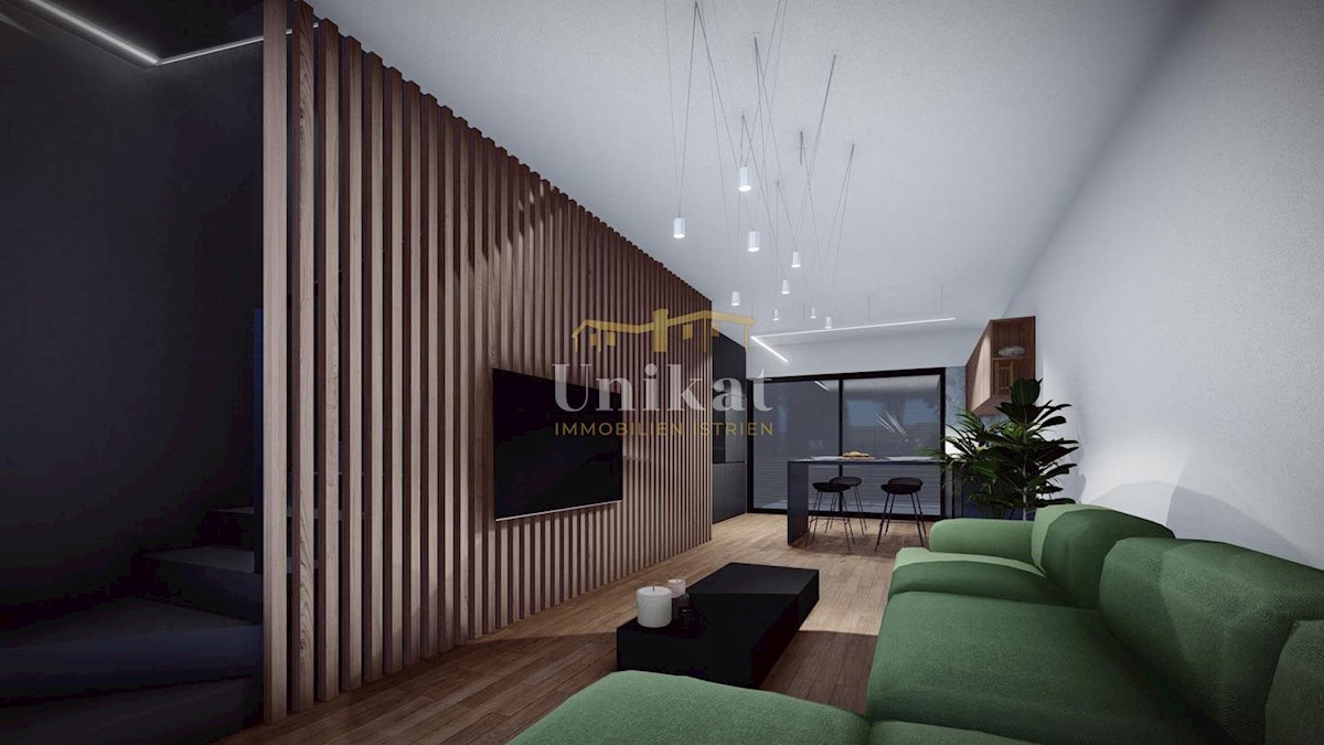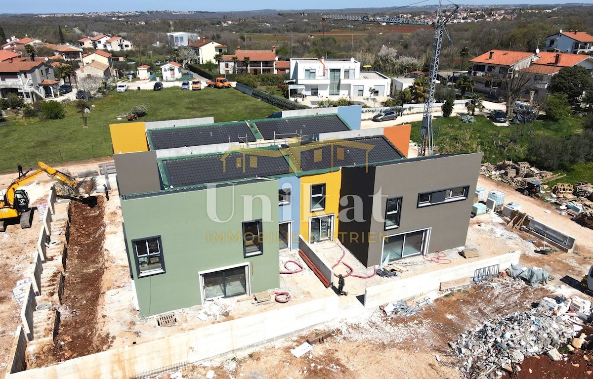 Neue moderne Reihenhäuser in der Nähe des Zentrums von Poreč. Dieses Haus besteht aus Wohnzimmer, Küche mit Essbereich und Toilette im Erdgeschoss; Flur, zwei Schlafzimmern und einem Badezimmer im ersten Stock. Das Haus verfügt auch über einen Garten von
