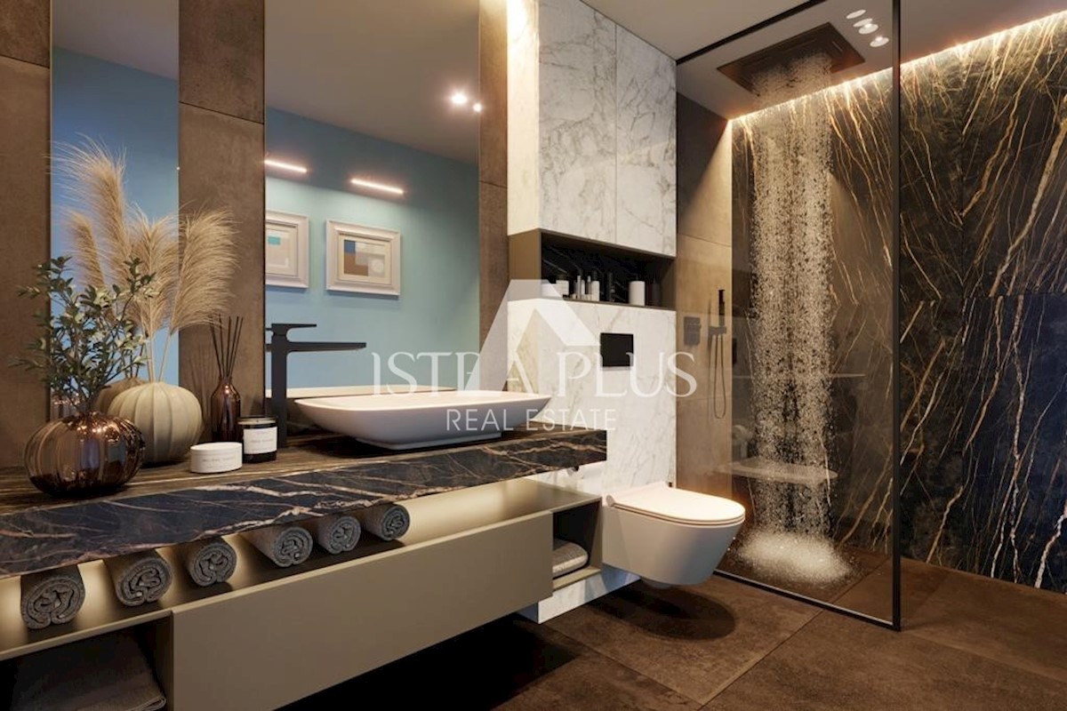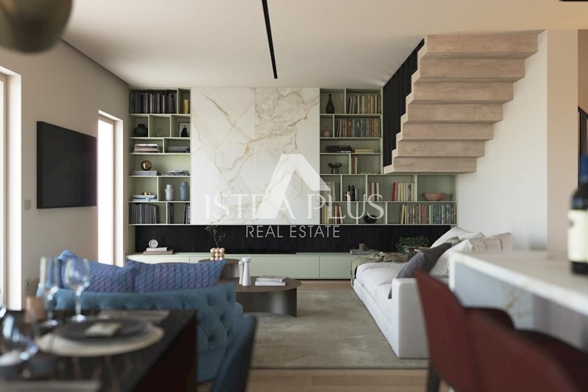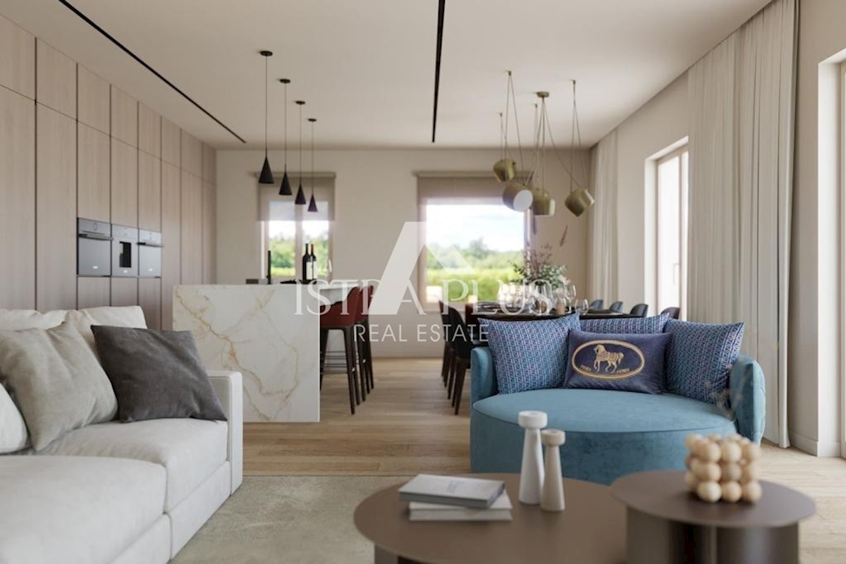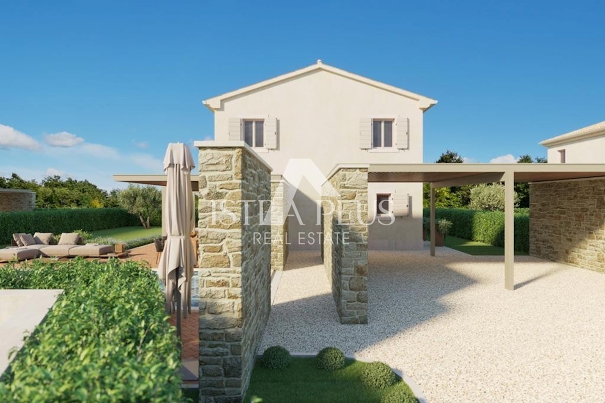 K67 In einem kleinen Dorf 14 km von Poreč entfernt entstehen 6 wunderschöne Villen mit Swimmingpool, deren Fertigstellung für November 2023 geplant ist. Straße Hausnr. 2 mit einer Fläche von 147m2 auf einem Grundstück von 640m2 Im Erdgeschoss befindet sic
