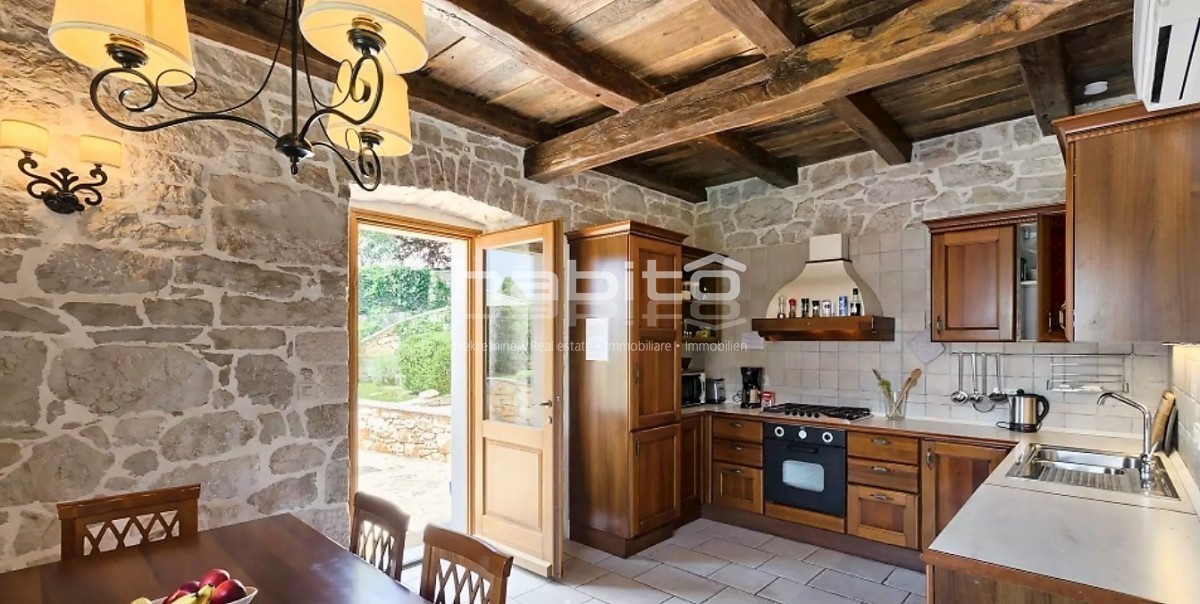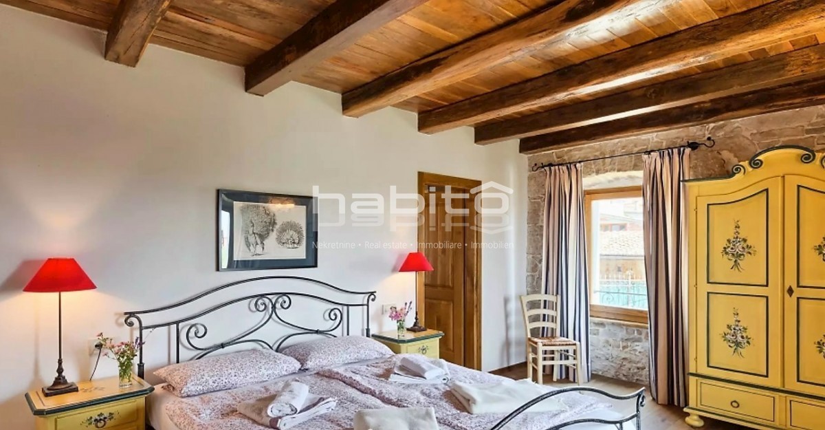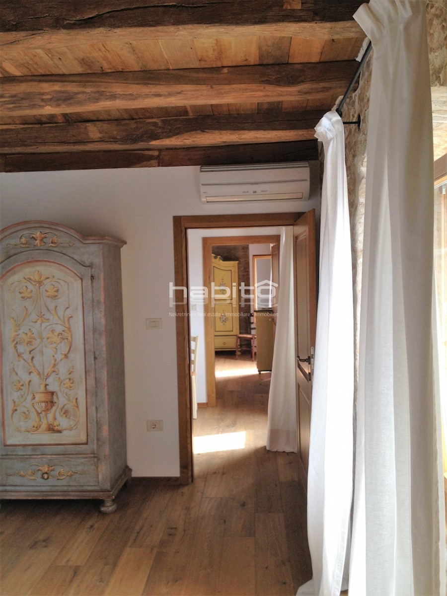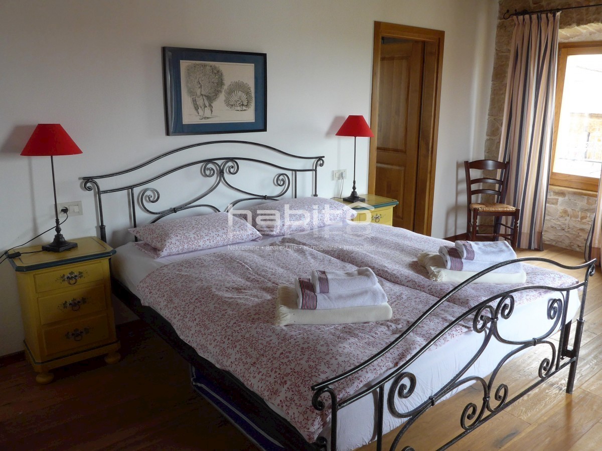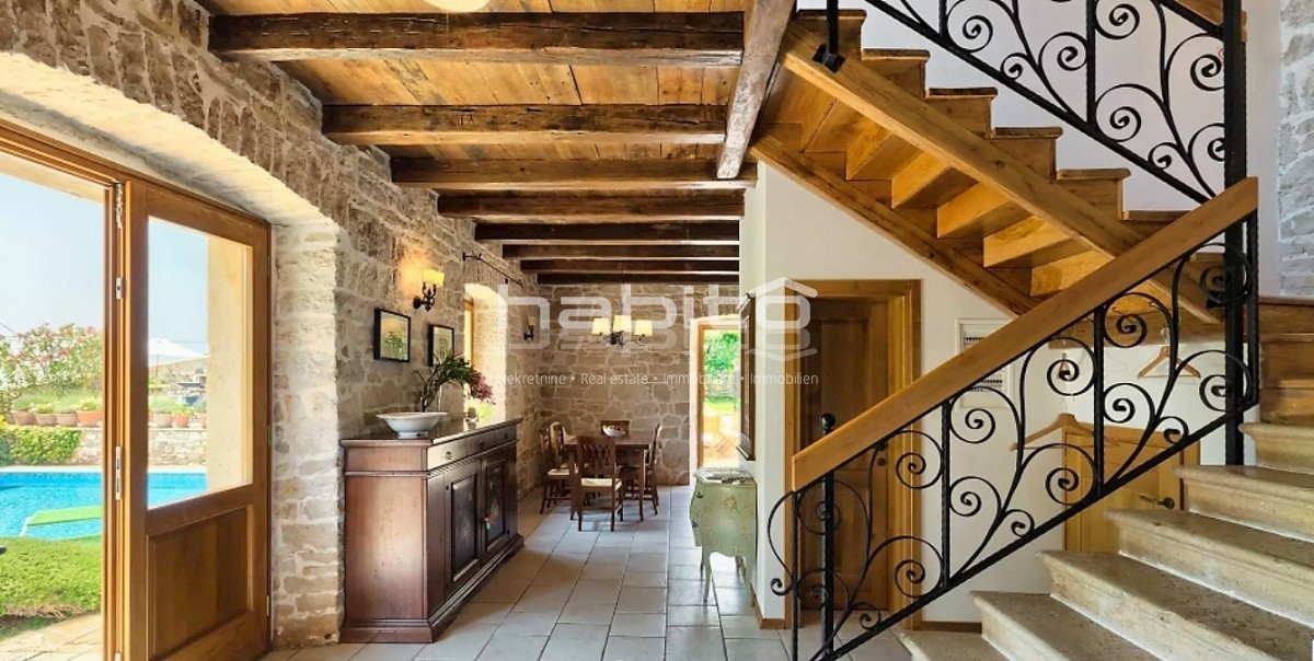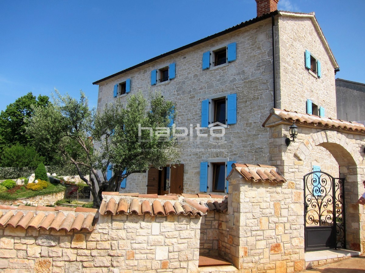 Ein wunderschönes, komplett renoviertes, freistehendes Steinhaus von 180 m2 befindet sich in einem kleinen Dorf, nur 10 km vom Meer und der Stadt Porec entfernt. Das Haus wurde geschmackvoll renoviert, wobei der alte Charme beibehalten wurde, aber moderne