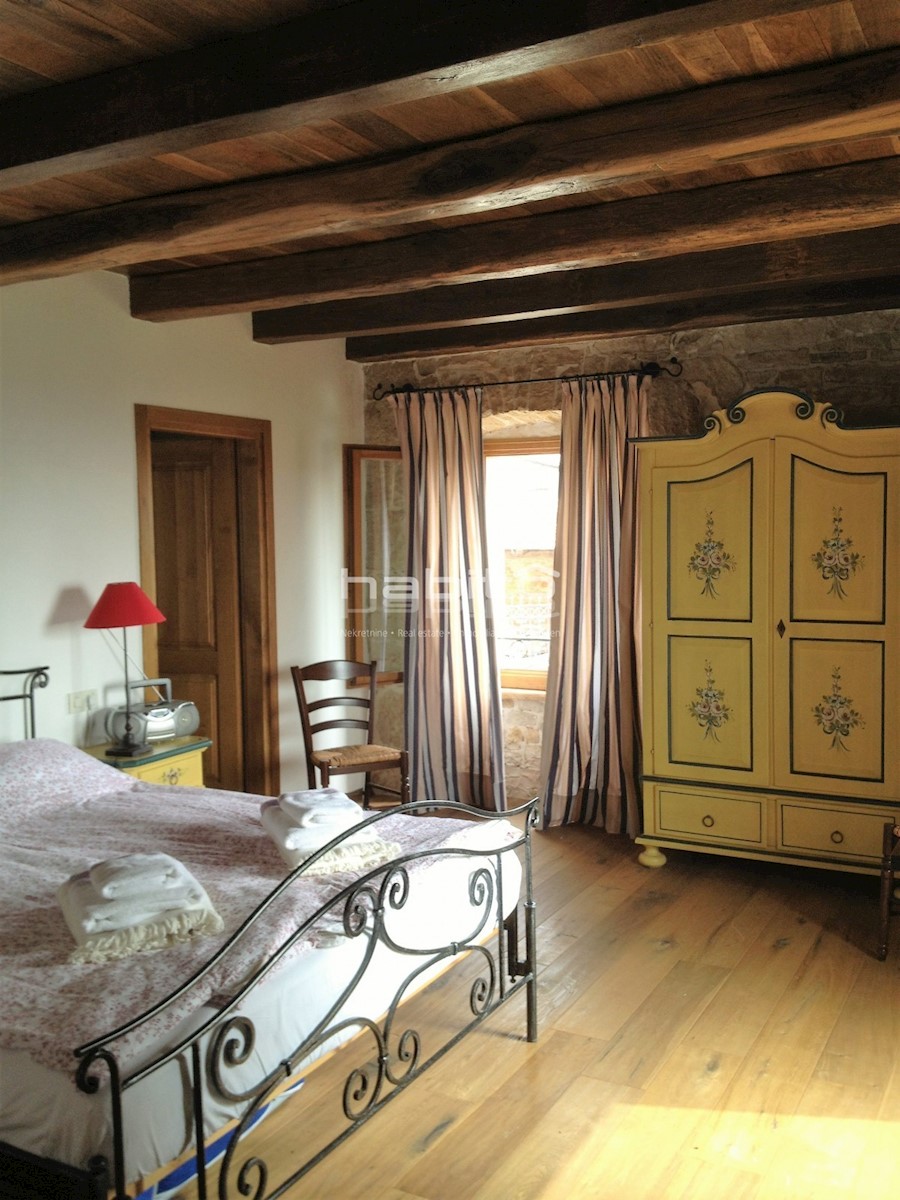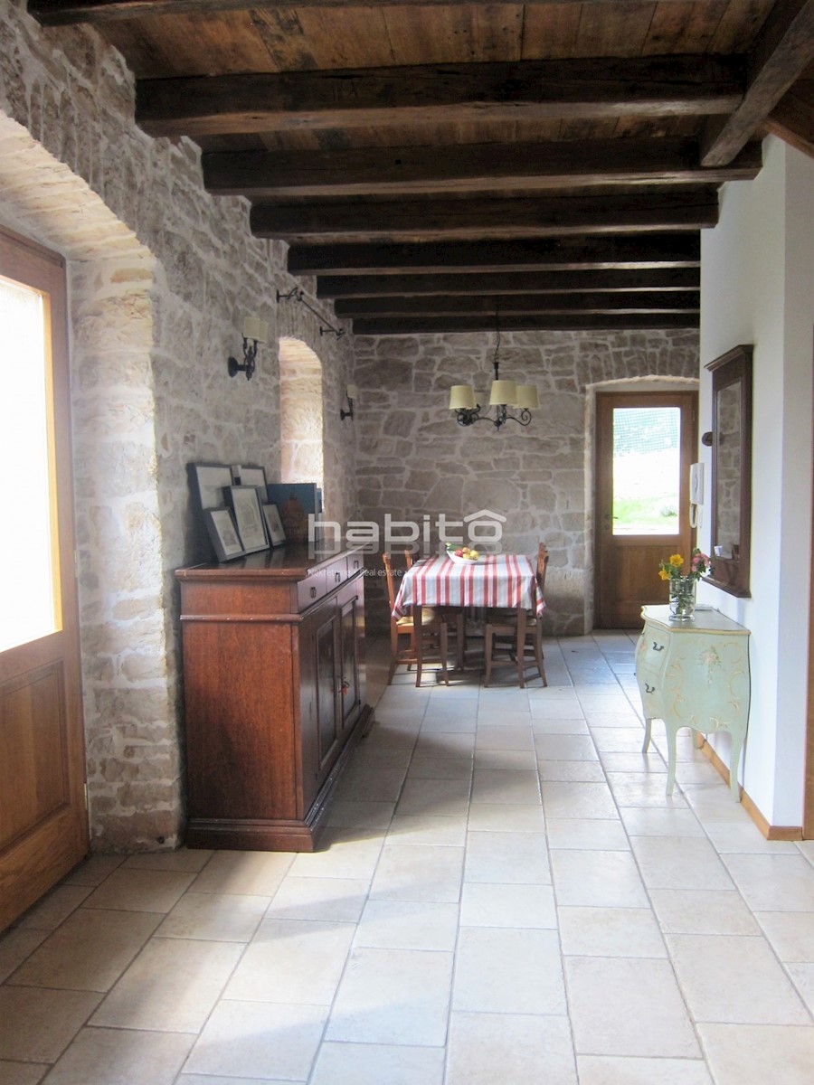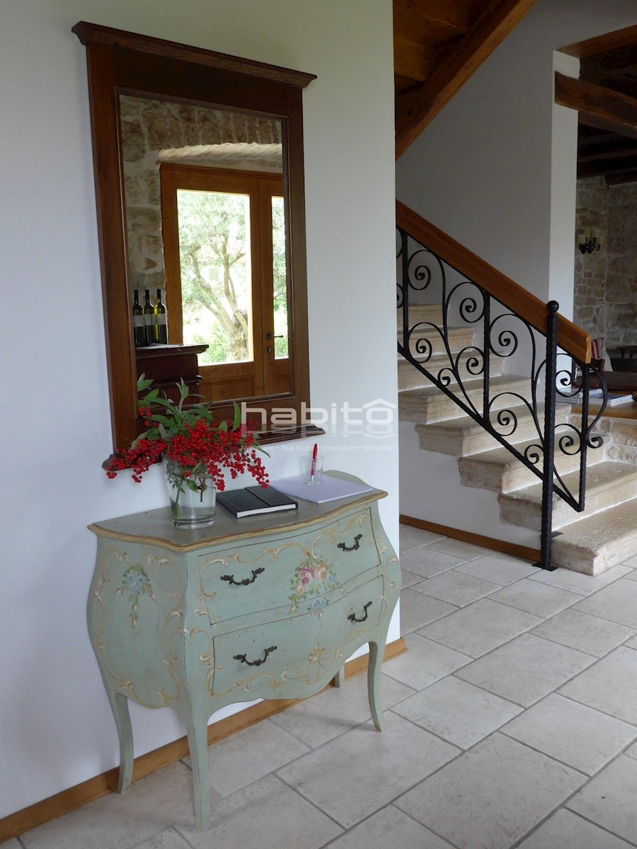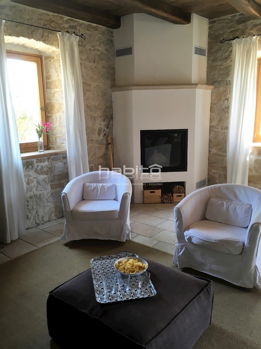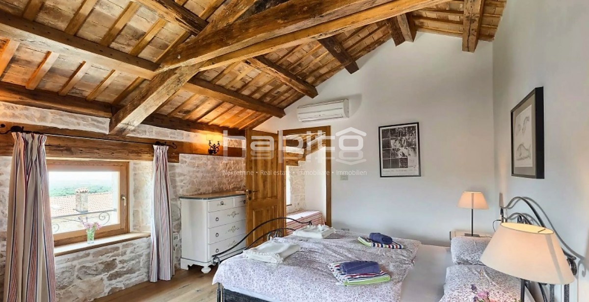 Ein wunderschönes, komplett renoviertes, freistehendes Steinhaus von 180 m2 befindet sich in einem kleinen Dorf, nur 10 km vom Meer und der Stadt Porec entfernt. Das Haus wurde geschmackvoll renoviert, wobei der alte Charme beibehalten wurde, aber moderne