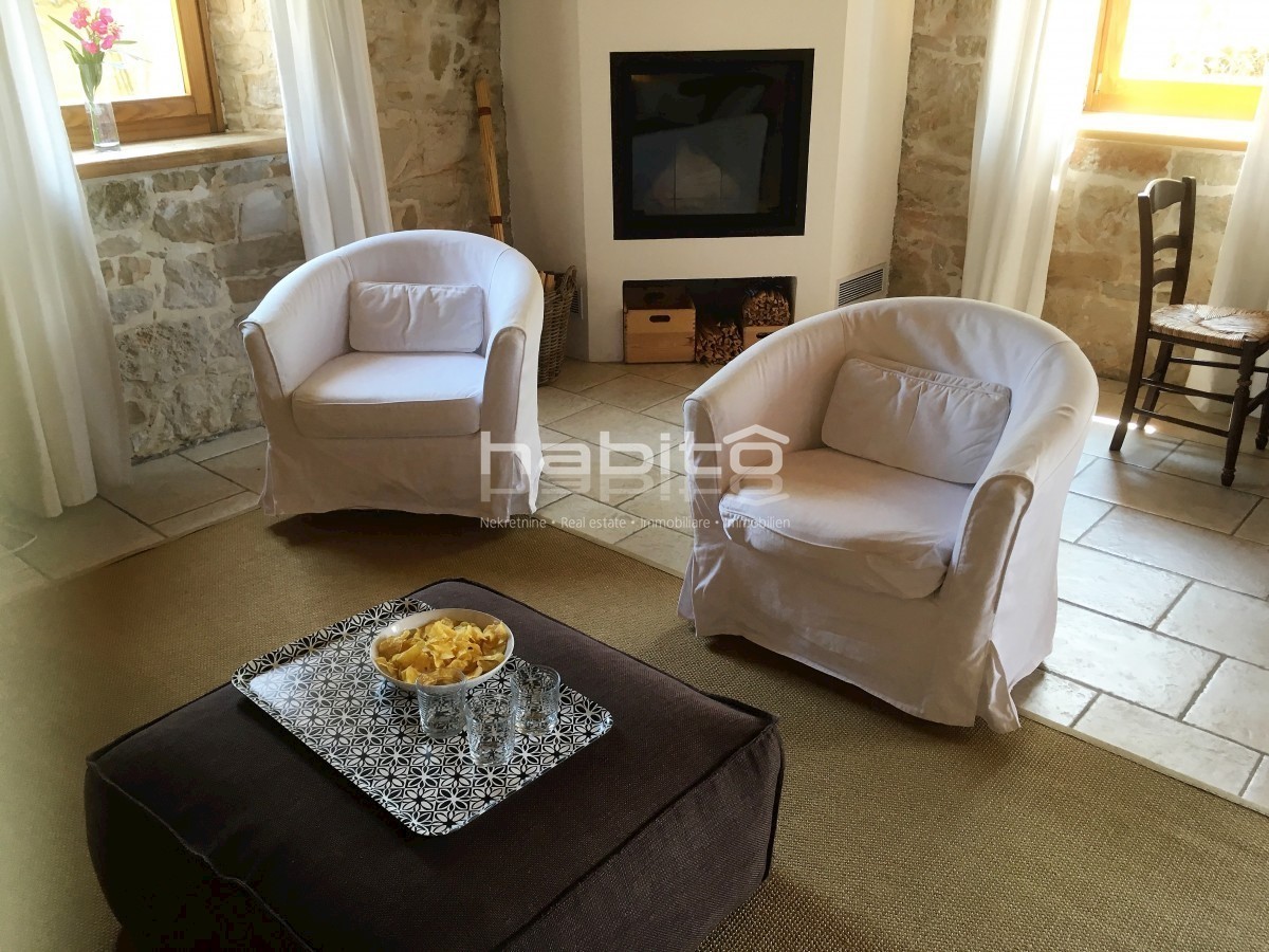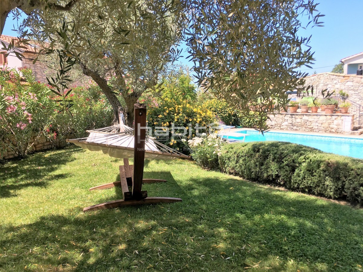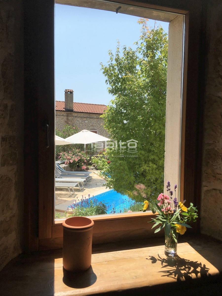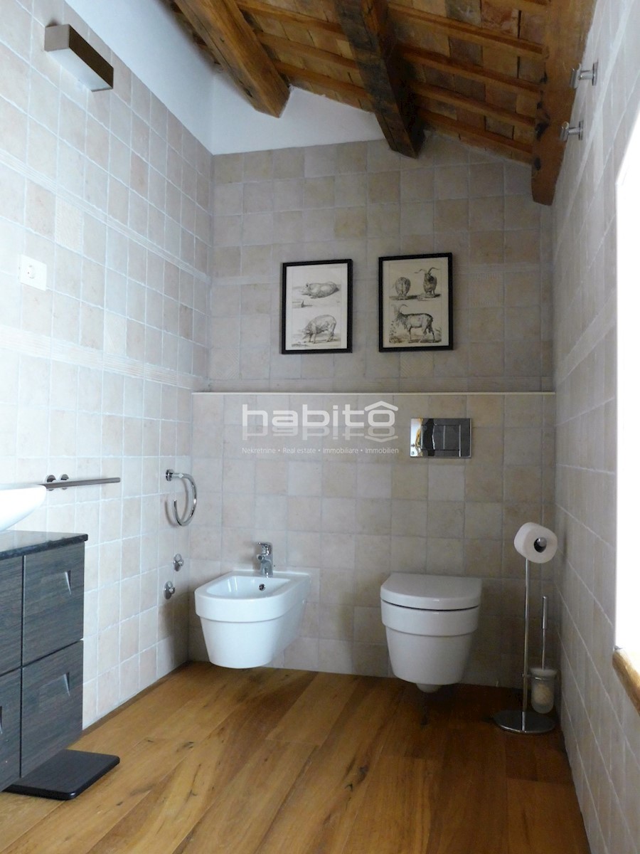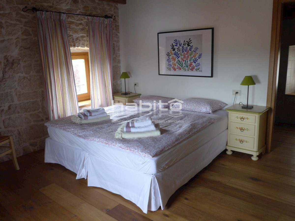 Ein wunderschönes, komplett renoviertes, freistehendes Steinhaus von 180 m2 befindet sich in einem kleinen Dorf, nur 10 km vom Meer und der Stadt Porec entfernt. Das Haus wurde geschmackvoll renoviert, wobei der alte Charme beibehalten wurde, aber moderne