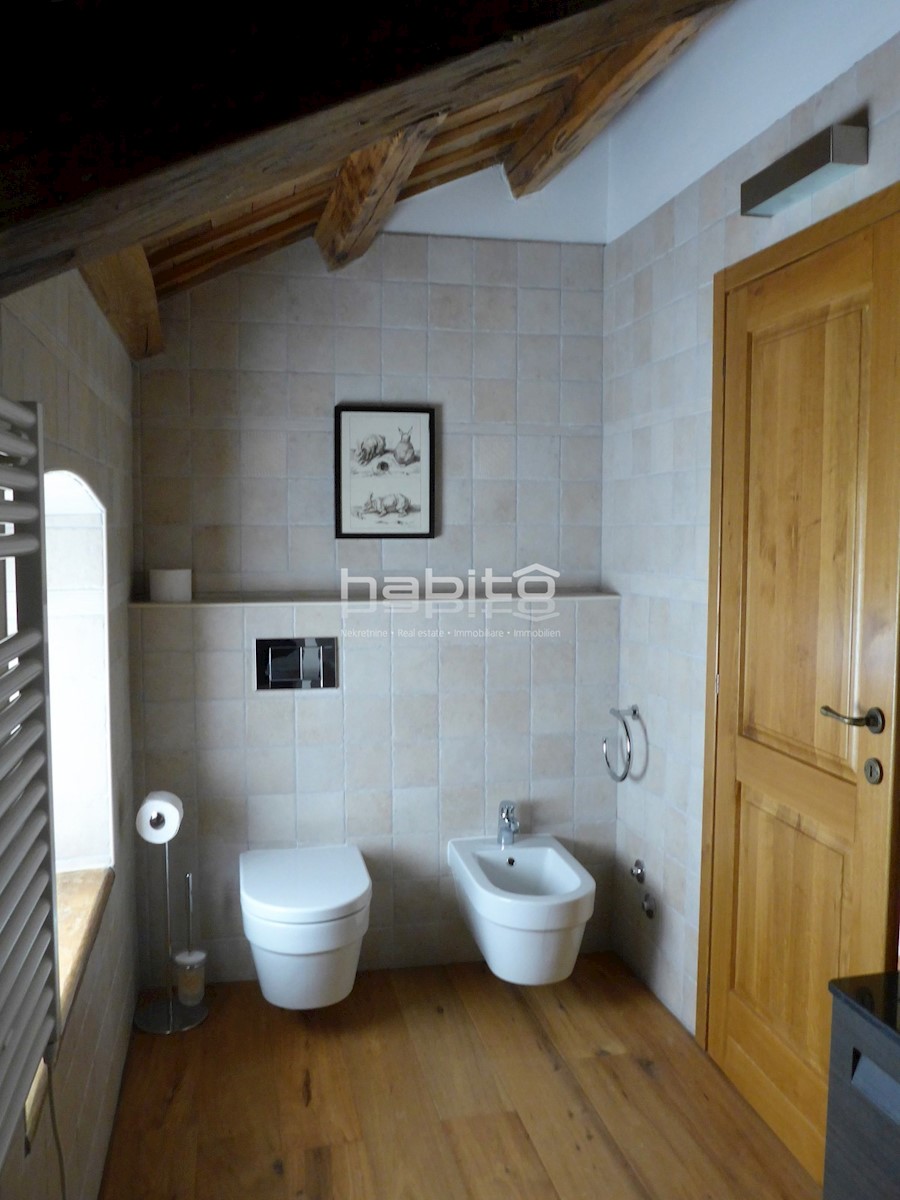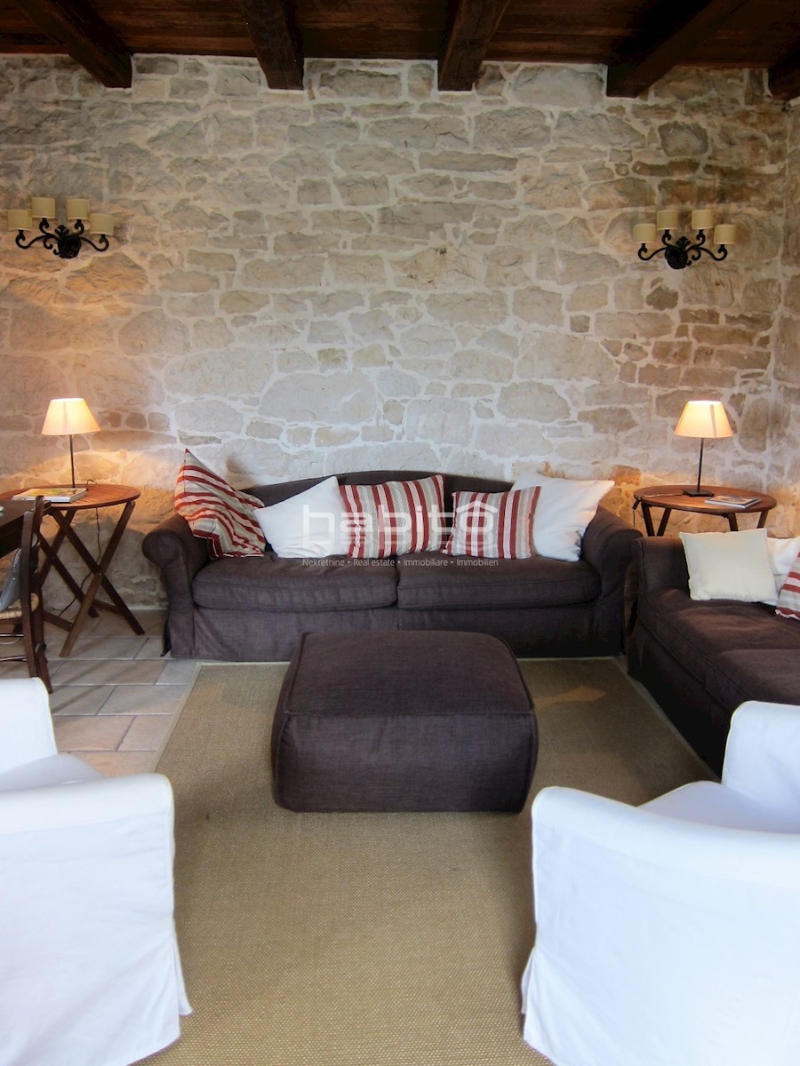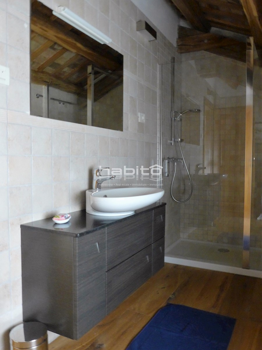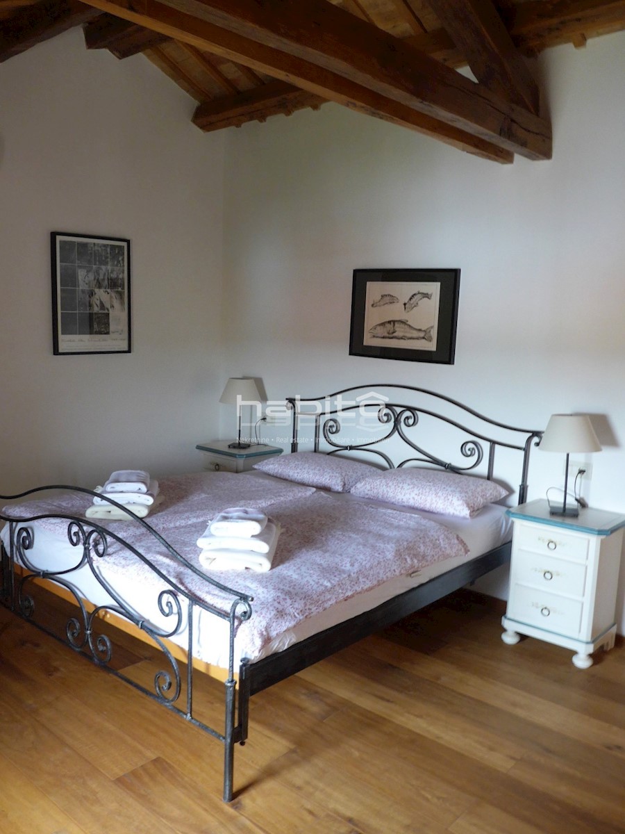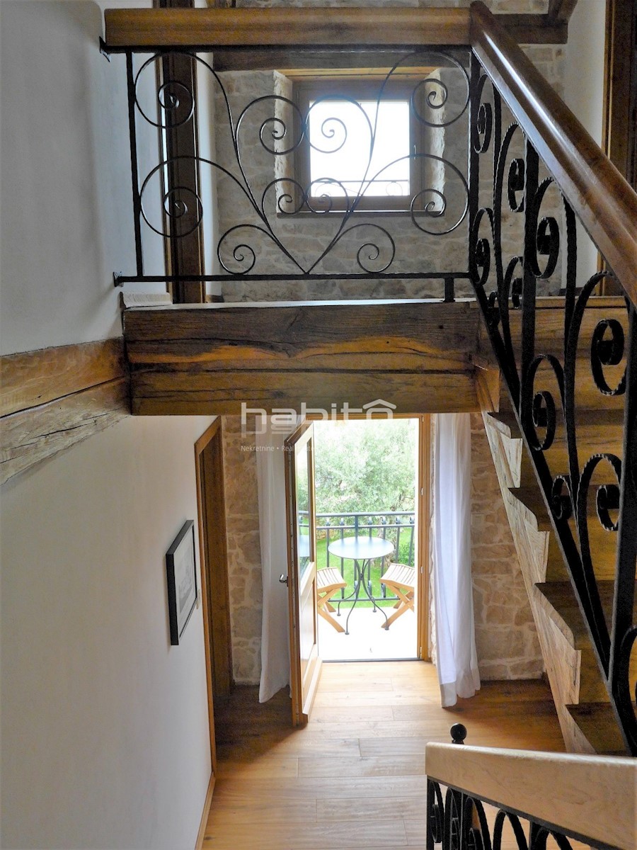 Ein wunderschönes, komplett renoviertes, freistehendes Steinhaus von 180 m2 befindet sich in einem kleinen Dorf, nur 10 km vom Meer und der Stadt Porec entfernt. Das Haus wurde geschmackvoll renoviert, wobei der alte Charme beibehalten wurde, aber moderne
