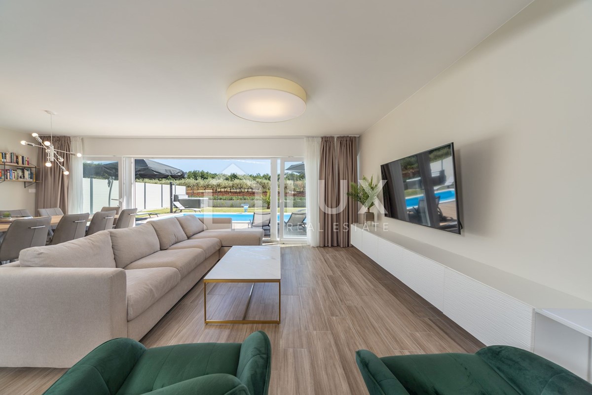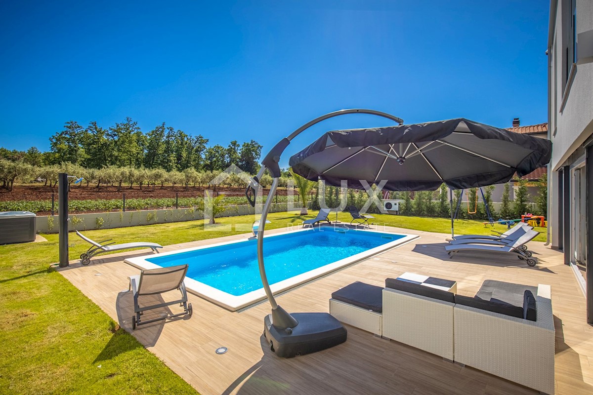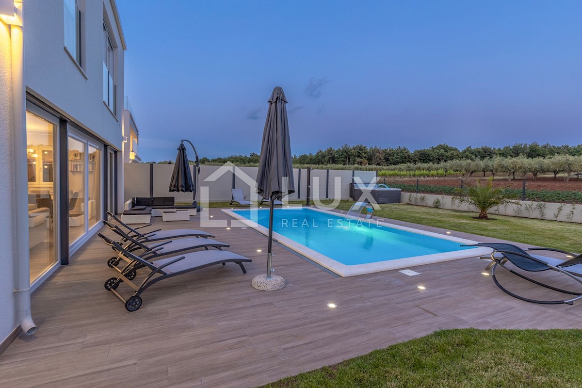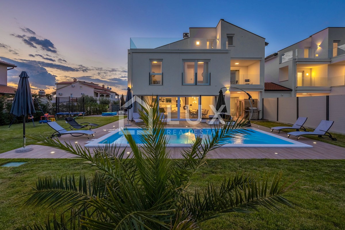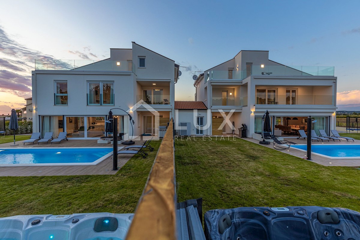 Wir verkaufen eine moderne und luxuriös ausgestattete Doppelhaushälfte mit Swimmingpool in ruhiger Lage am Stadtrand, nur 5 km vom Stadtzentrum und den ersten Stränden entfernt. Die Villa befindet sich auf einem Grundstück von 800 m2 und hat eine Fläche