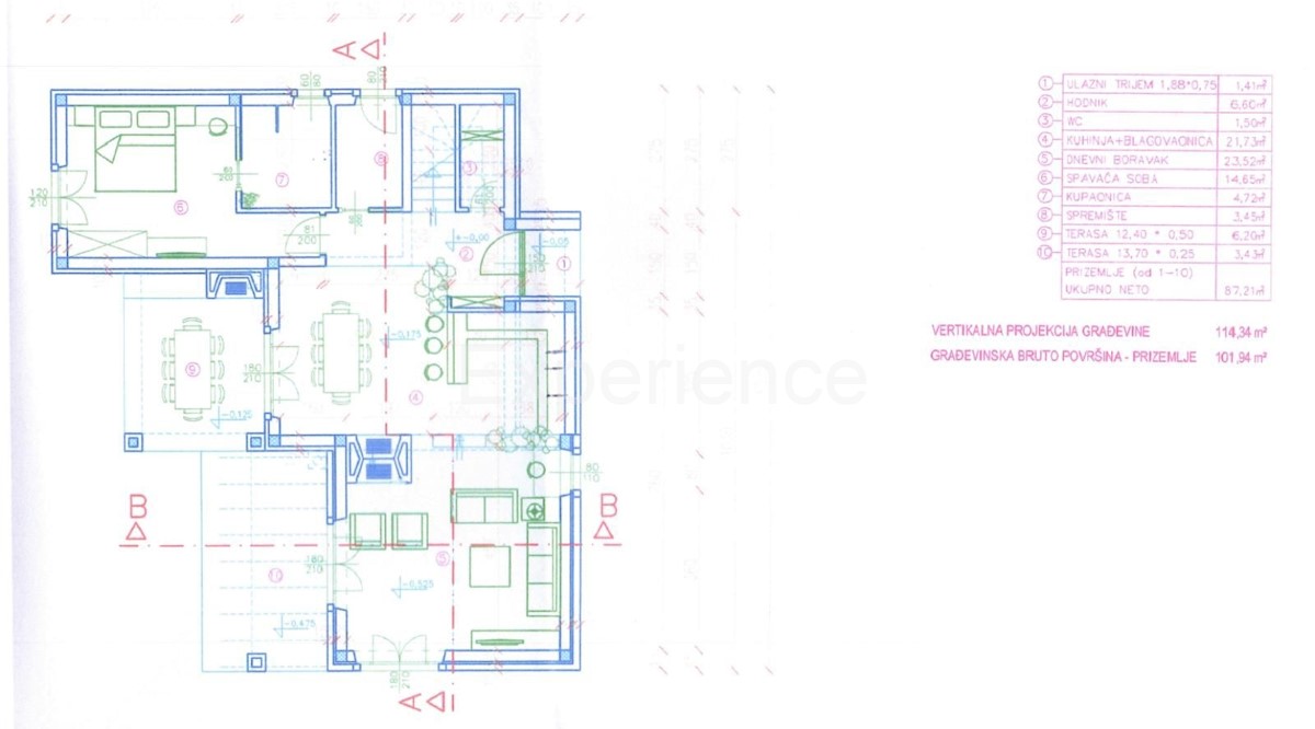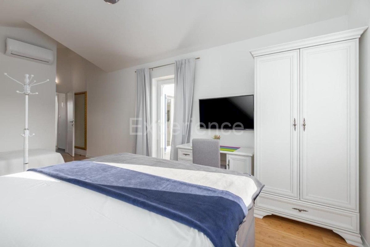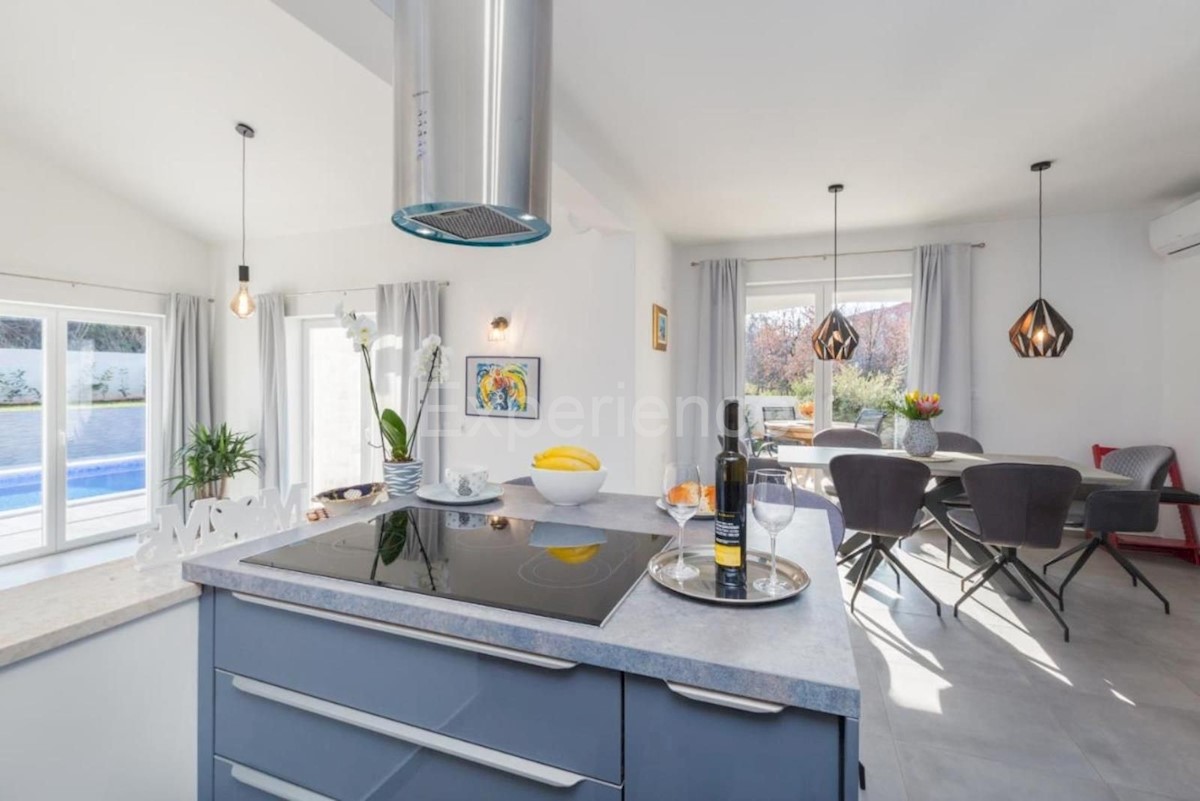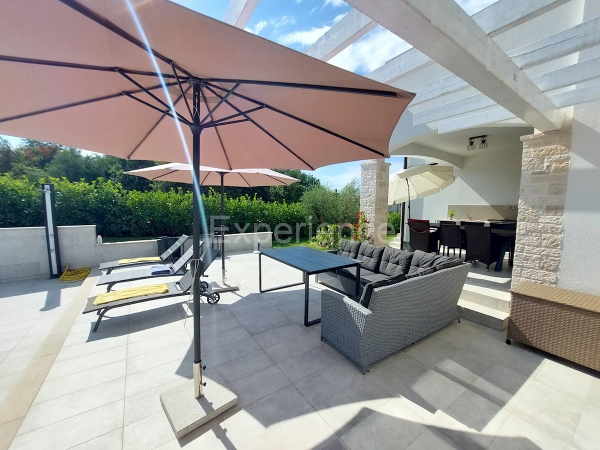 In der Nähe von Poreč - cca. 3 km vom Meer entfernt, in einer sehr ruhigen Umgebung, am Rande des Dorfes steht ein neu gebautes Haus, von 141 m². Das Haus wurde 2021. gebaut. Es besteht aus zwei Etagen. Im Erdgeschoss befindet sich: Vorraum, Wohnzimmer mi