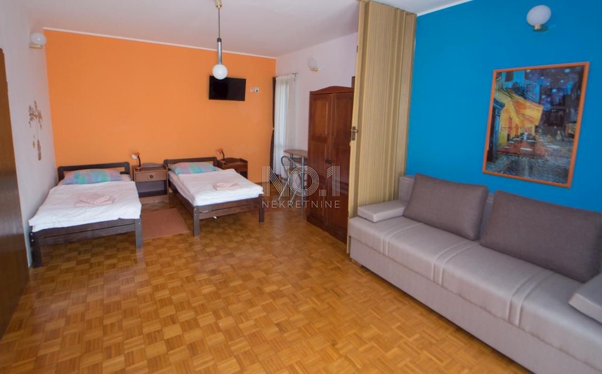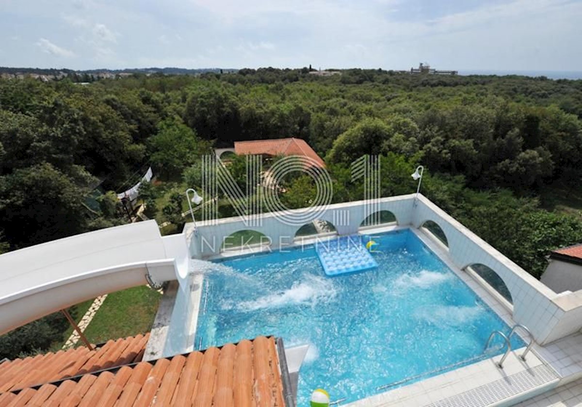 In der wunderschönen istrischen Stadt Poreč steht in unmittelbarer Nähe des Stadtzentrums ein beeindruckendes Gebäude mit 14 Schlafzimmern und 9 Bädern, einem Swimmingpool und Blick auf das Meer zum Verkauf. Dieses Haus liegt ganz oben in Poreč und bietet