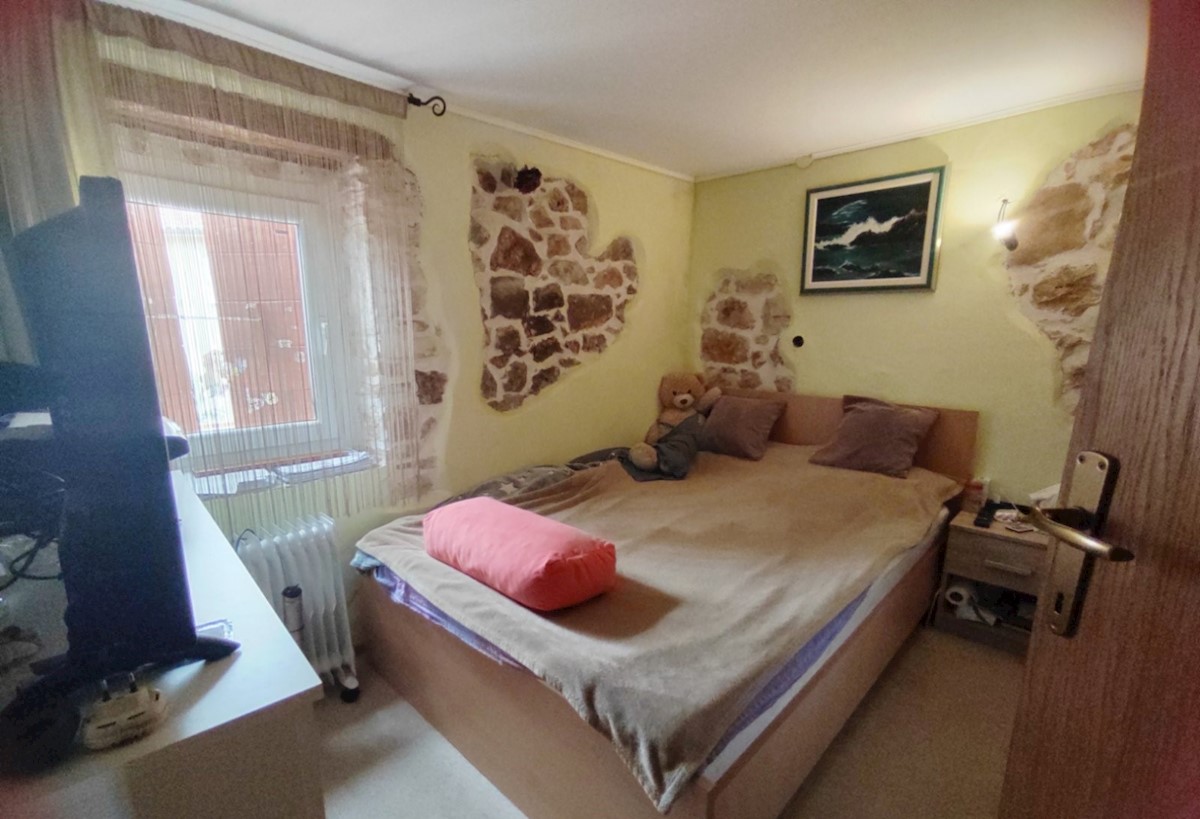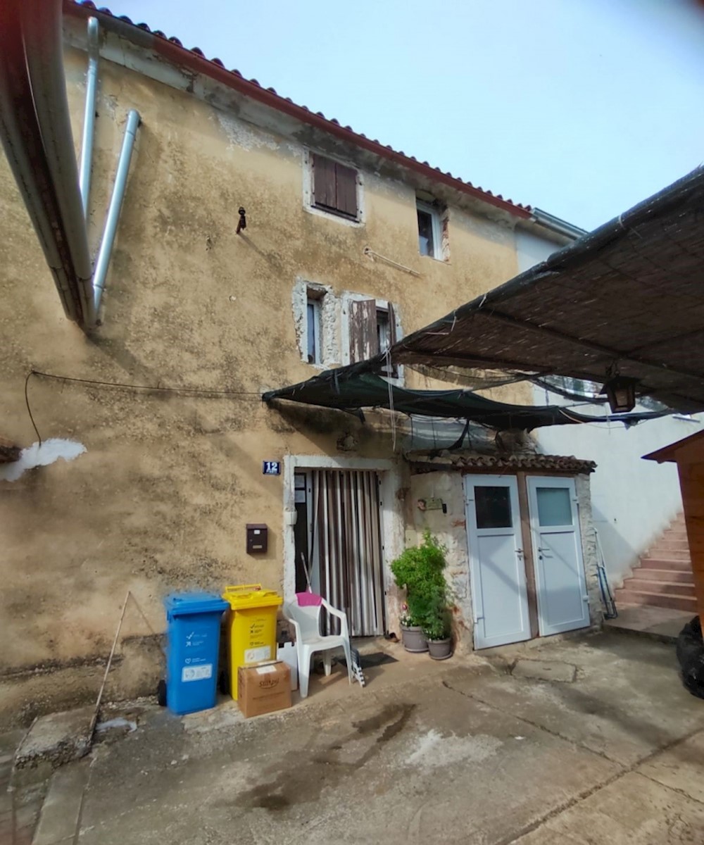 Steinhaus Poreč - Reihenhaus aus Stein auf drei Etagen zu verkaufen, Gesamtfläche 90 m2. Im Erdgeschoss gibt es eine Küche, ein Wohnzimmer, ein Esszimmer und ein Badezimmer. Im ersten Stock haben wir zwei Schlafzimmer und ein Badezimmer, während sich im z