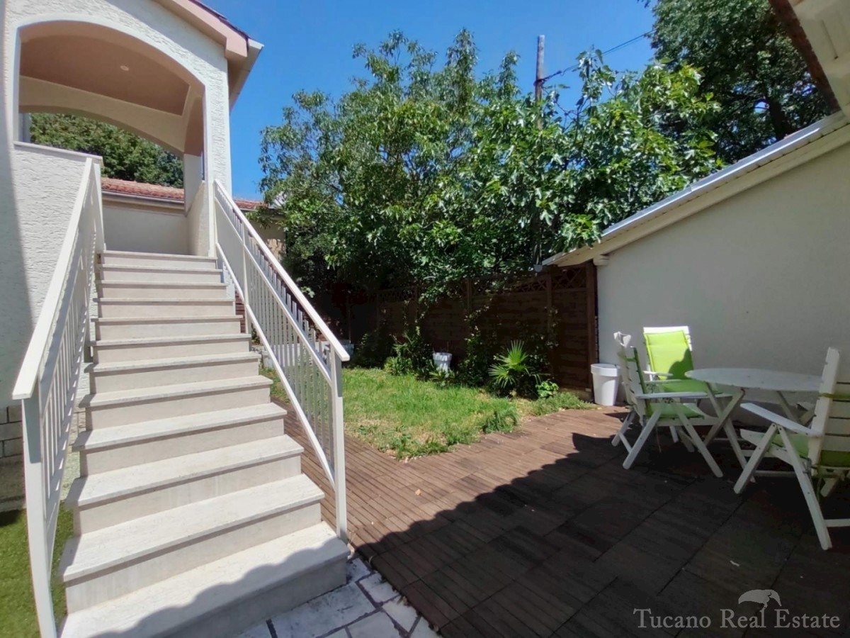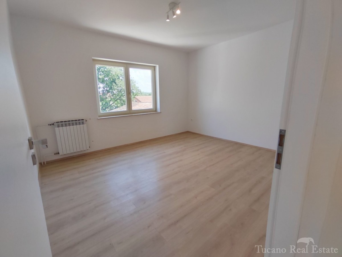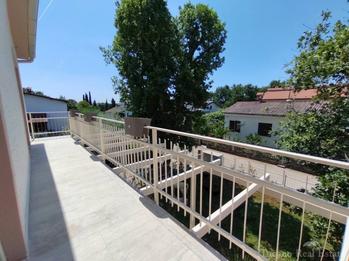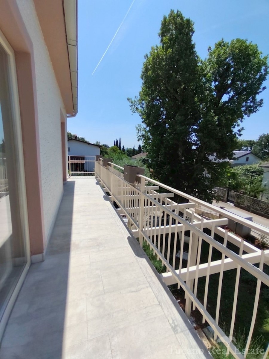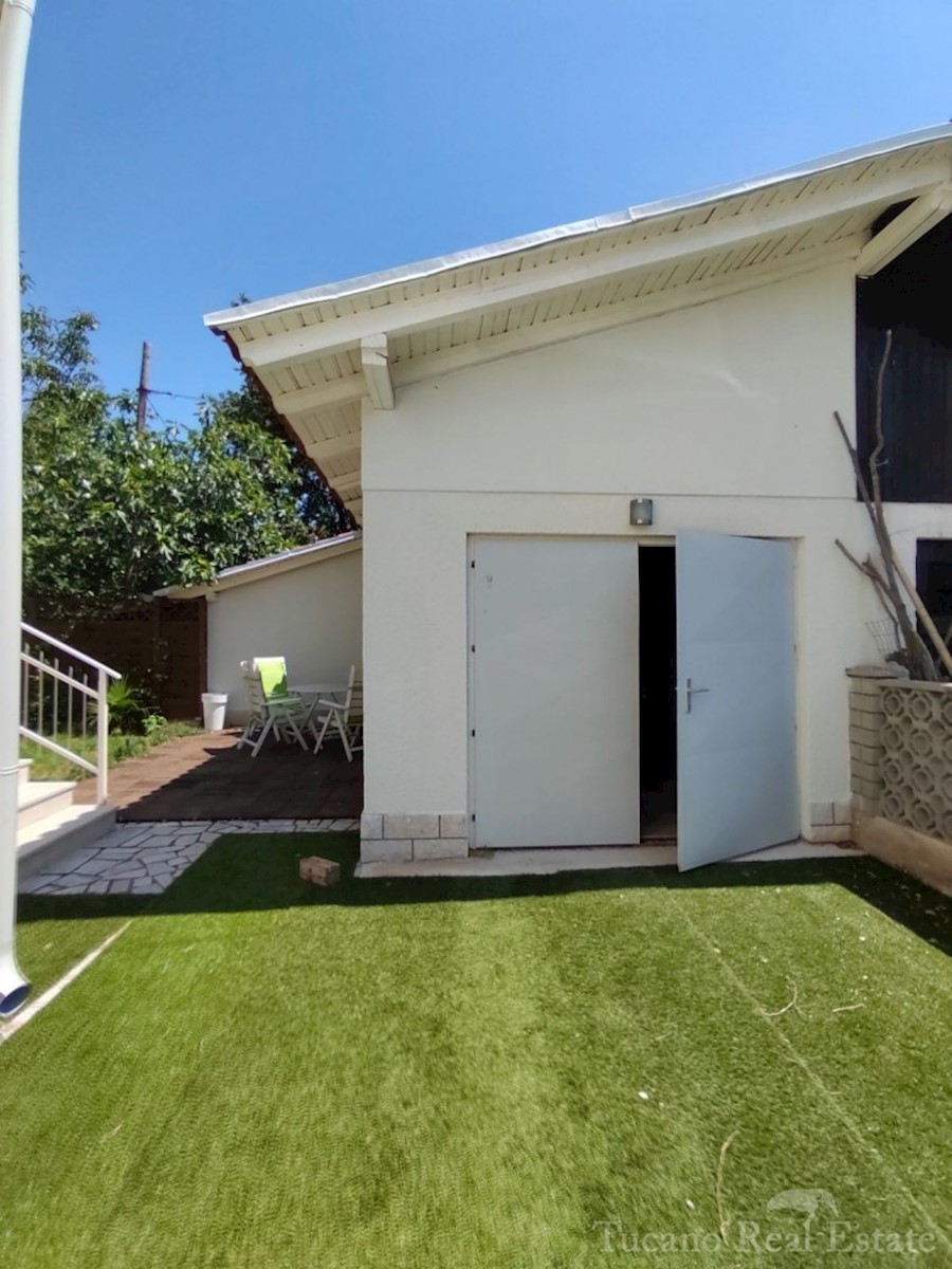 Doppelhaushälfte - Vorort von Poreč Poreč - 2 km vom Zentrum des Meeres und allen Einrichtungen entfernt, in schöner und ruhiger Lage zu verkaufen, 1. Etage eines Hauses mit Garten. Das Haus verfügt über eine eigene Auffahrt, einen Garten von 167 m2 mit z
