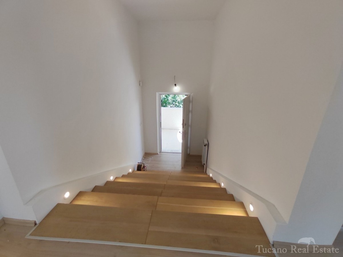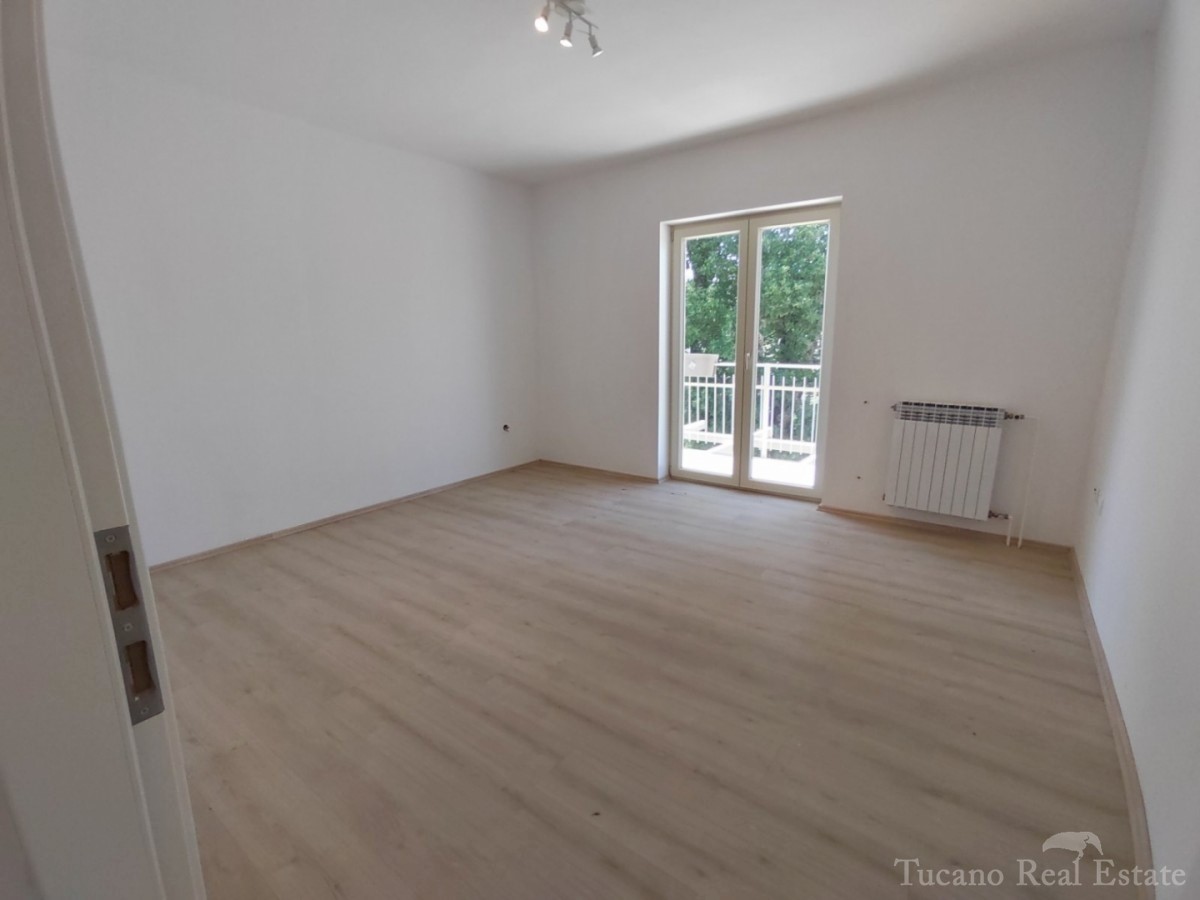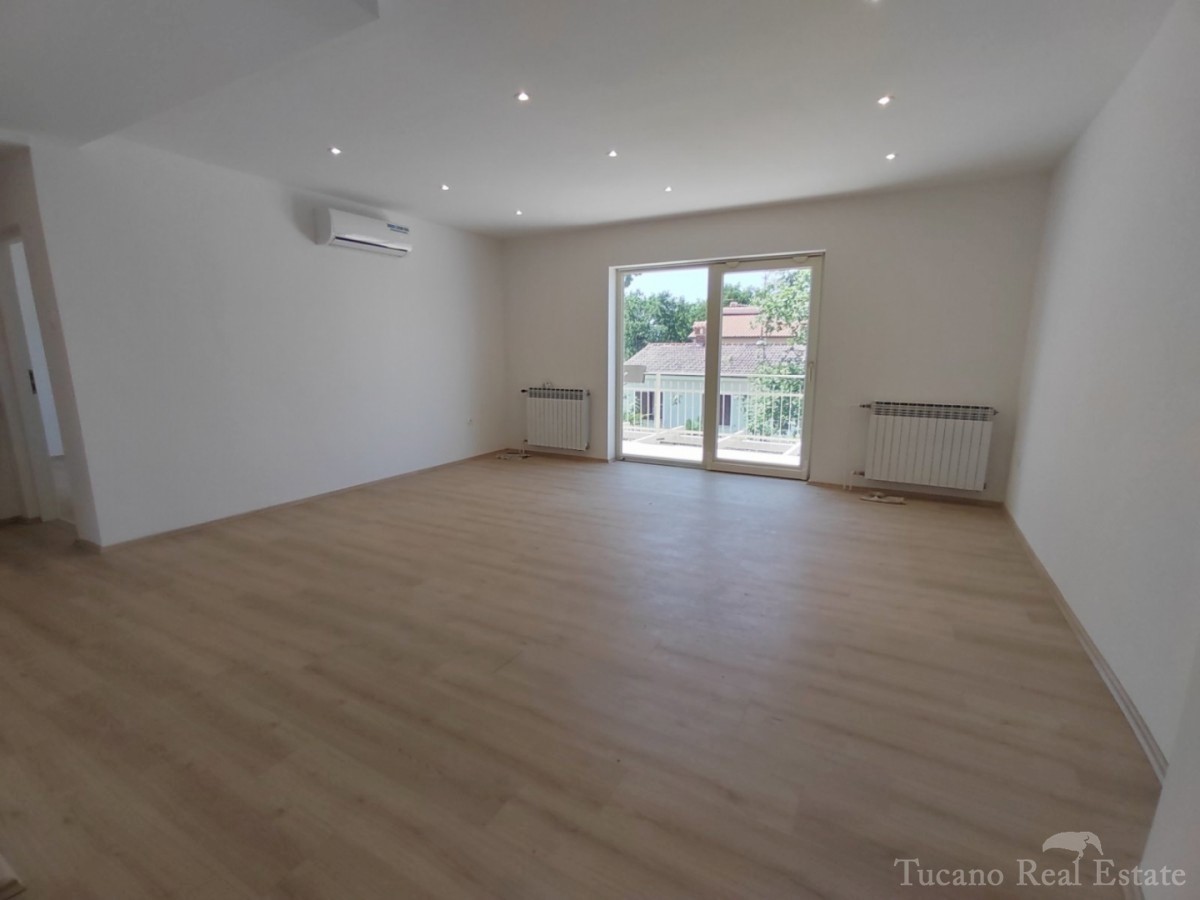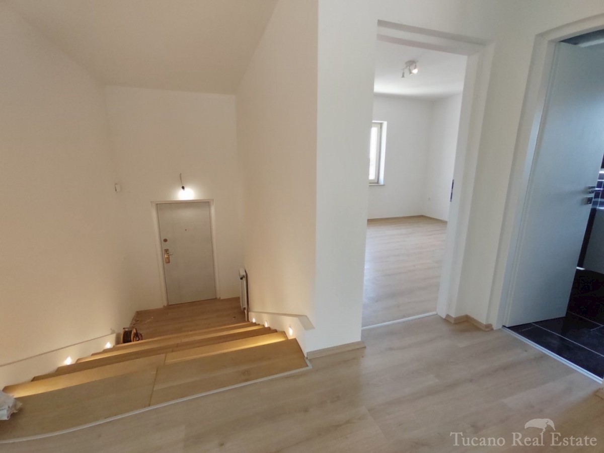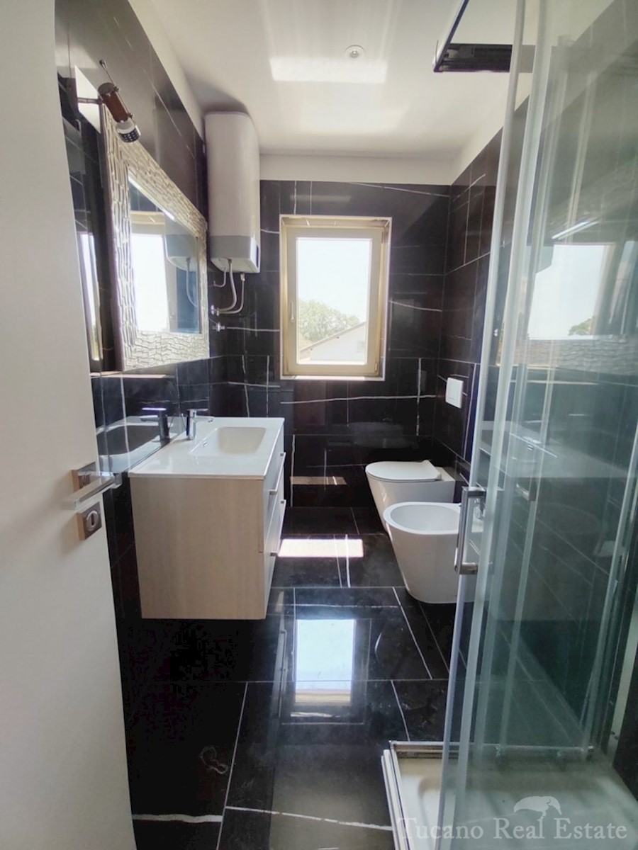 Doppelhaushälfte - Vorort von Poreč Poreč - 2 km vom Zentrum des Meeres und allen Einrichtungen entfernt, in schöner und ruhiger Lage zu verkaufen, 1. Etage eines Hauses mit Garten. Das Haus verfügt über eine eigene Auffahrt, einen Garten von 167 m2 mit z