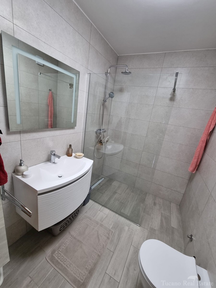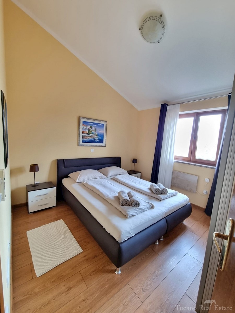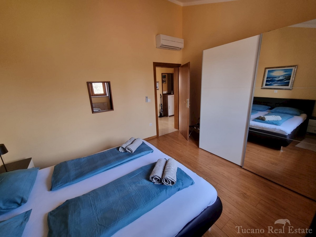 Nur 2 km von Poreč entfernt steht eine Doppelhaushälfte zum Verkauf. Das Haus besteht aus zwei Wohnungen. Jede Wohnung ist auf zwei Ebenen und hat 72m2, was ein großer Vorteil ist, wenn Sie eine Wohnung mieten und in der anderen wohnen möchten. Jede Wohnu