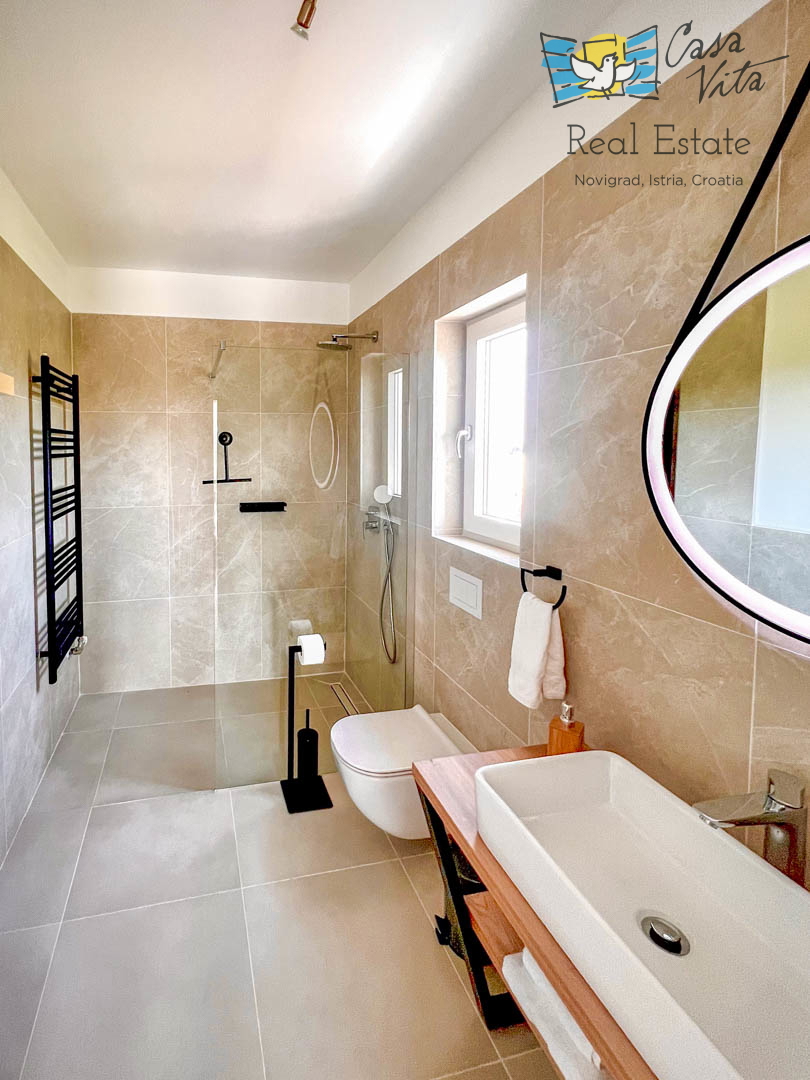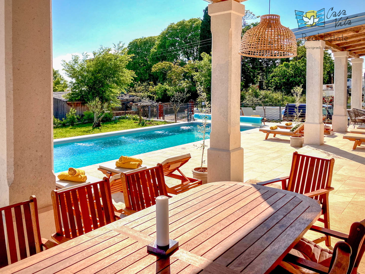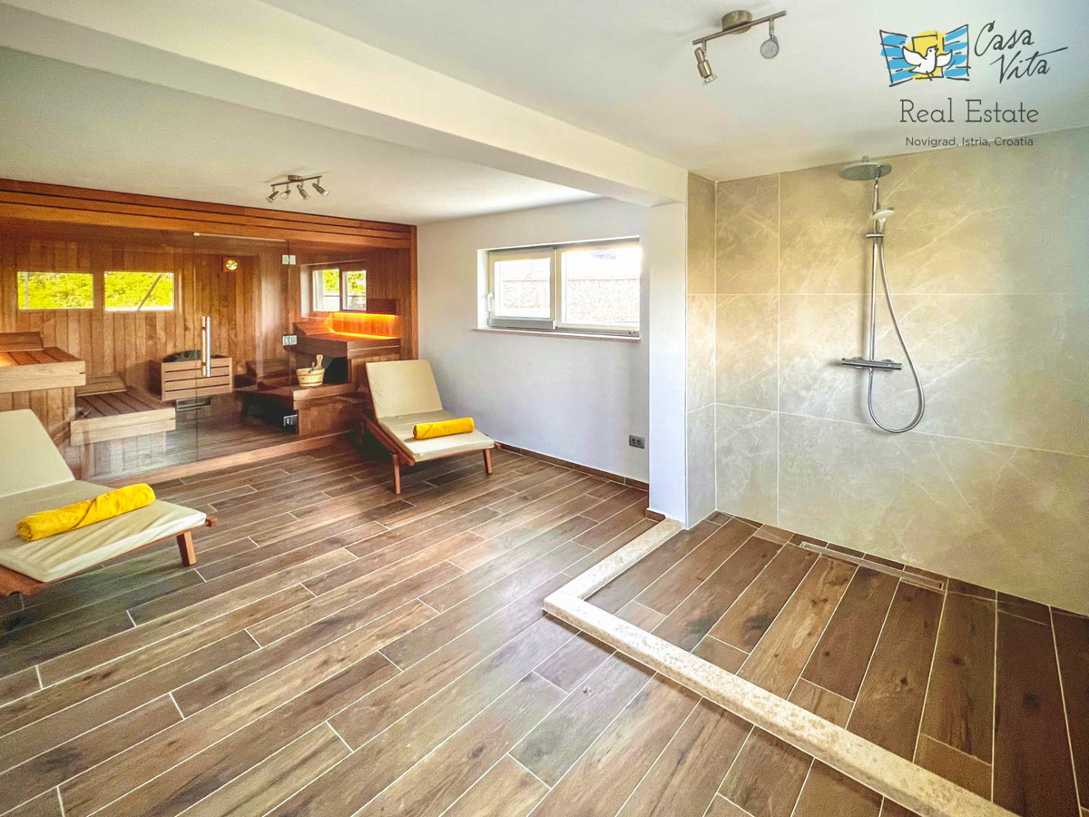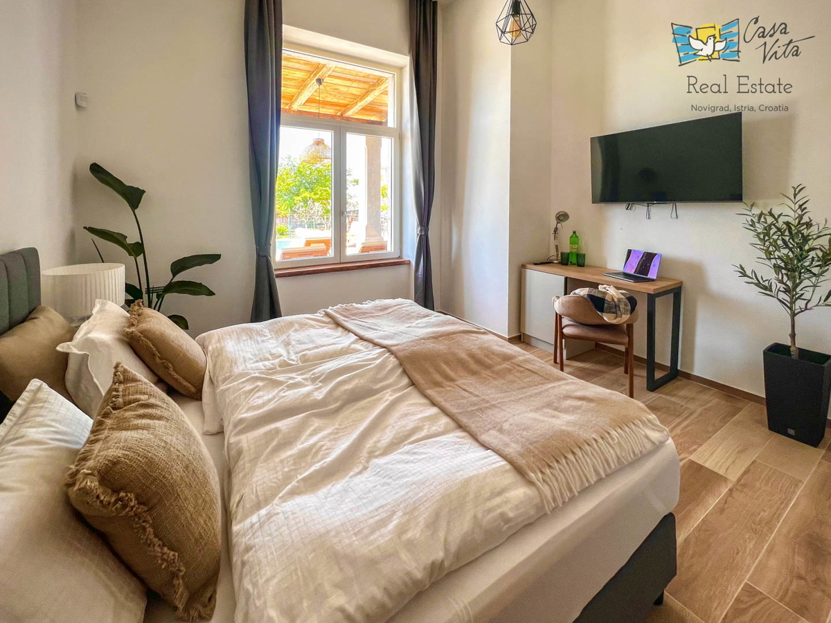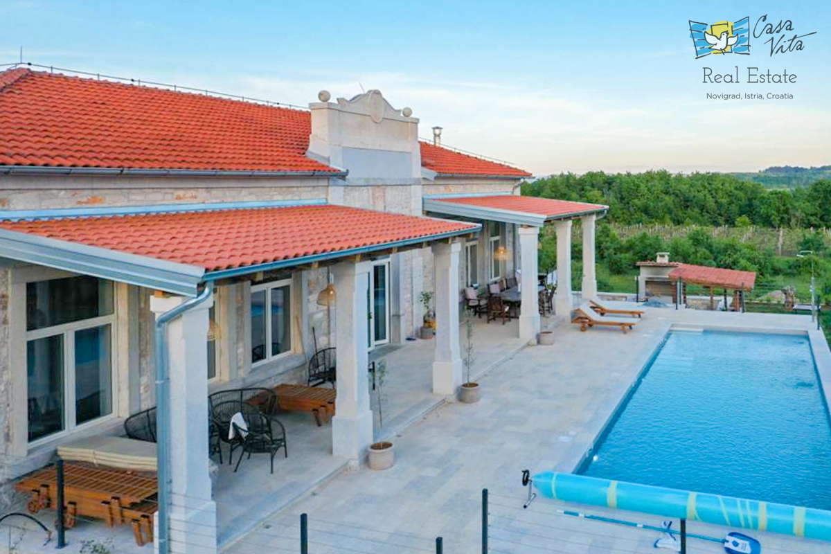 Istrien, Poreč Diese einzigartige Villa liegt am Rande eines schönen istrischen Dorfes im Hinterland von Poreč, umgeben von Weinbergen und viel Grün. Die ursprüngliche Struktur ist mehr als 200 Jahre alt und wurde im letzten Jahr komplett zu einer gerä