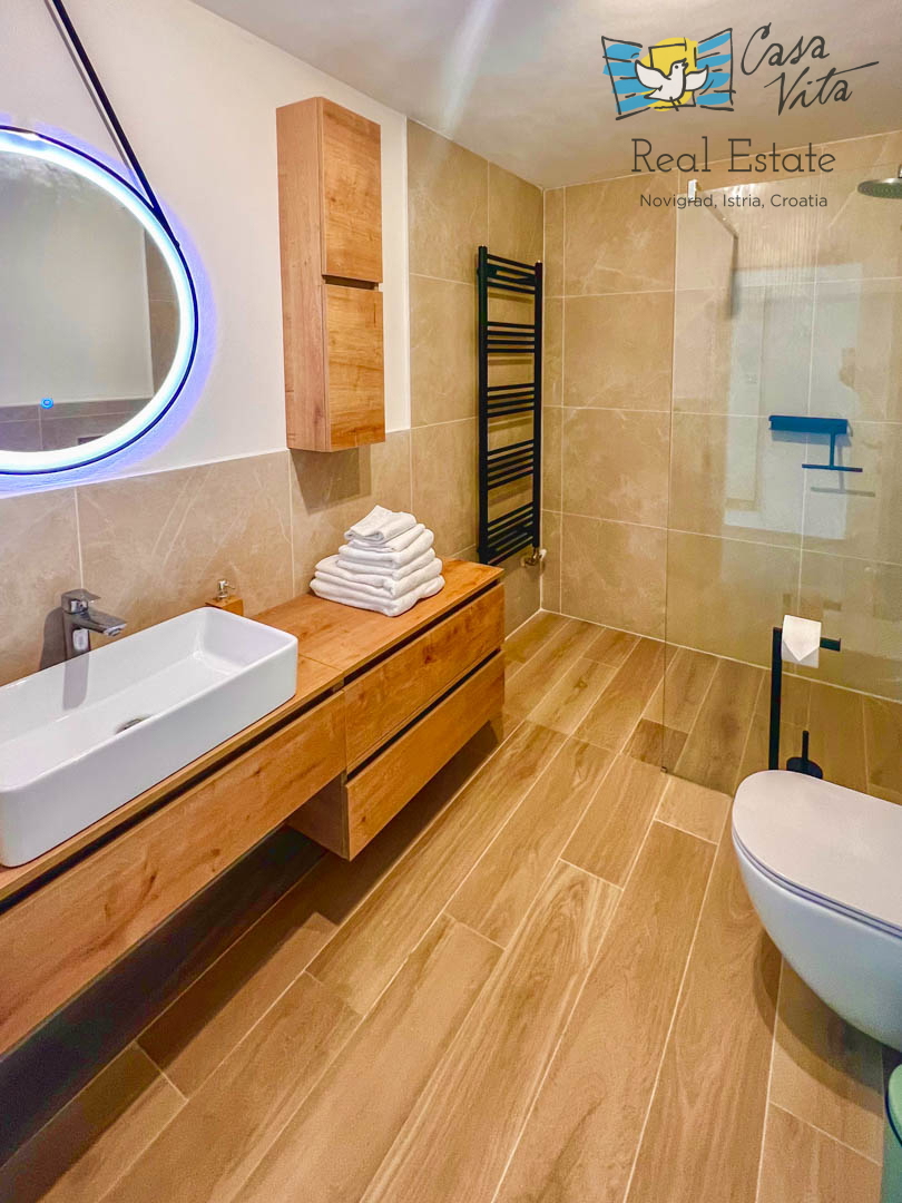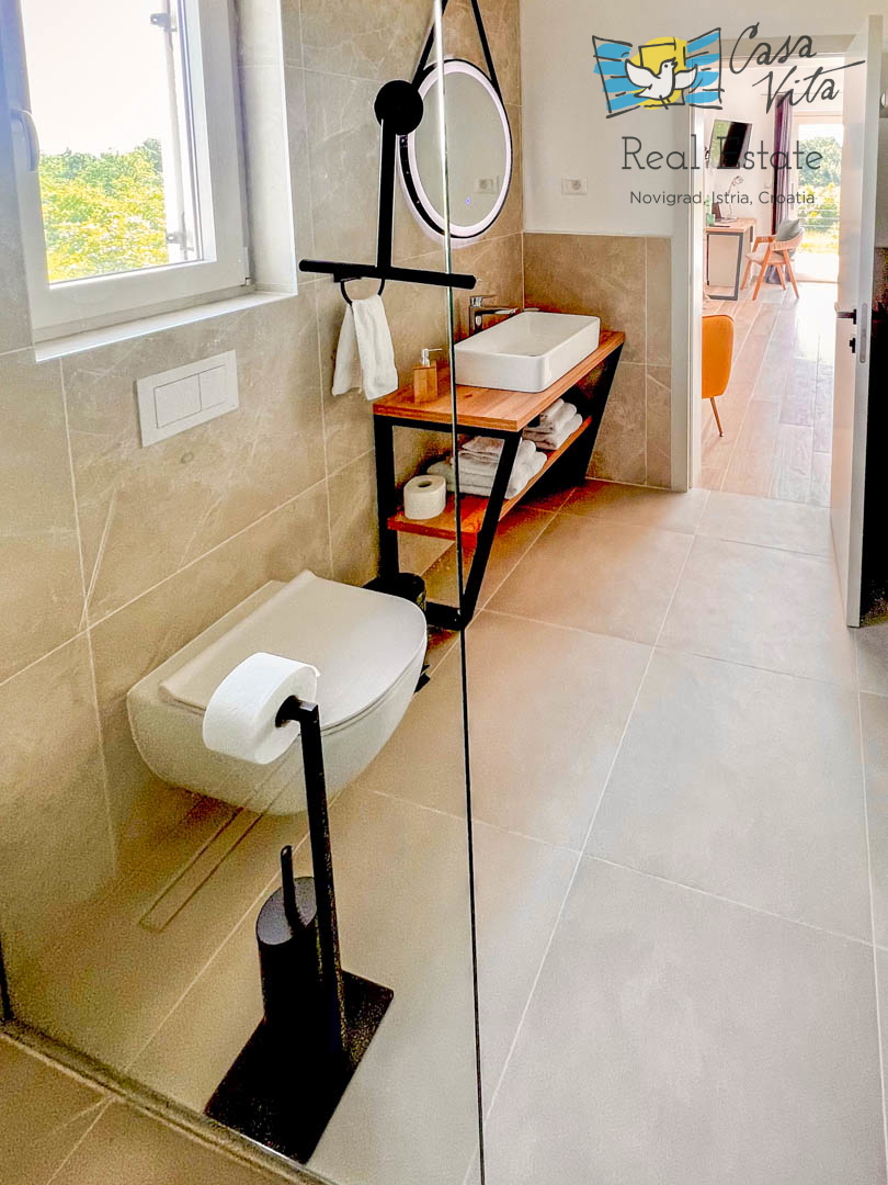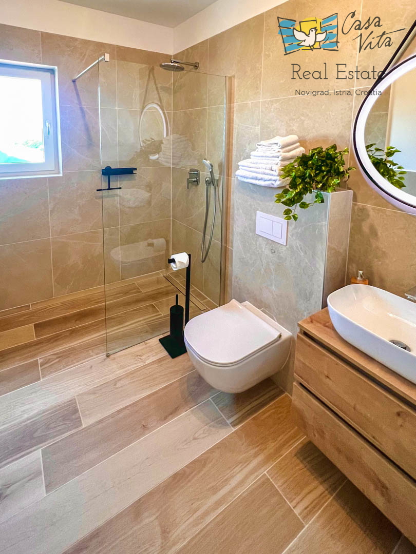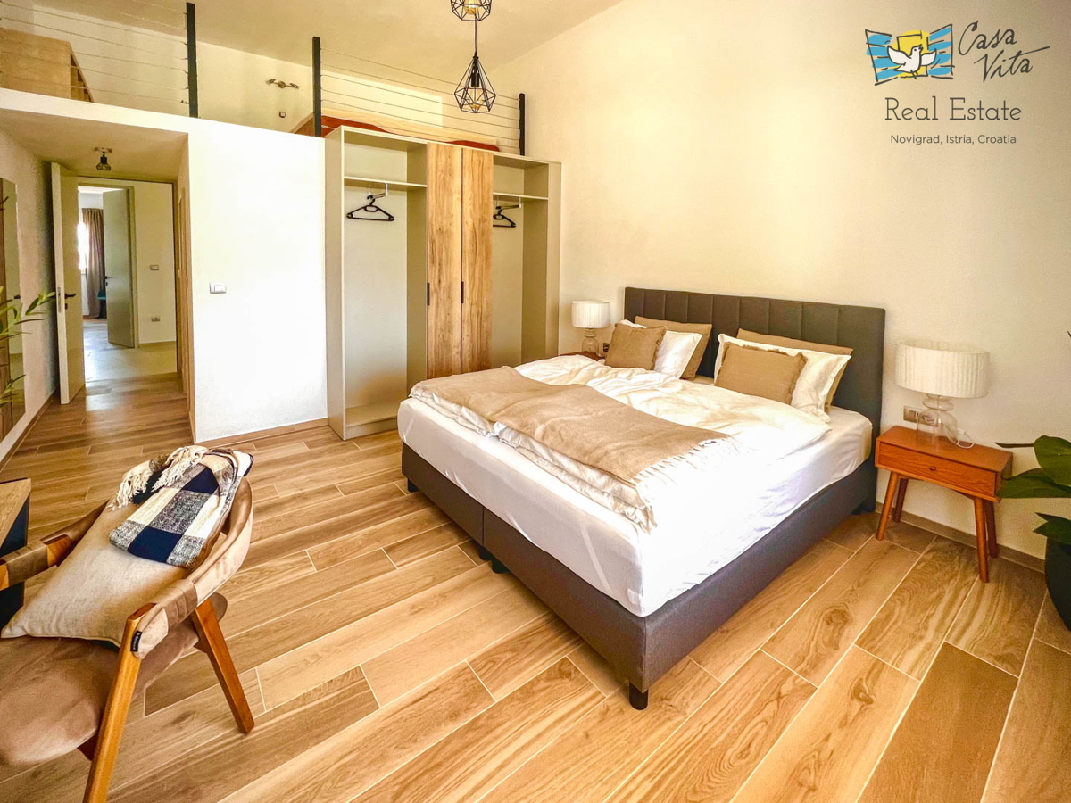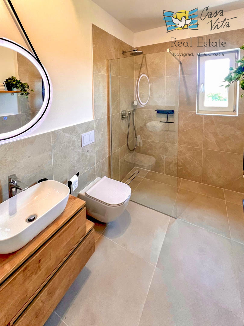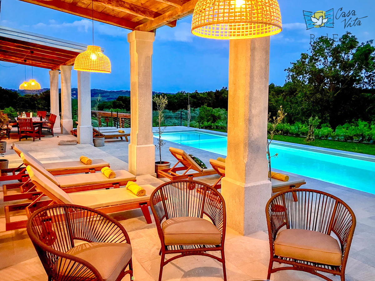 Istrien, Poreč Diese einzigartige Villa liegt am Rande eines schönen istrischen Dorfes im Hinterland von Poreč, umgeben von Weinbergen und viel Grün. Die ursprüngliche Struktur ist mehr als 200 Jahre alt und wurde im letzten Jahr komplett zu einer gerä
