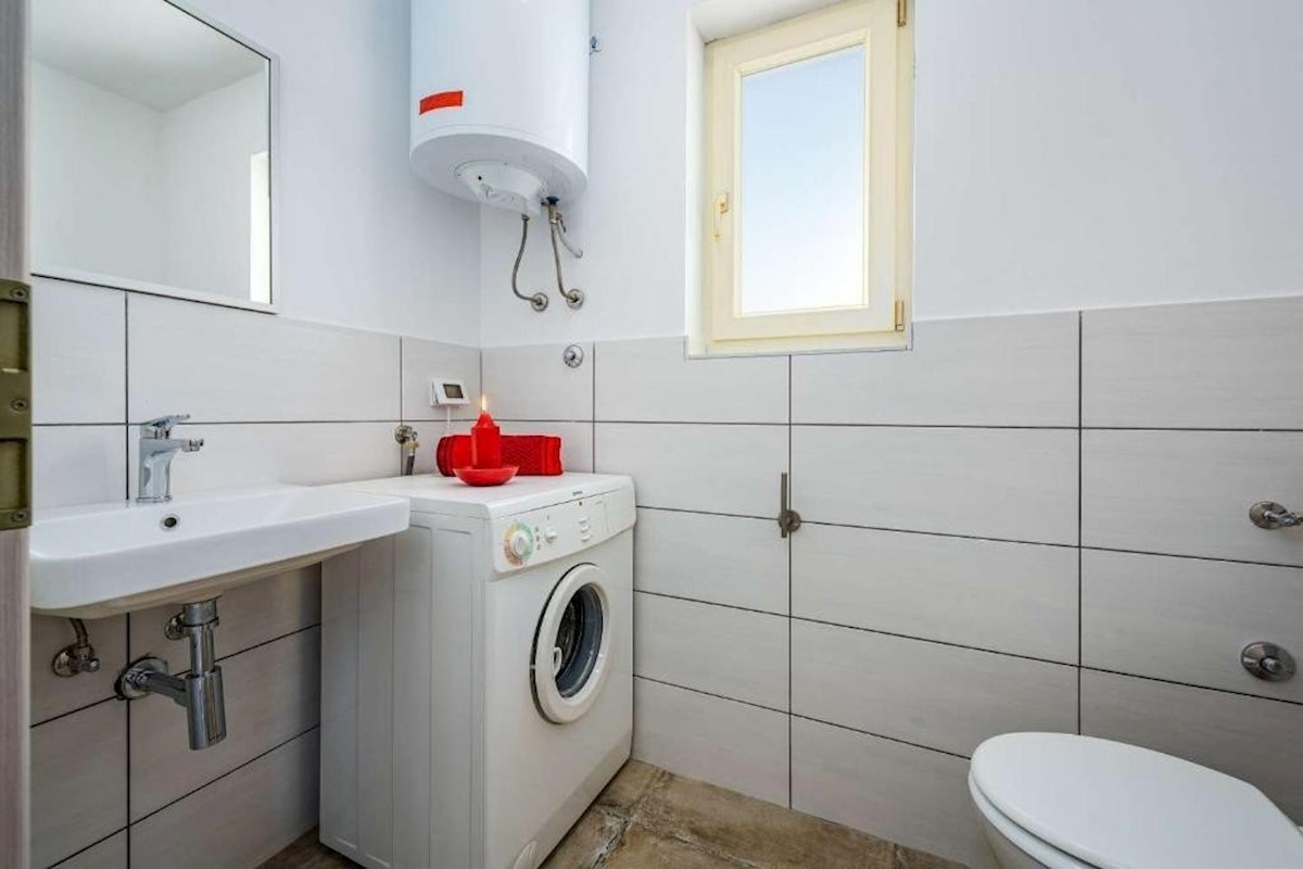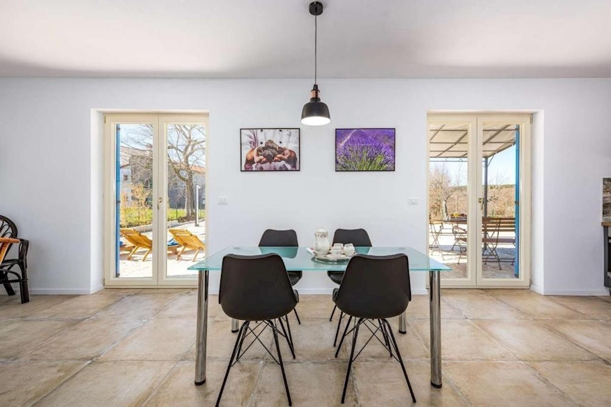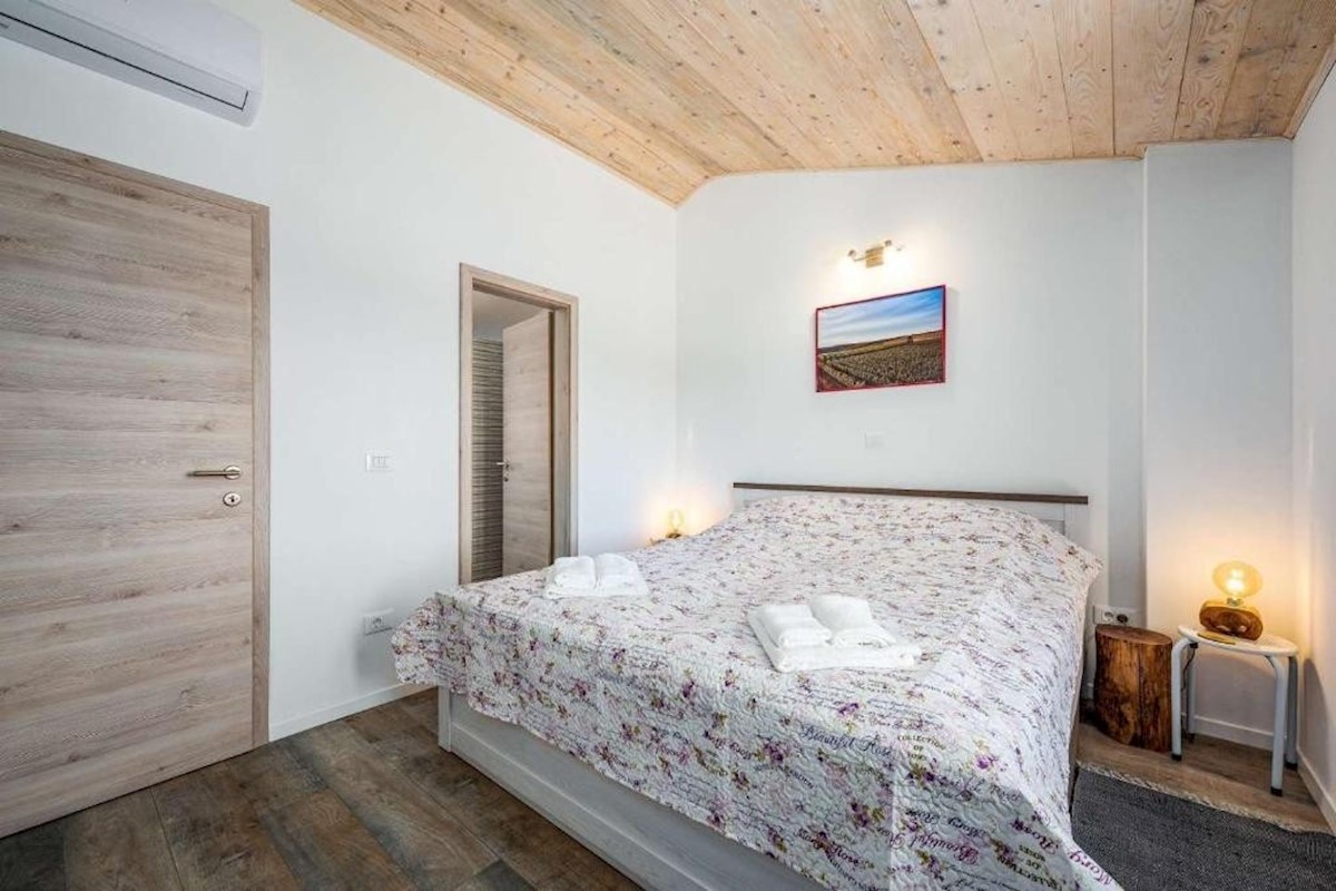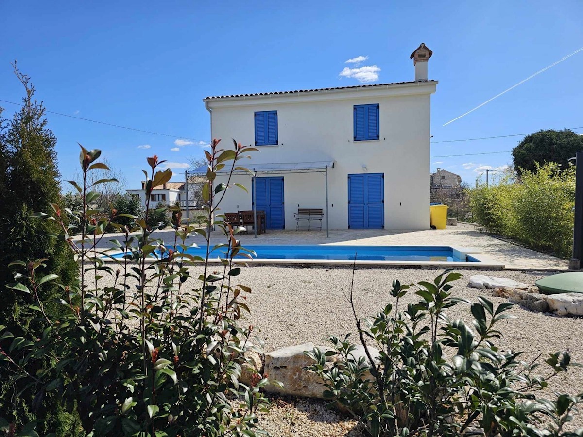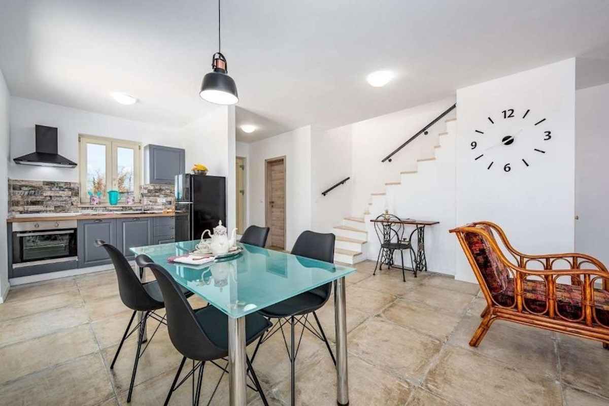 Umgebung von Poreč – Einfamilienhaus mit Swimmingpool, in sehr ruhiger und schöner Lage – Erdgeschoss: Wohnzimmer, Küche und Esszimmer, Toilette und Hauswirtschaftsraum – erster Stock: 2 Schlafzimmer und 2 Badezimmer – auf einem Grundstück von 613 m2 gibt