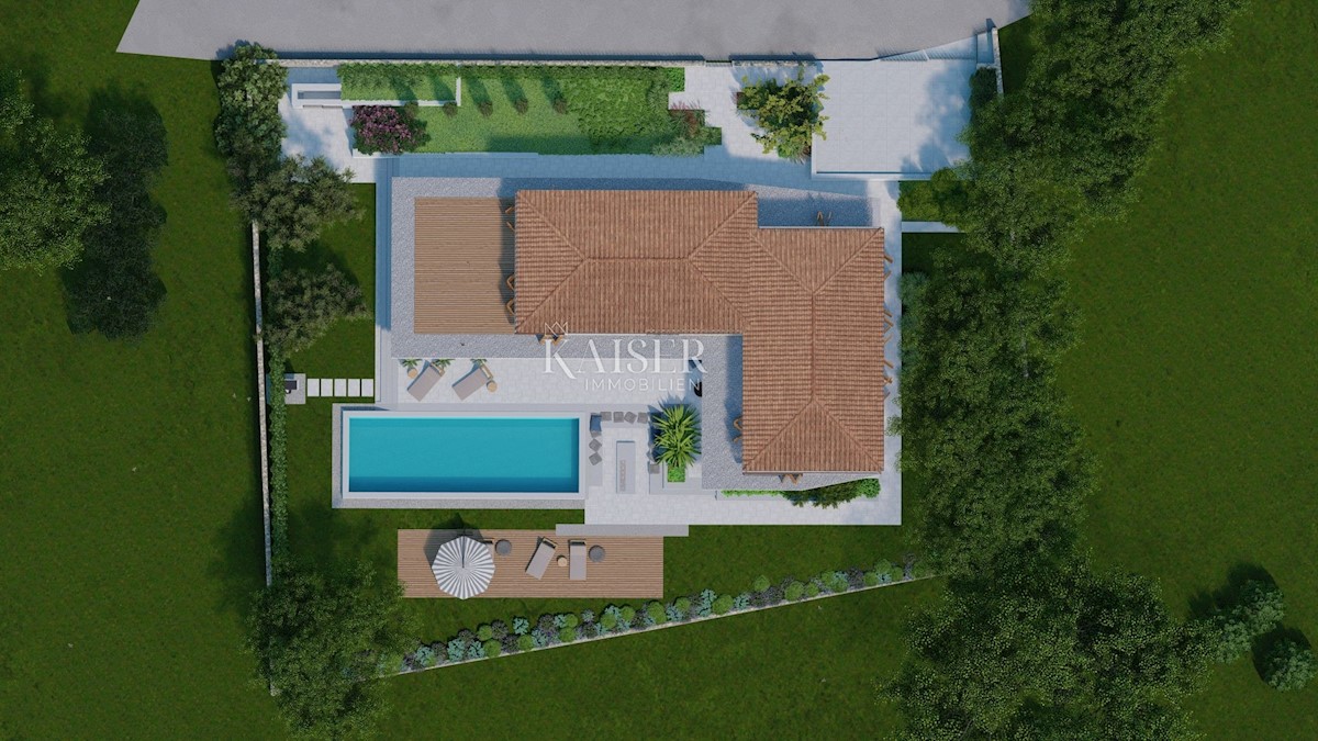 Kaiser Immobilien präsentiert eine neue Luxusimmobilie auf dem Markt, nur 13 km von der Stadt Poreč entfernt. Das Anwesen befindet sich in einer wunderschönen autochthonen istrischen Stadt, die für den Bau von Villen und ähnlichen Einrichtungen sehr belie