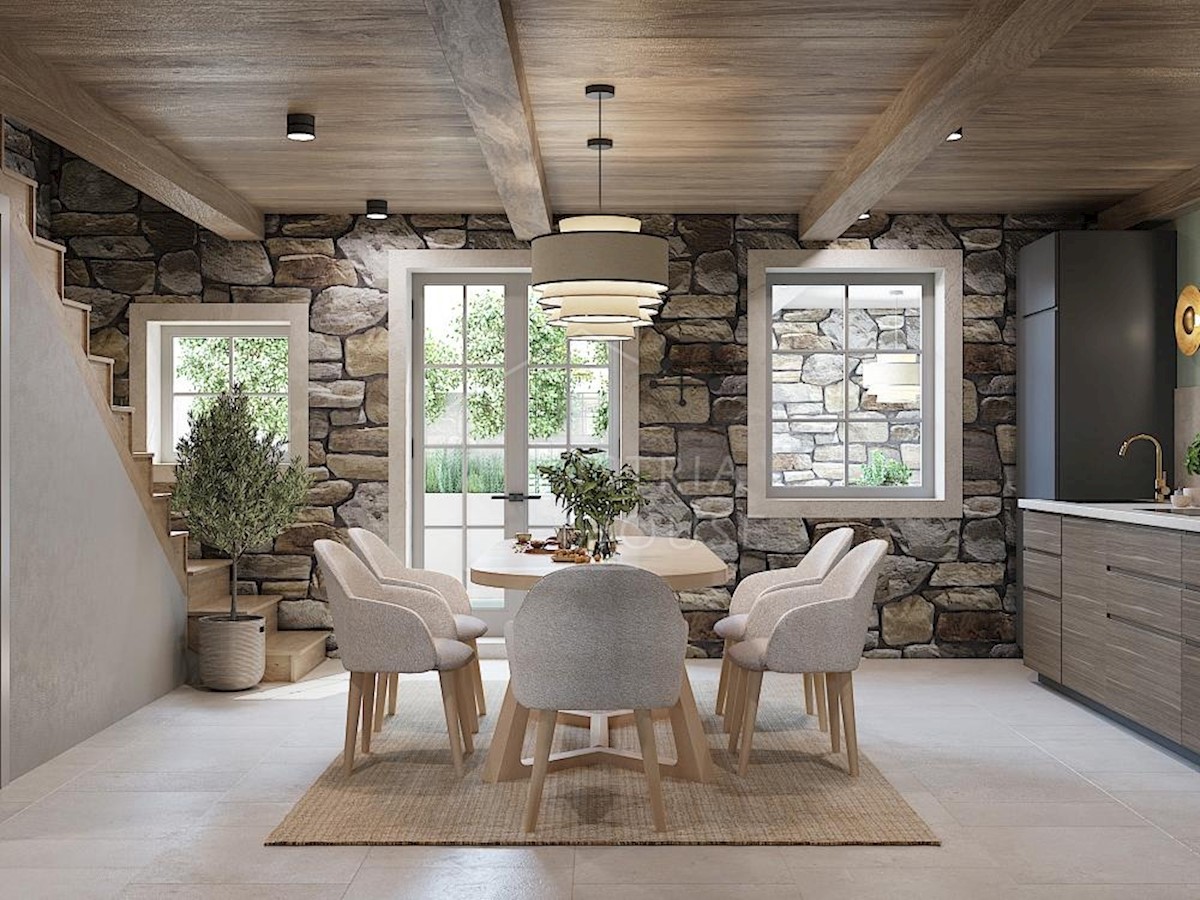 Istria, Parenzo, dintorni Vendesi casa in pietra autoctona con piscina decorata con il miglior design, situata nelle vicinanze di Parenzo. La casa ha 183 m2 e si estende su tre piani e una cantina. Al piano terra c'è un soggiorno, cucina, bagno, ripostig