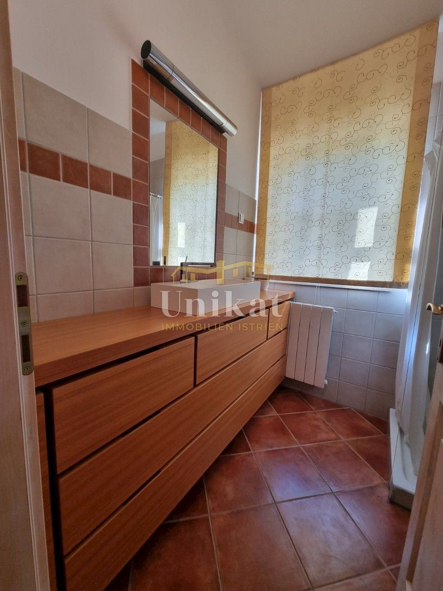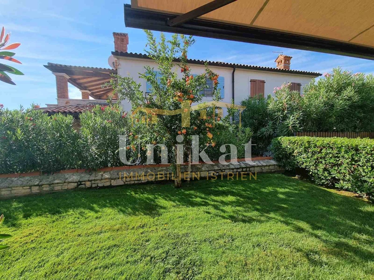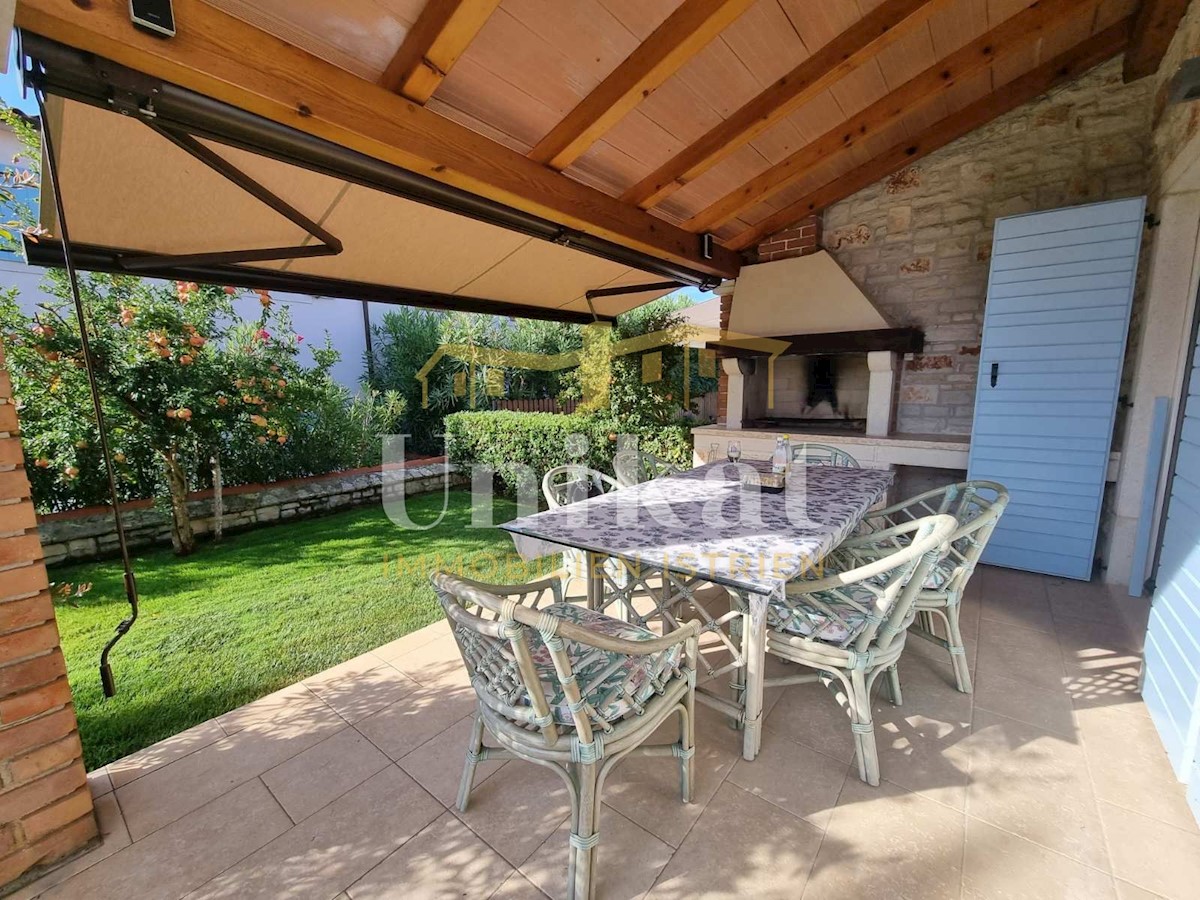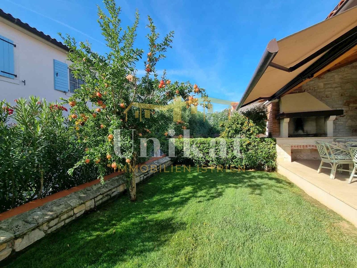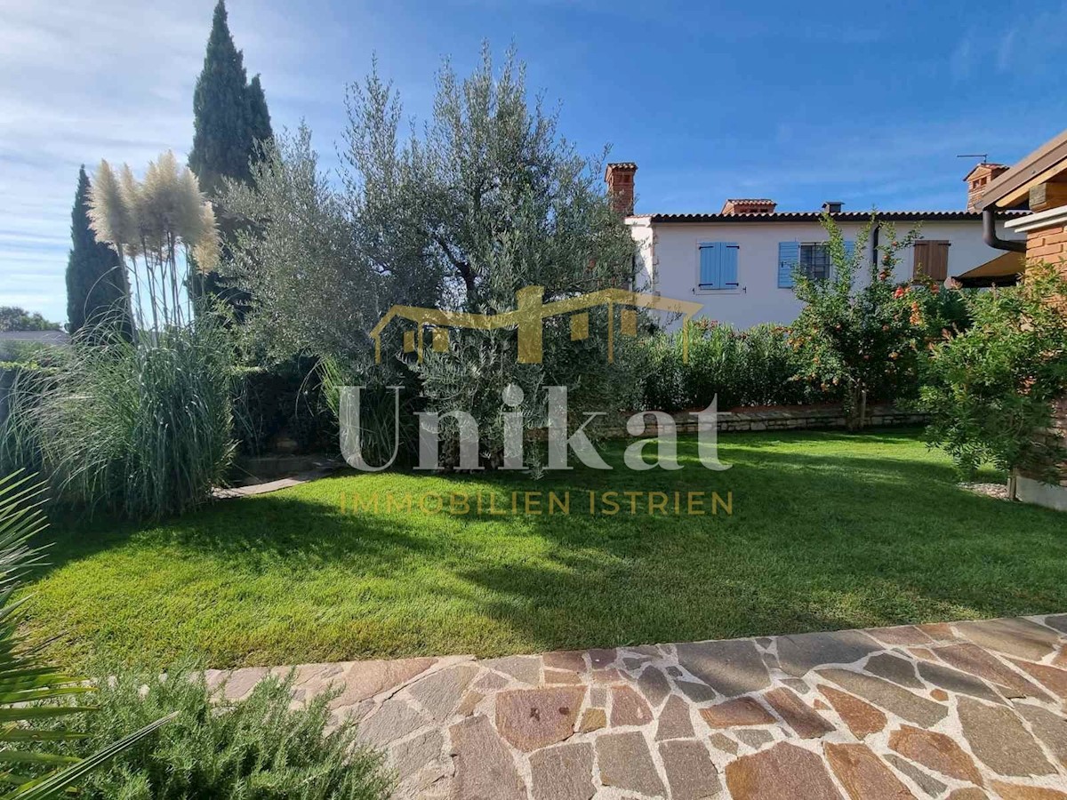 Sehr schöne Doppelhaushälfte in ruhiger Lage, 1 km vom Meer und 9 km von der Stadt Poreč entfernt. Das Haus besteht aus Erdgeschoss und 1. Stock mit einer Wohnfläche von 135 m2 geschlossener Wohnfläche und 155 m2 mit Terrassen. Im Erdgeschoss befinden sic