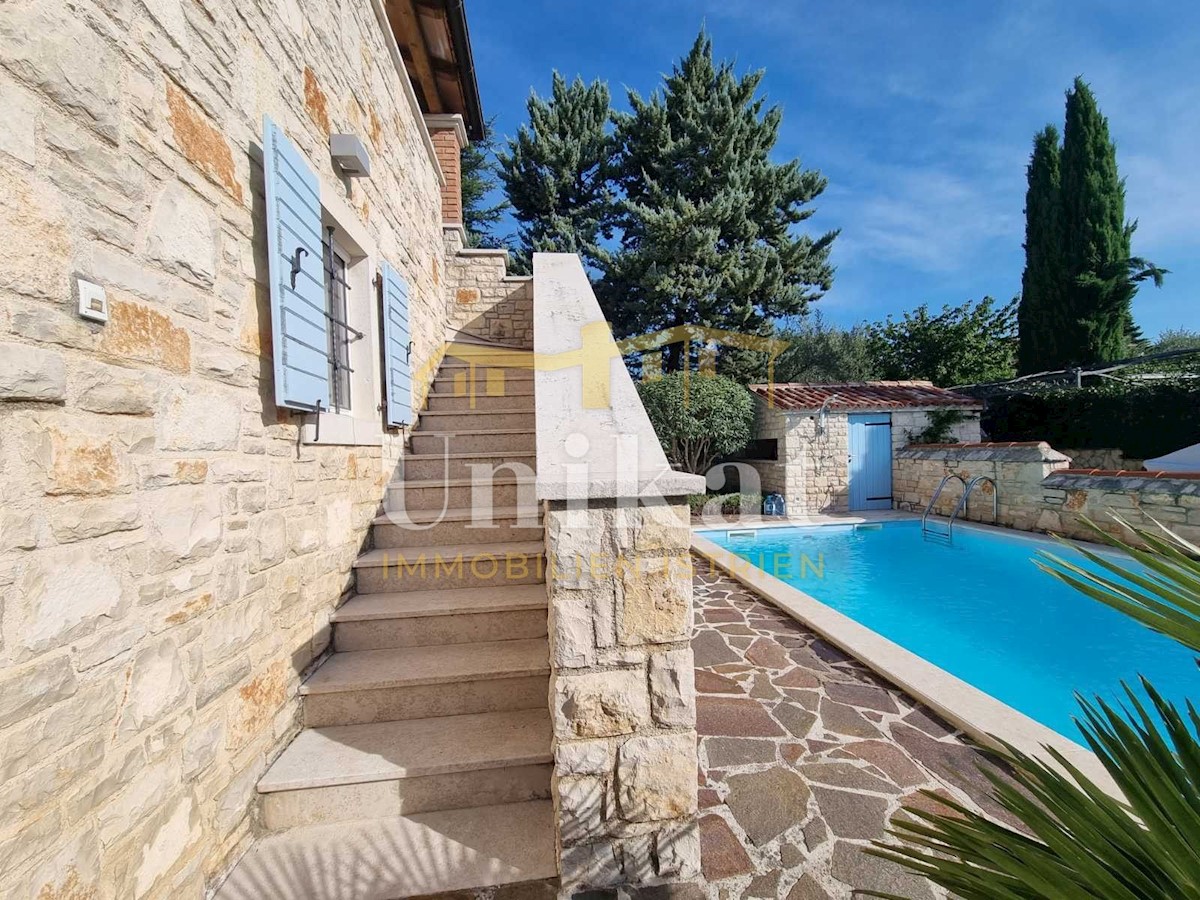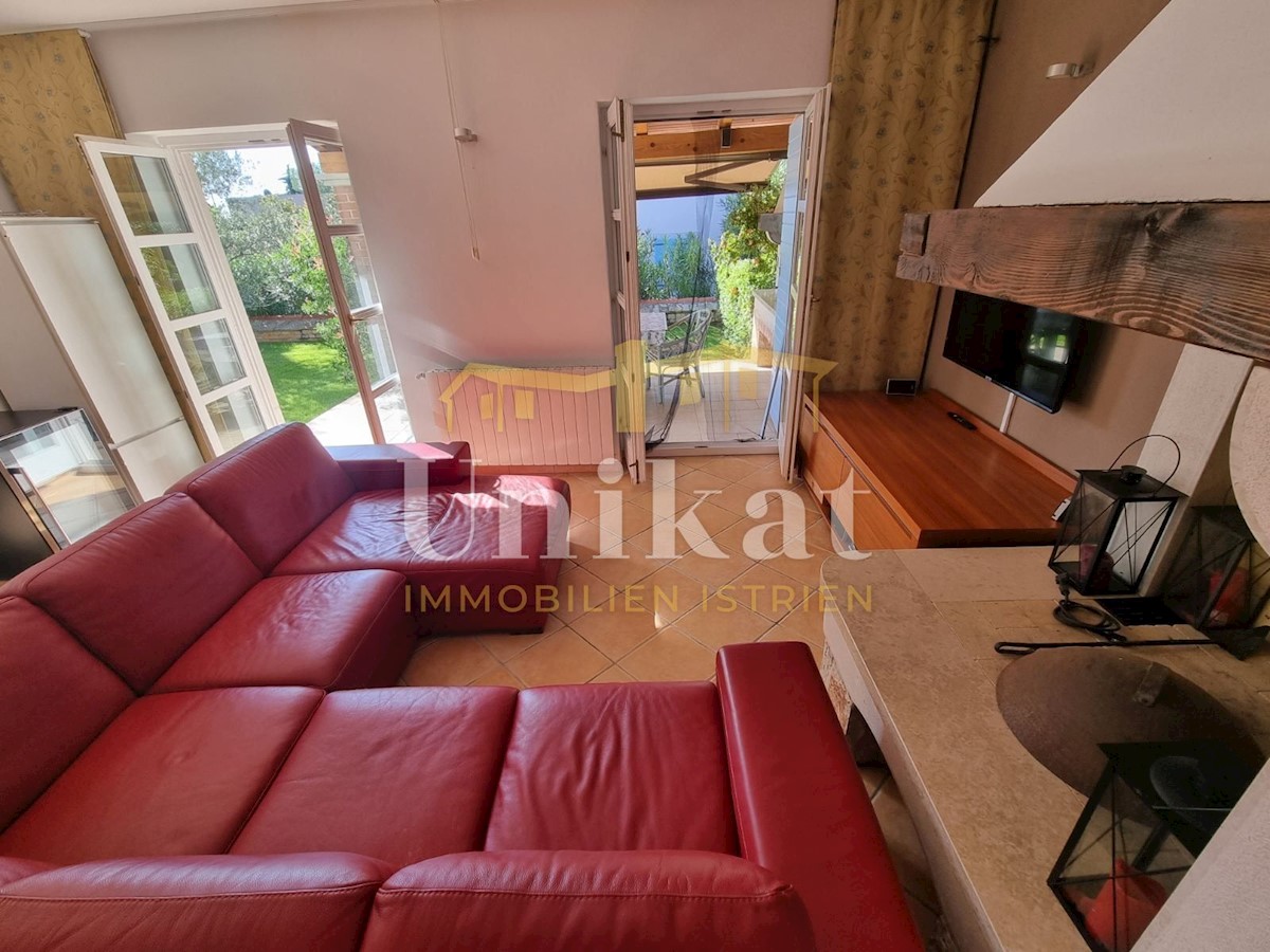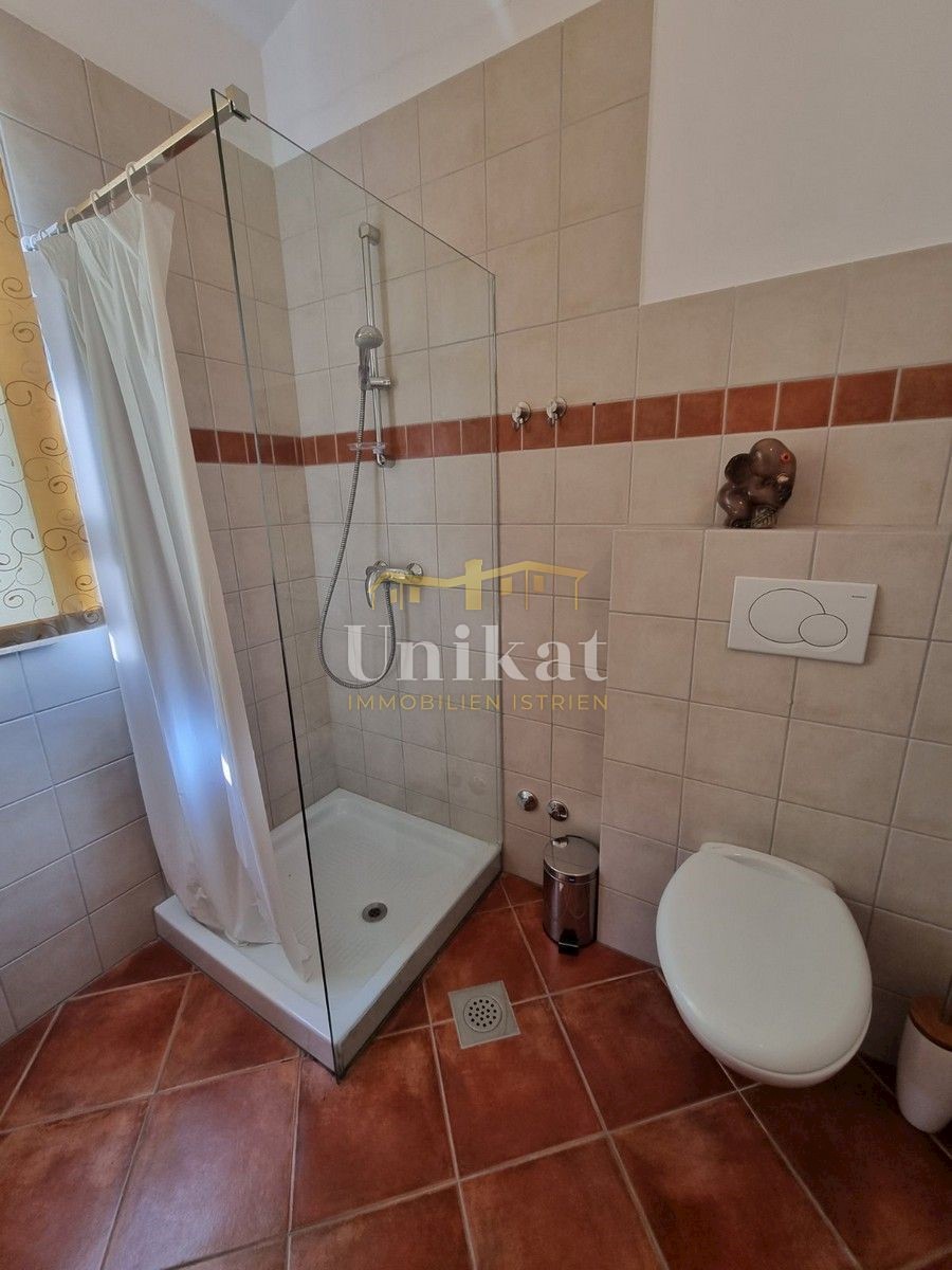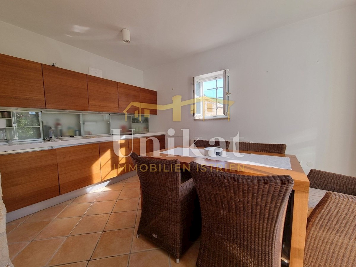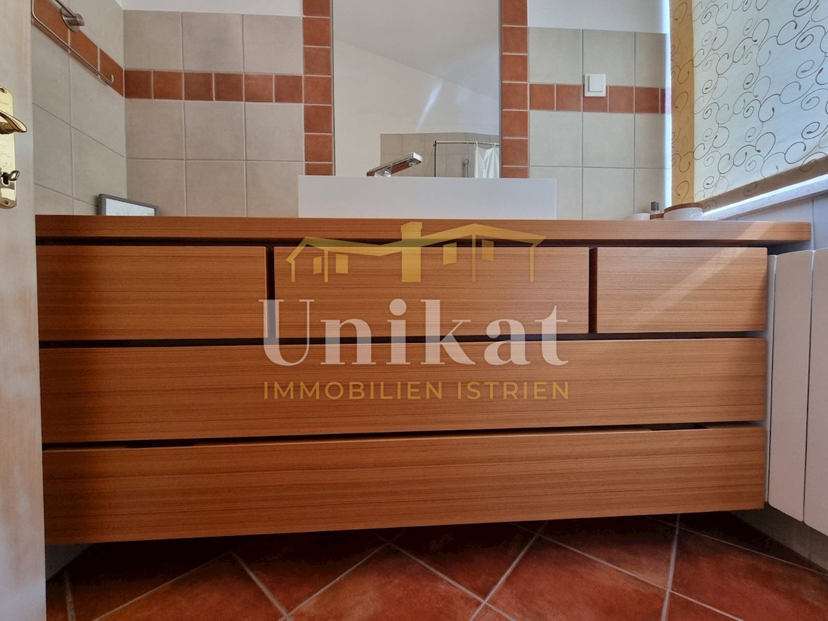 Sehr schöne Doppelhaushälfte in ruhiger Lage, 1 km vom Meer und 9 km von der Stadt Poreč entfernt. Das Haus besteht aus Erdgeschoss und 1. Stock mit einer Wohnfläche von 135 m2 geschlossener Wohnfläche und 155 m2 mit Terrassen. Im Erdgeschoss befinden sic