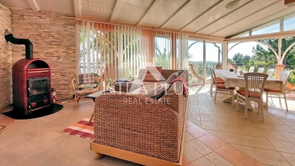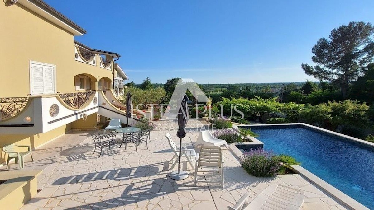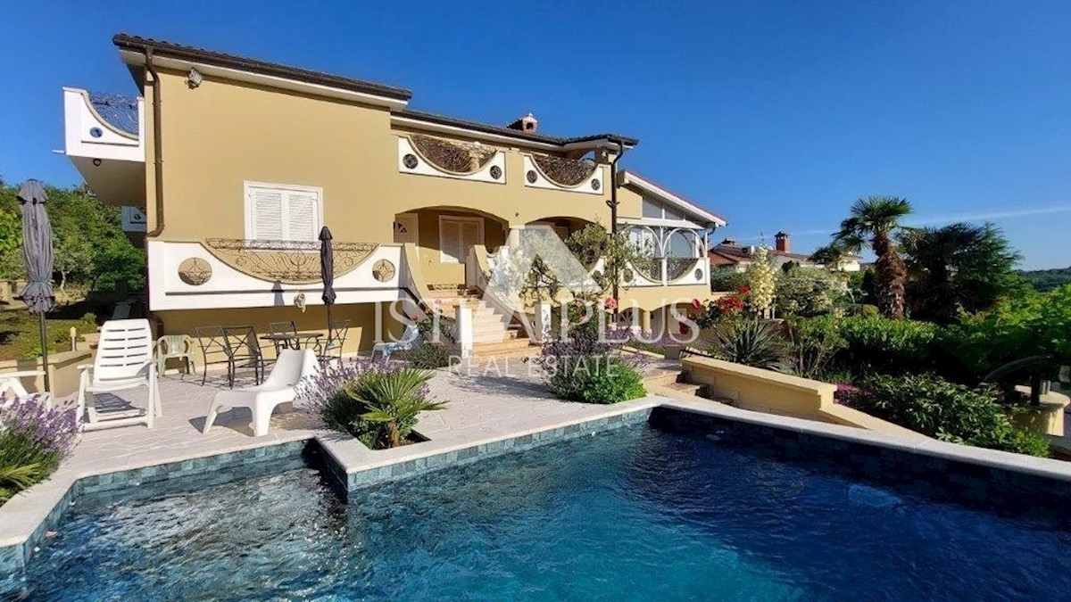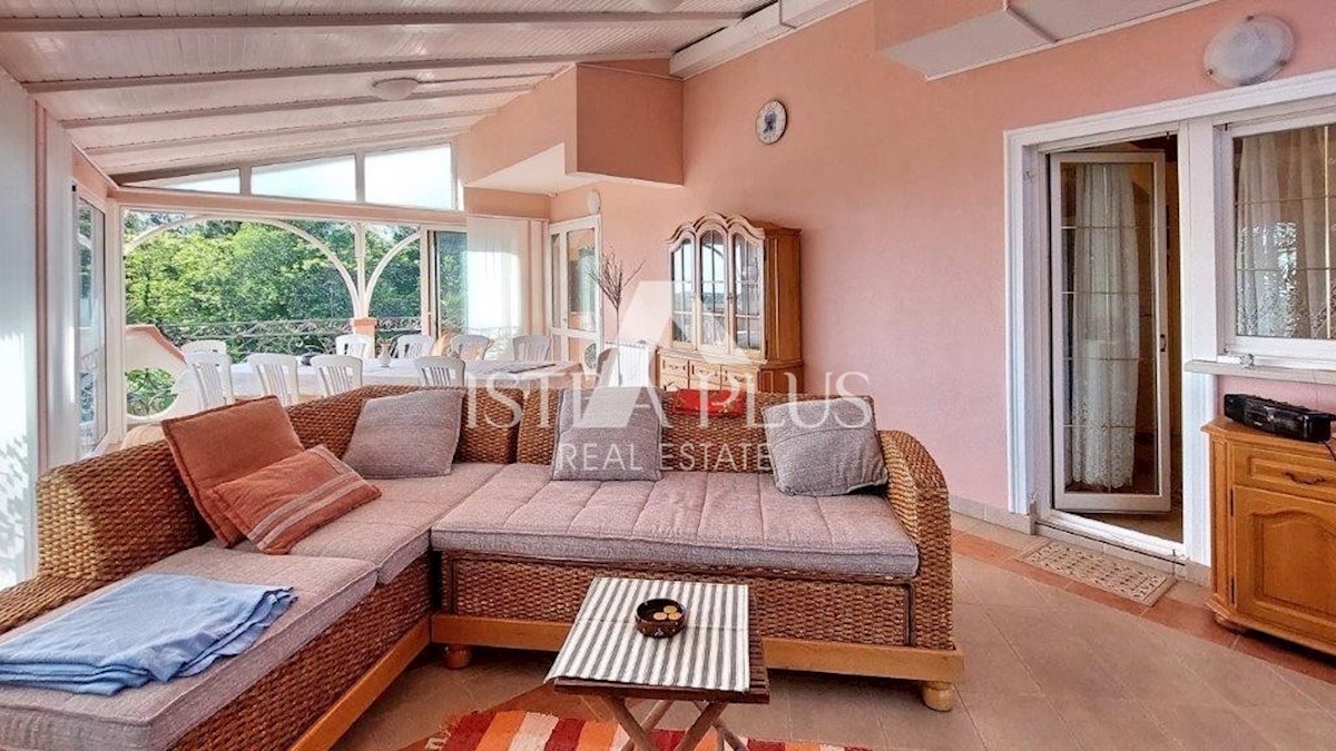 K102 Poreč - Umgebung, Haus mit 2 Wohnungen, Swimmingpool und Meerblick Ein zum Verkauf stehendes Einfamilienhaus mit einer Gesamtfläche von 357 m2 in der Nähe von Poreč besteht aus einer großen zweistöckigen Wohnung im Erdgeschoss und im ersten Stock des
