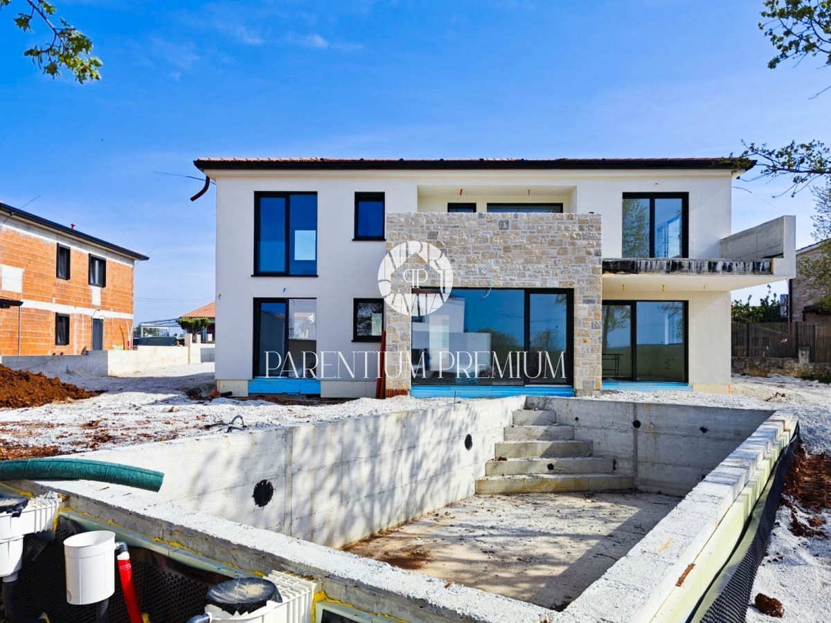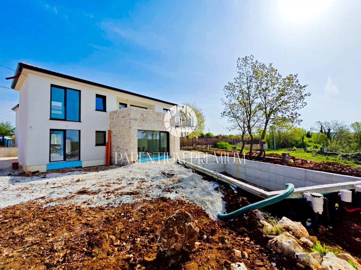 Neue moderne Villa in einem ruhigen istrischen Ort mit rustikalen Elementen