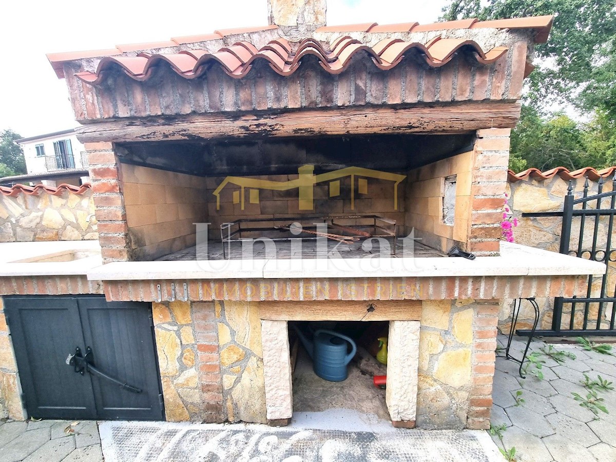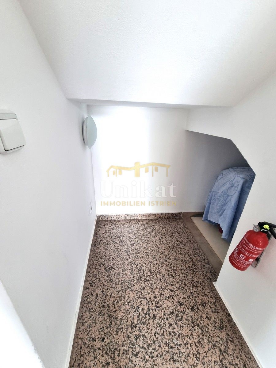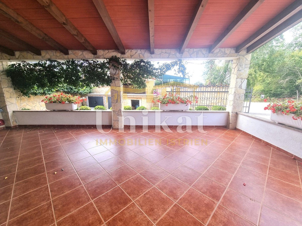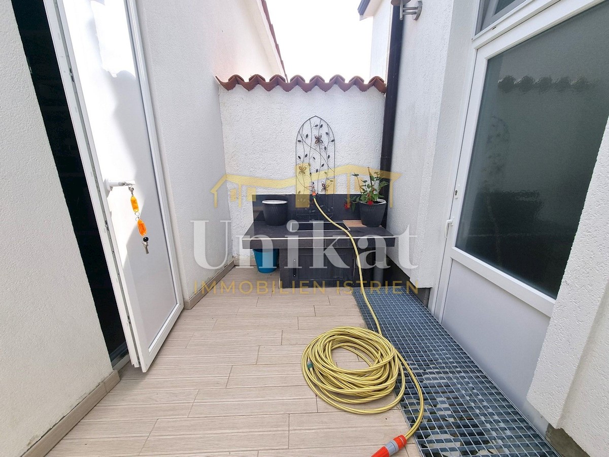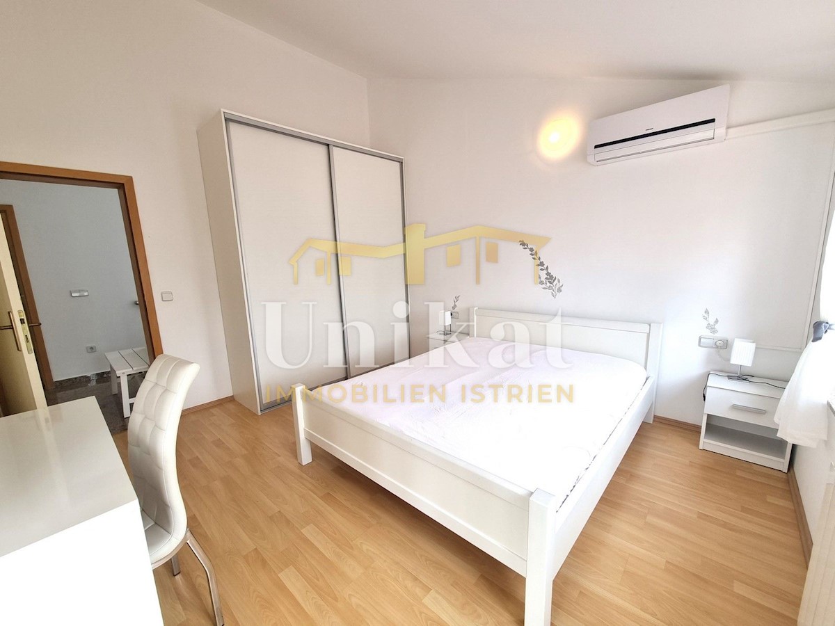 Schöne Doppelhaushälfte in ruhiger Lage, nur 6 km vom Meer und 5 km von der Stadt Poreč entfernt. Das Haus besteht aus Erdgeschoss und 1. Etage. Im Erdgeschoss befinden sich der Flur, ein Wohnbereich mit Küche und Essbereich, ein Schlafzimmer und ein Bade