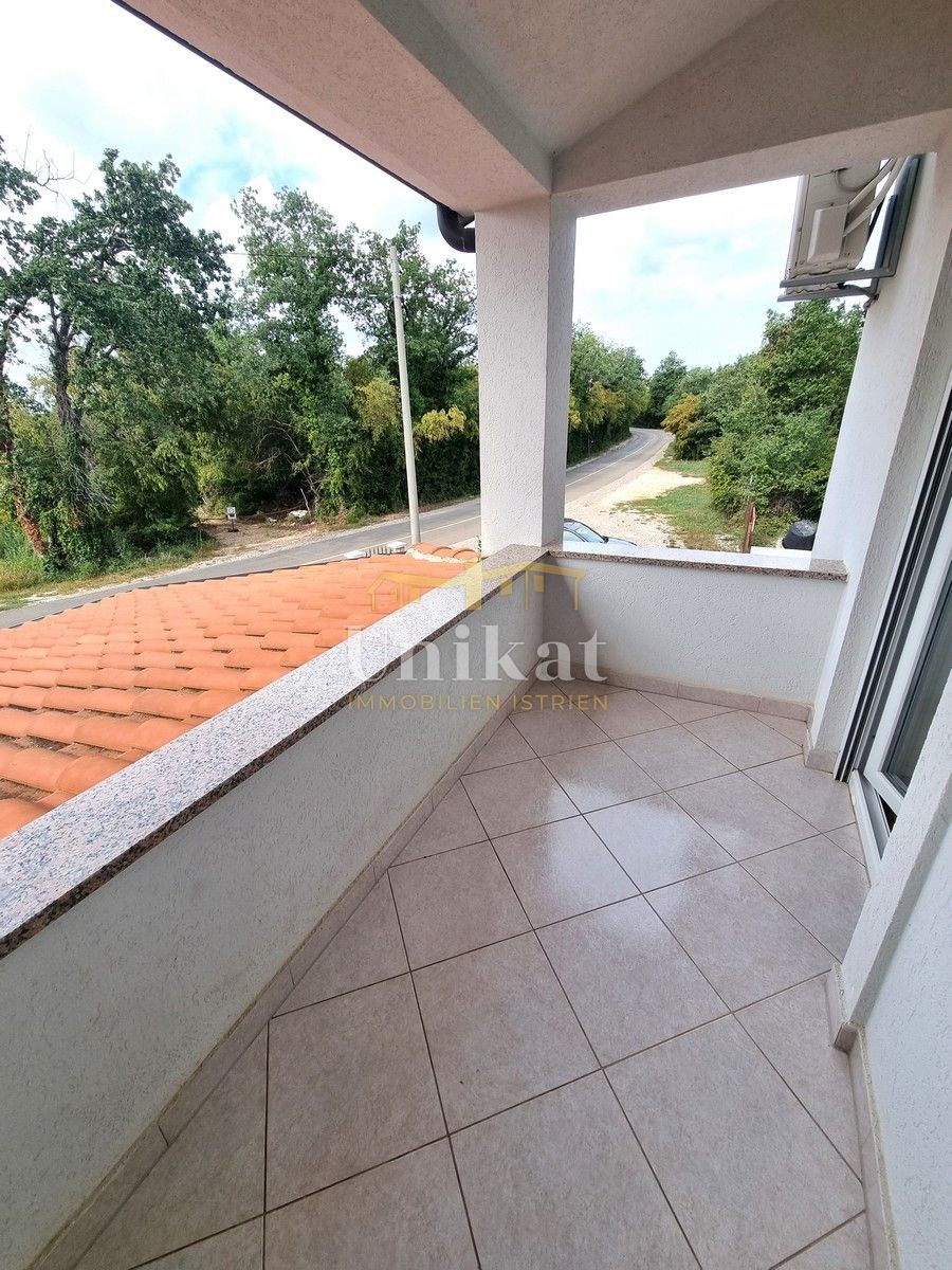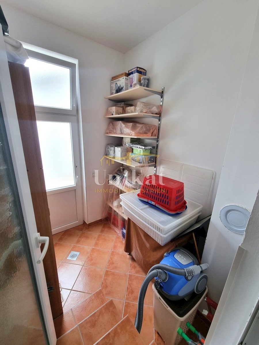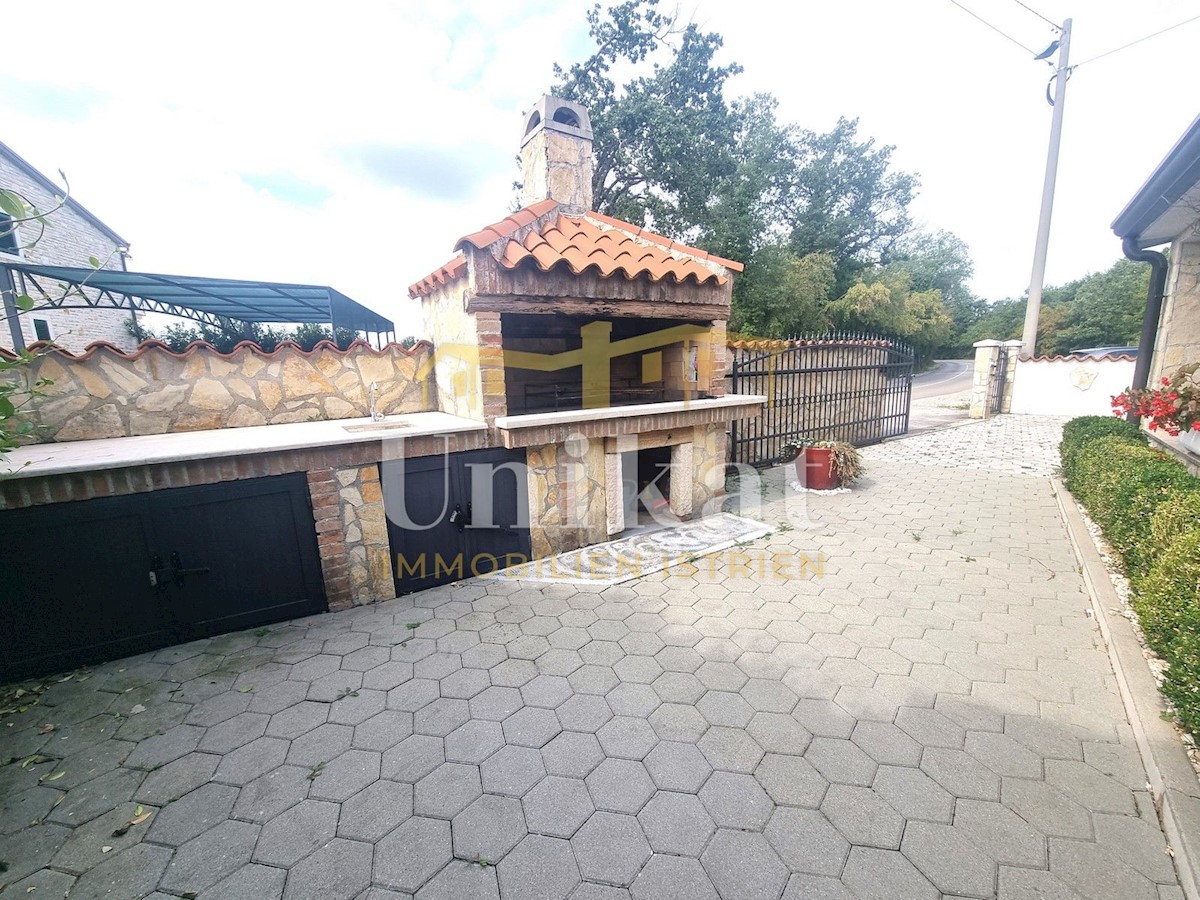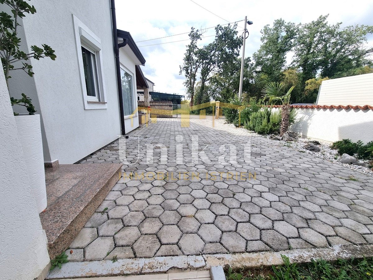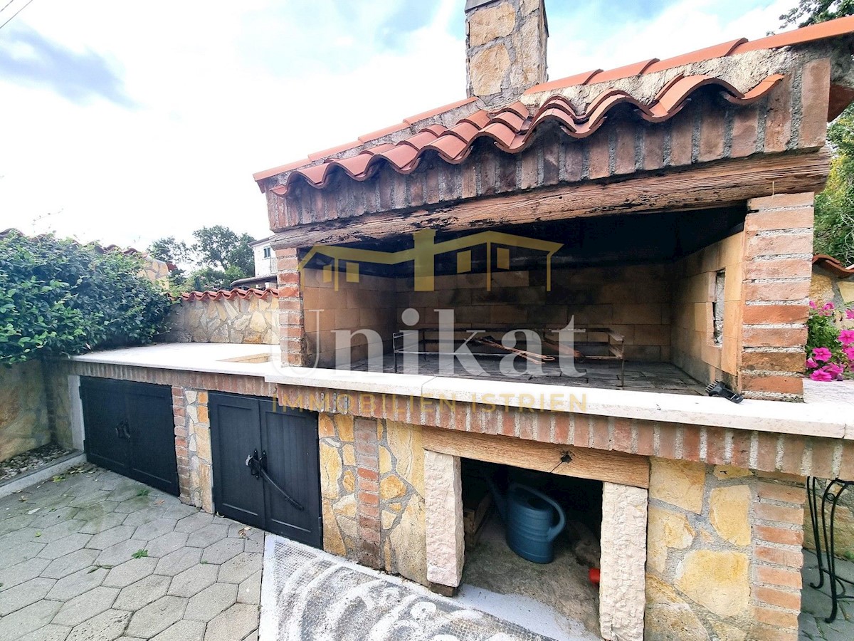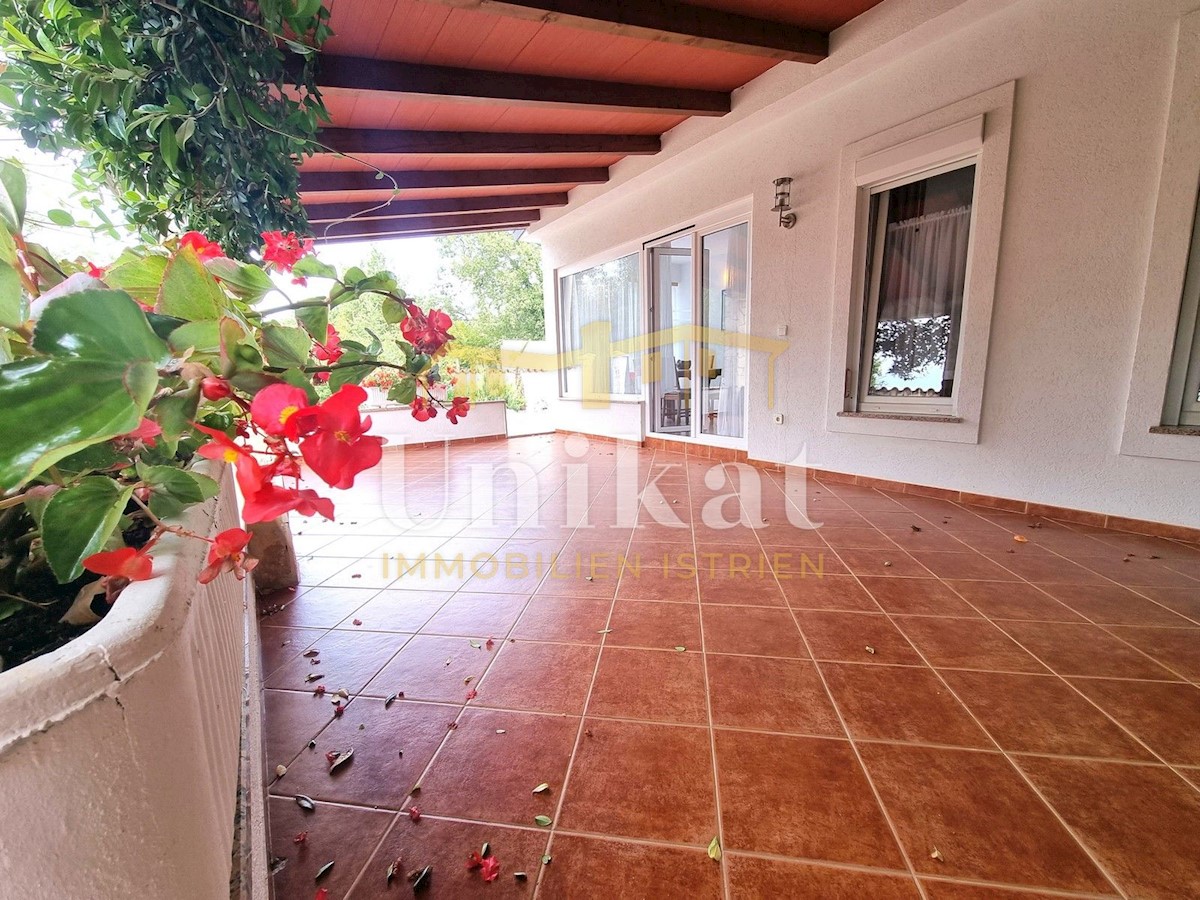 Schöne Doppelhaushälfte in ruhiger Lage, nur 6 km vom Meer und 5 km von der Stadt Poreč entfernt. Das Haus besteht aus Erdgeschoss und 1. Etage. Im Erdgeschoss befinden sich der Flur, ein Wohnbereich mit Küche und Essbereich, ein Schlafzimmer und ein Bade