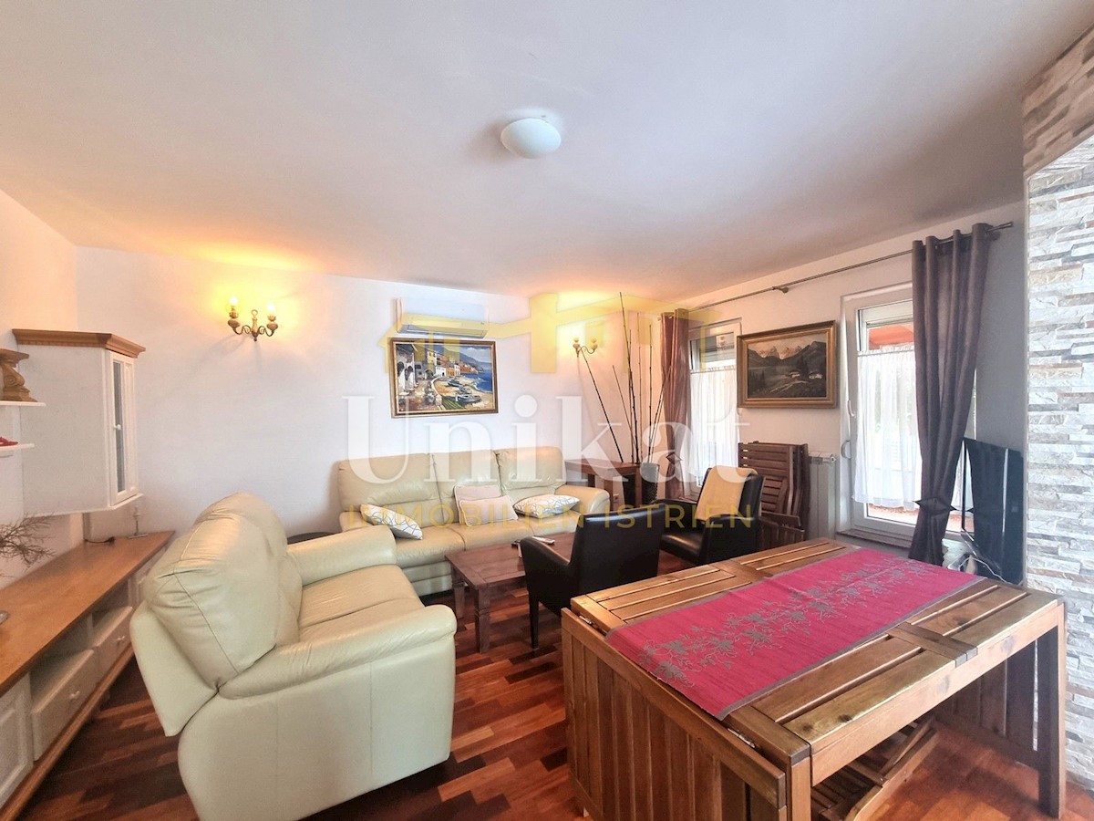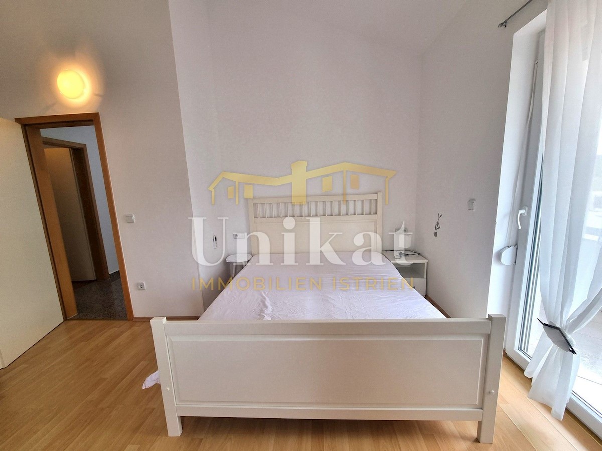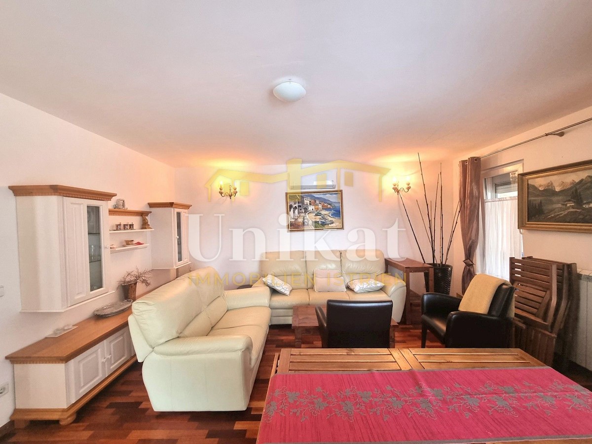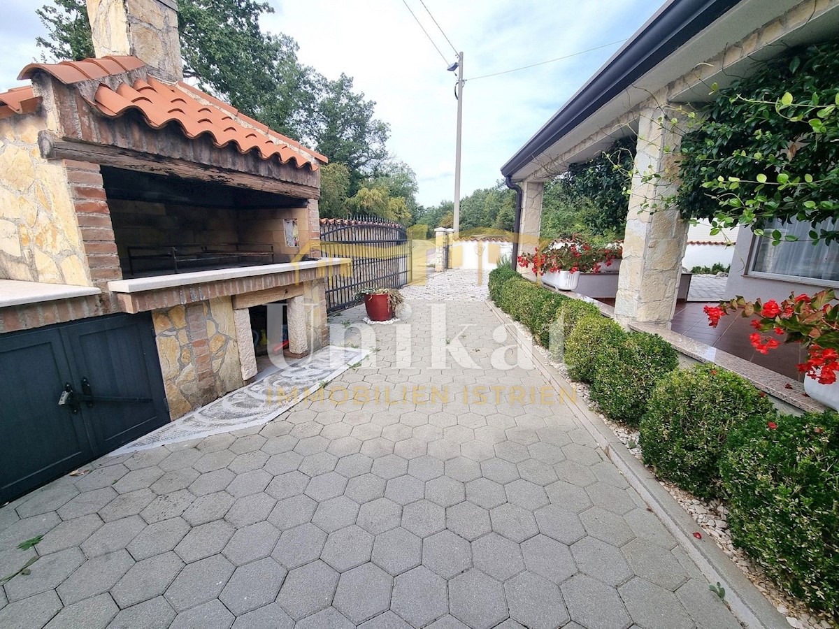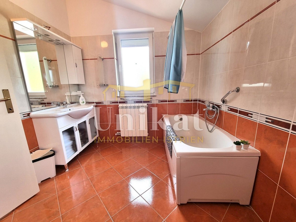 Schöne Doppelhaushälfte in ruhiger Lage, nur 6 km vom Meer und 5 km von der Stadt Poreč entfernt. Das Haus besteht aus Erdgeschoss und 1. Etage. Im Erdgeschoss befinden sich der Flur, ein Wohnbereich mit Küche und Essbereich, ein Schlafzimmer und ein Bade