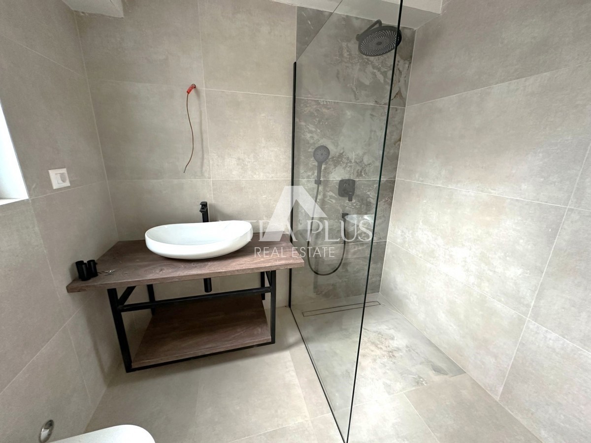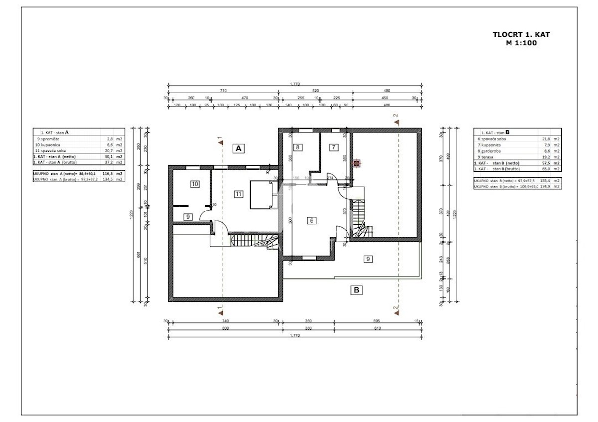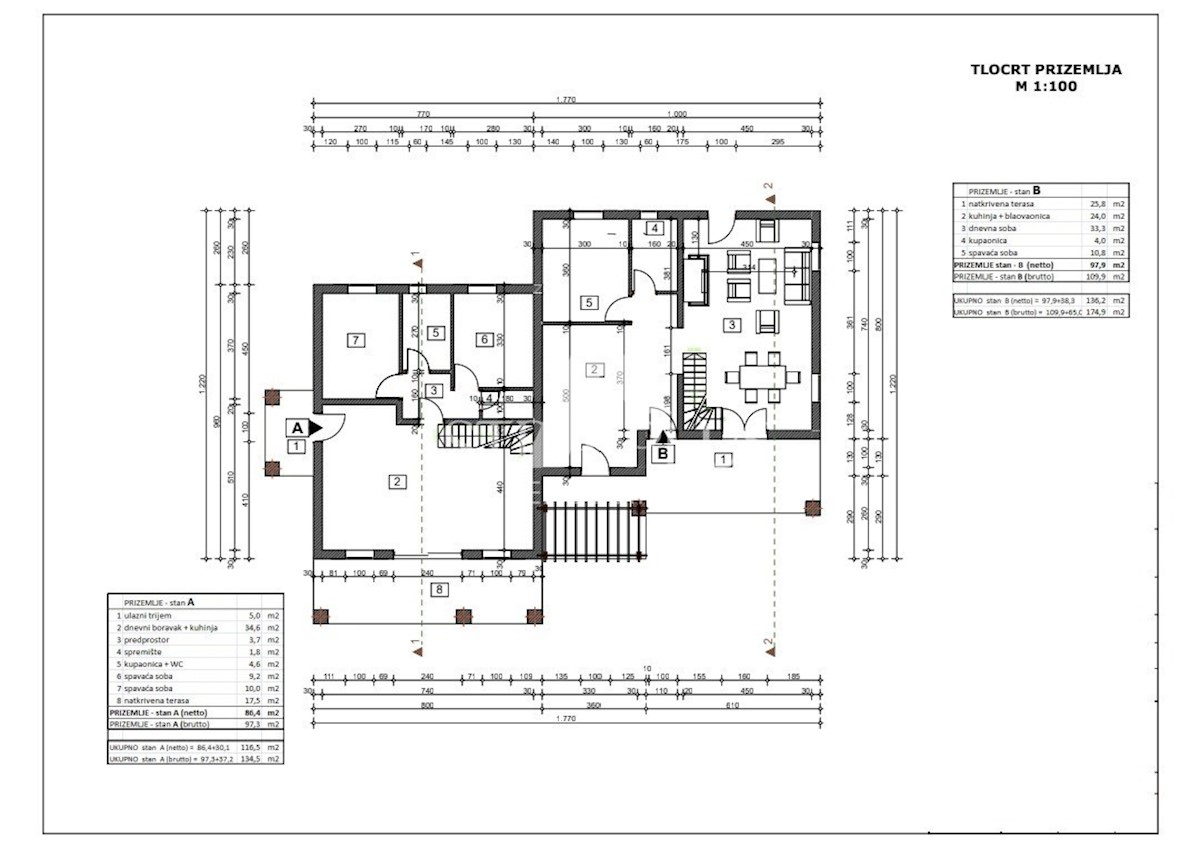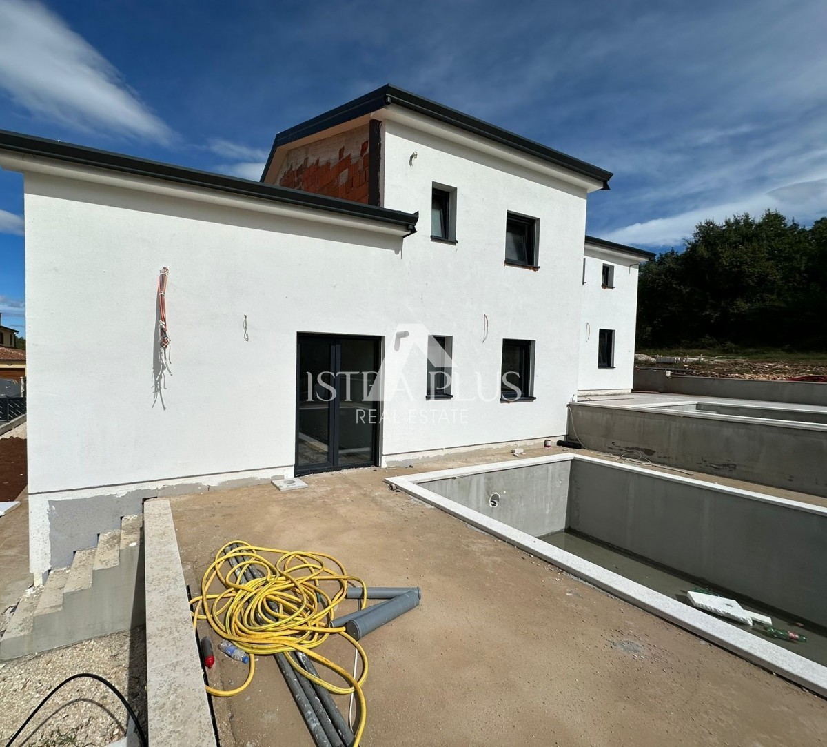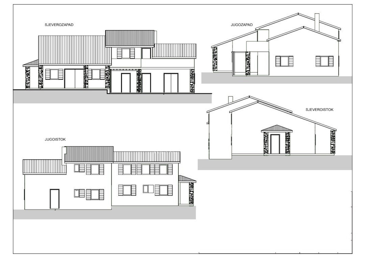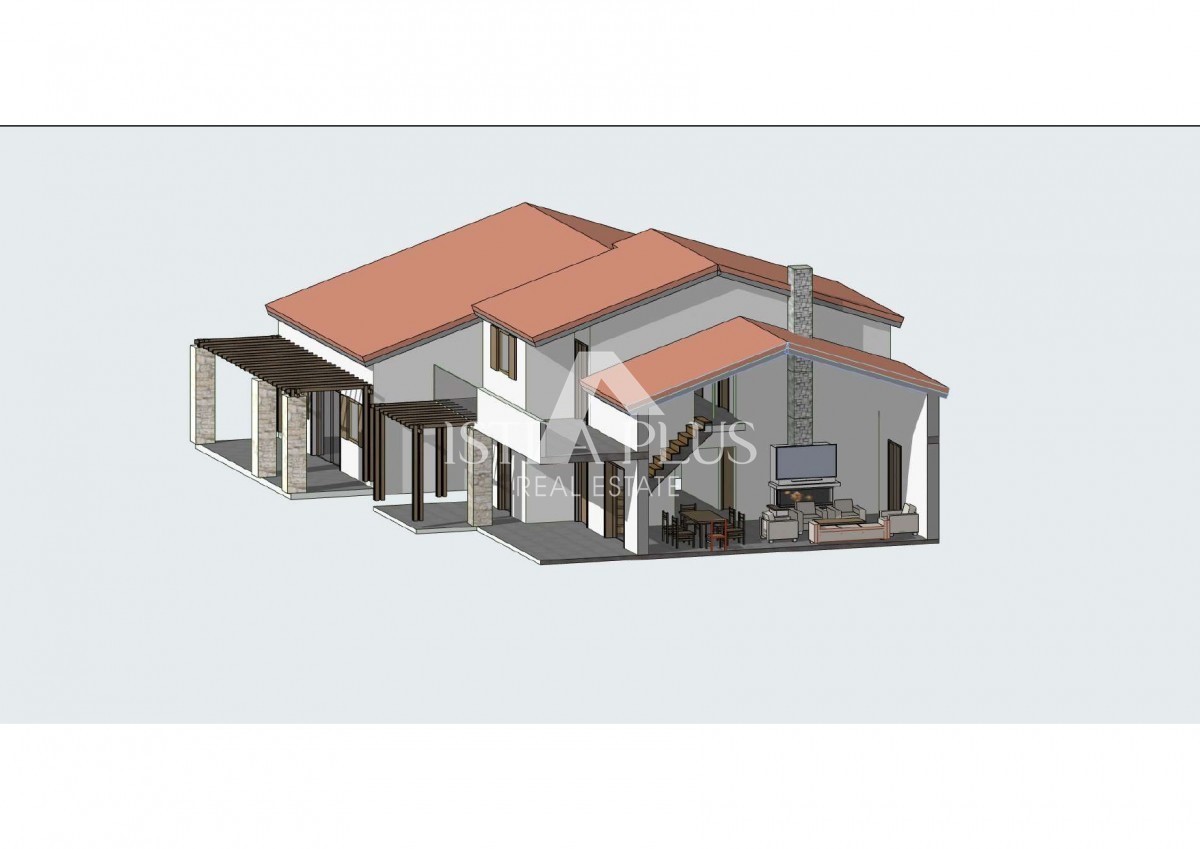 K106 In der Nähe von Poreč, in schöner und ruhiger Lage mit Blick auf das Meer, gibt es ein Geschäft, ein Postamt, Cafés und Restaurants in 600 m Entfernung und 12 km vom Meer entfernt. Haus A hat eine Fläche von 116,5 m2 und besteht aus zwei Etagen. Gru
