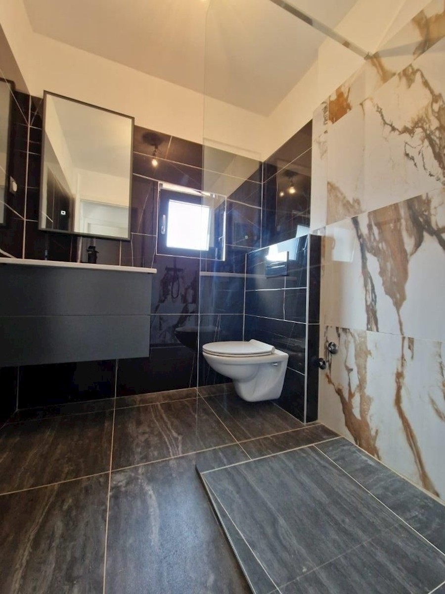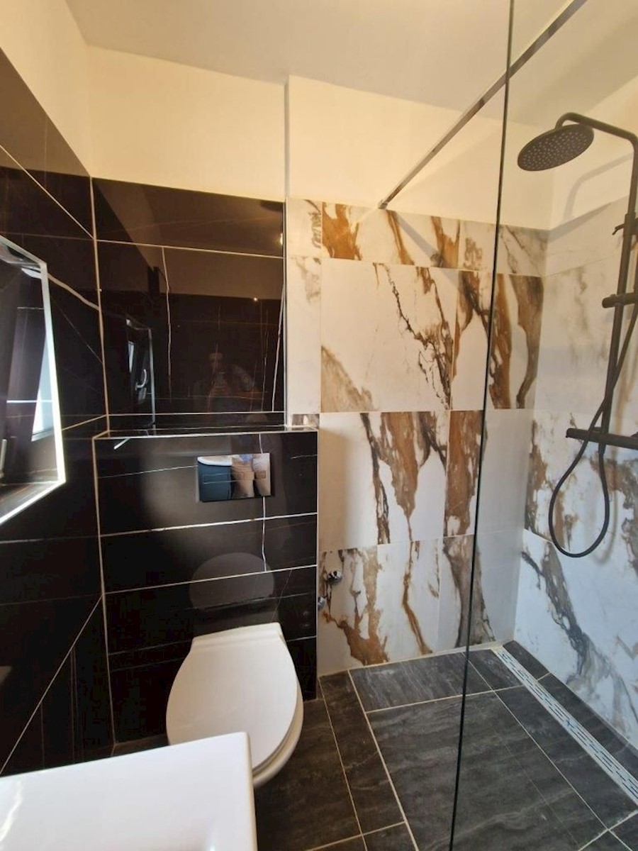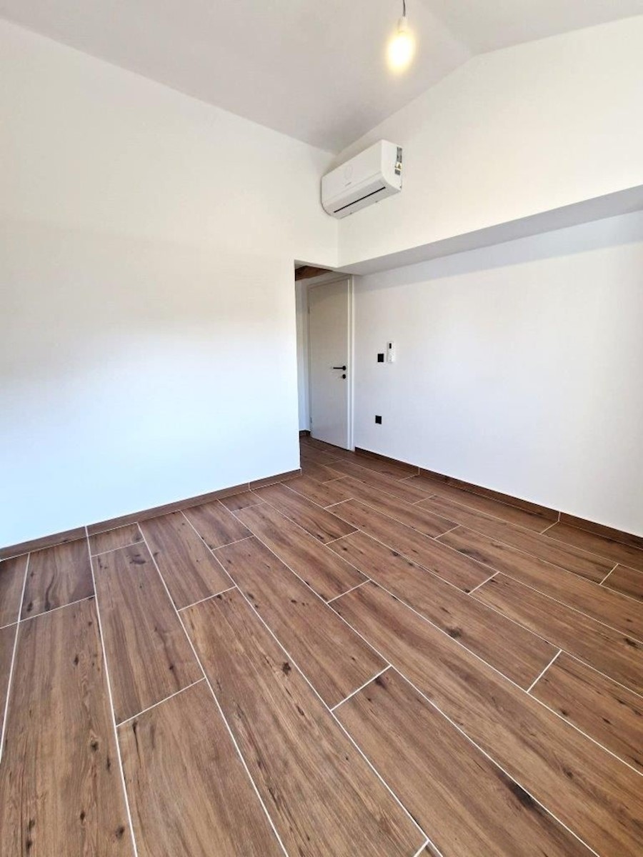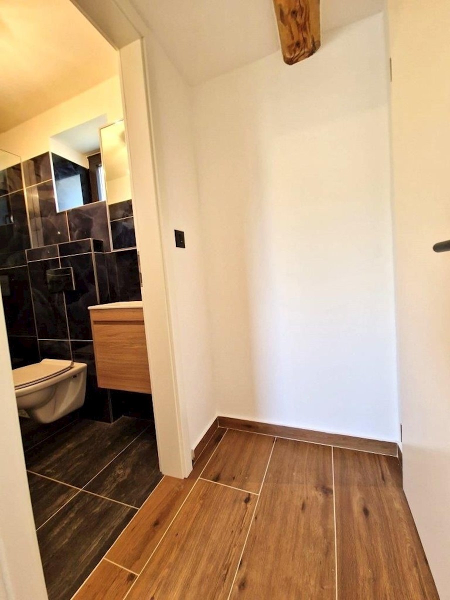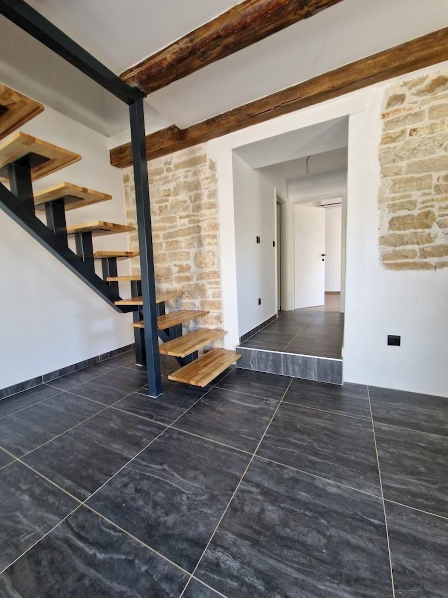 Samostojna kamnita hiša z vrtom v bližini Poreča.Hiša ima pritličje in prvo nadstropje ter se nahaja na izredno mirni lokaciji.V pritličju je dnevna soba s kuhinjo in jedilnico, spalnica, kopalnica in tehnični prostor/pralnica, v prvem nadstropju pa sta 2