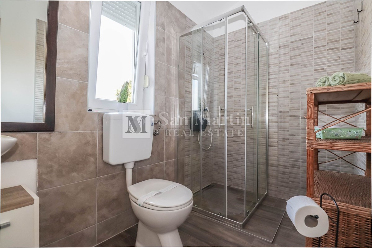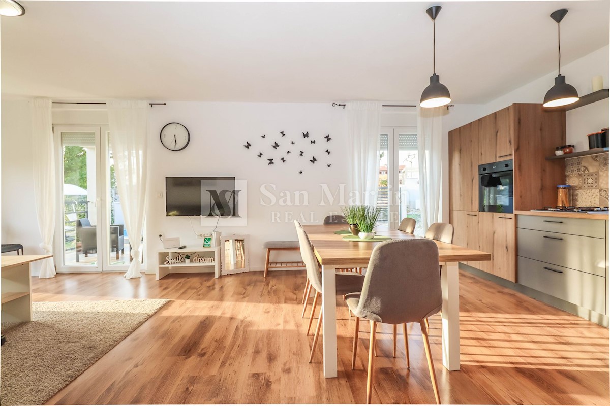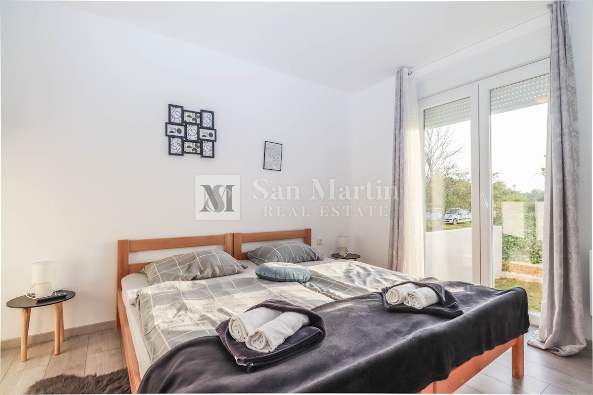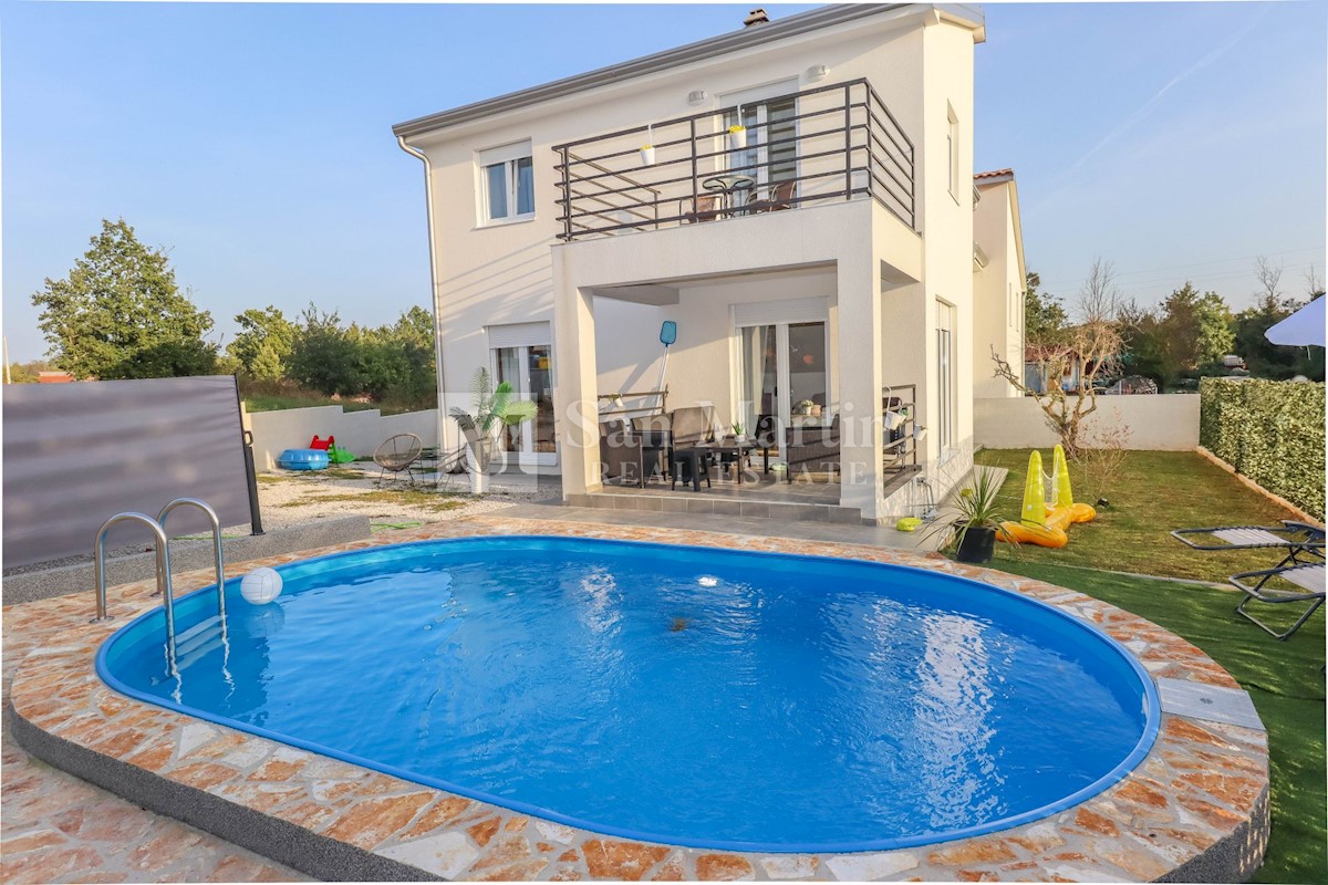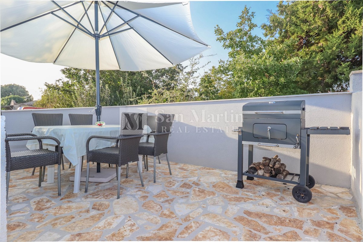 Poreč, okolica, Hiša z dvema stanovanjskima enotama, vsaka s štirimi spalnicami, ki se nahaja nedaleč od mesta Prva hiša ima v pritličju dnevno sobo, kuhinjo in jedilnico, ki sta odlično povezani z zunanjostjo, ter bazenom ter eno spalnico in kopalnico.
