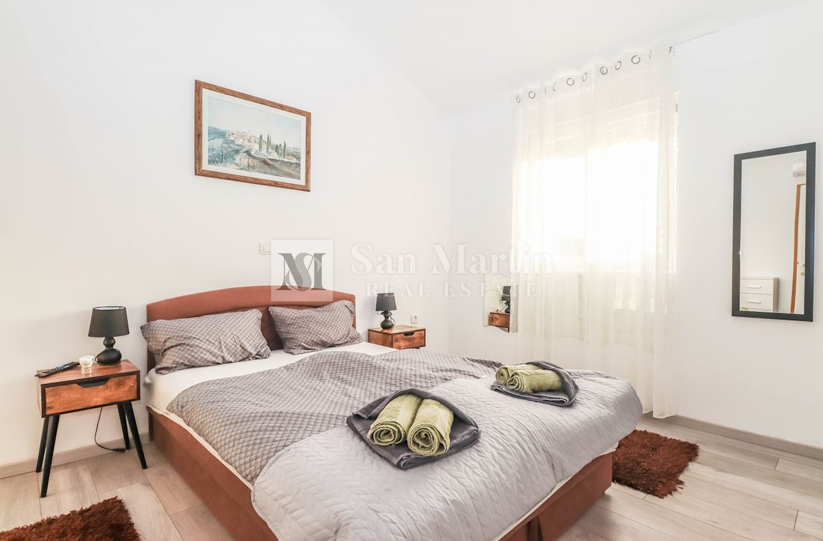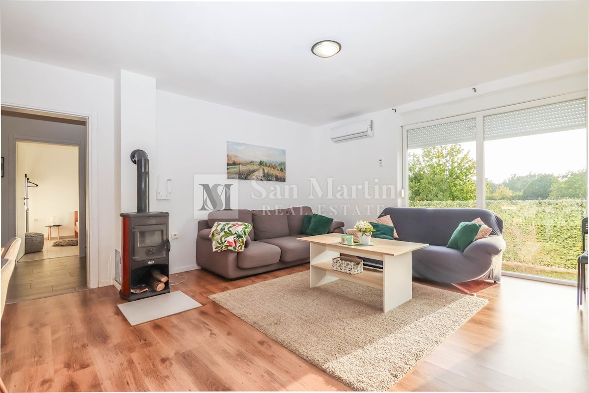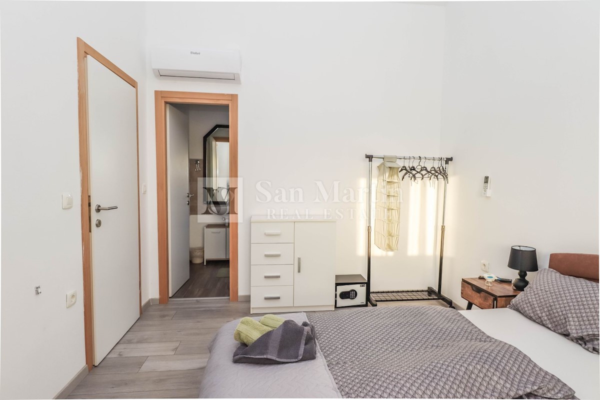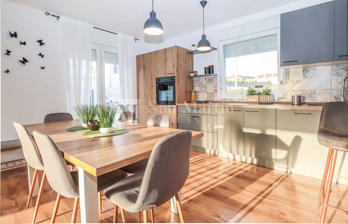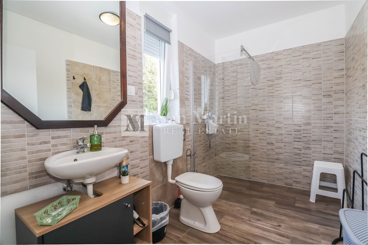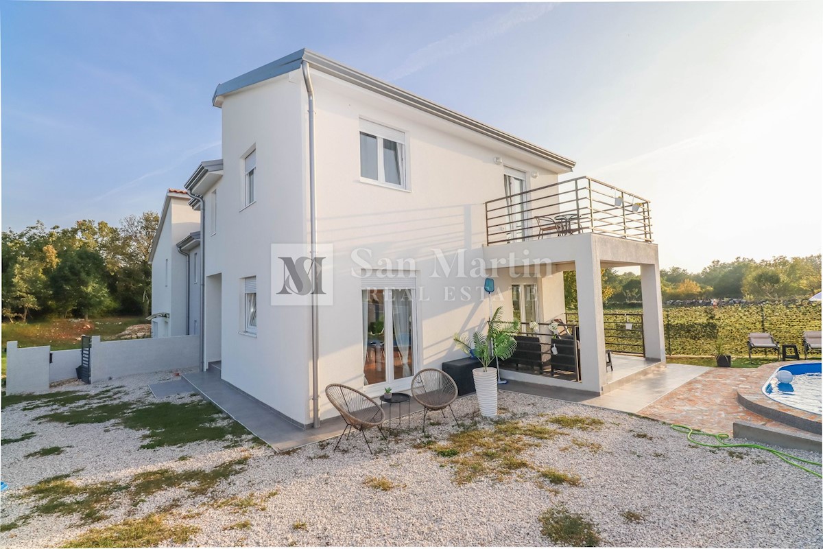 Poreč, okolica, Hiša z dvema stanovanjskima enotama, vsaka s štirimi spalnicami, ki se nahaja nedaleč od mesta Prva hiša ima v pritličju dnevno sobo, kuhinjo in jedilnico, ki sta odlično povezani z zunanjostjo, ter bazenom ter eno spalnico in kopalnico.