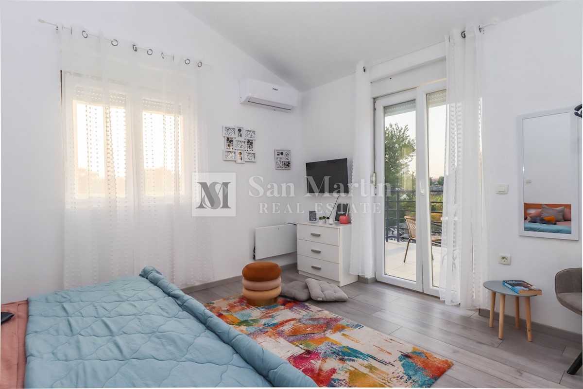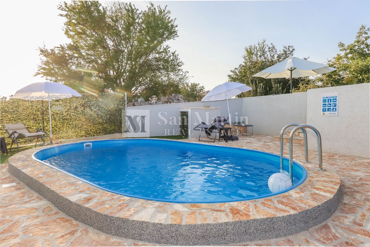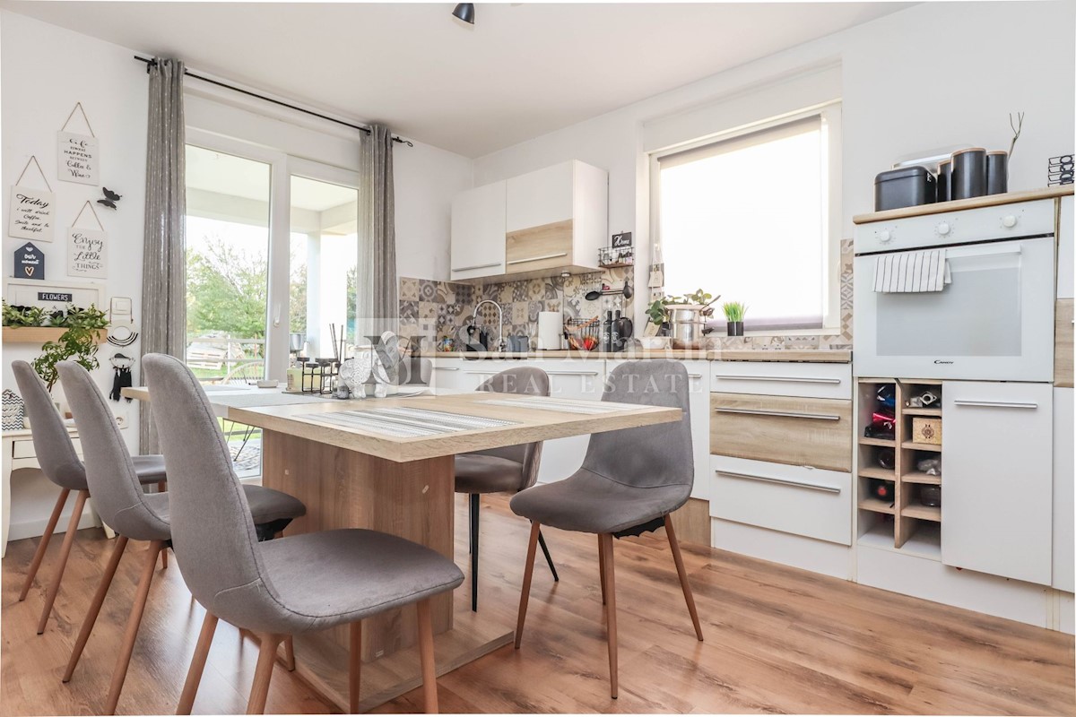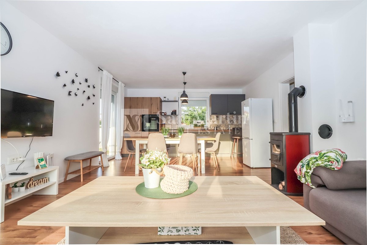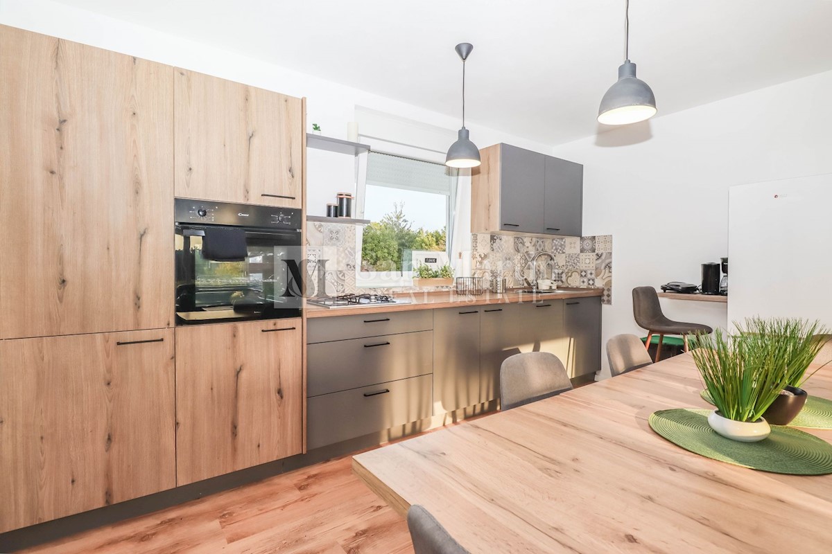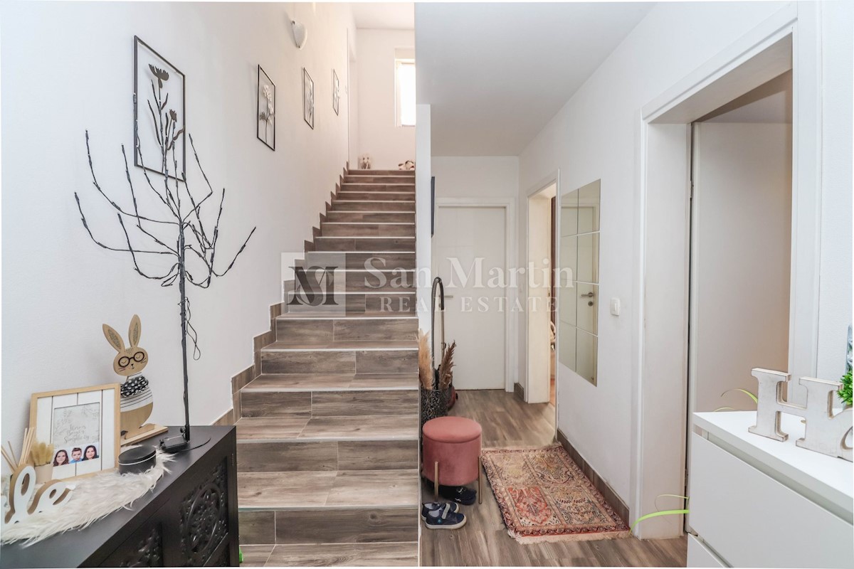 Poreč, okolica, Hiša z dvema stanovanjskima enotama, vsaka s štirimi spalnicami, ki se nahaja nedaleč od mesta Prva hiša ima v pritličju dnevno sobo, kuhinjo in jedilnico, ki sta odlično povezani z zunanjostjo, ter bazenom ter eno spalnico in kopalnico.