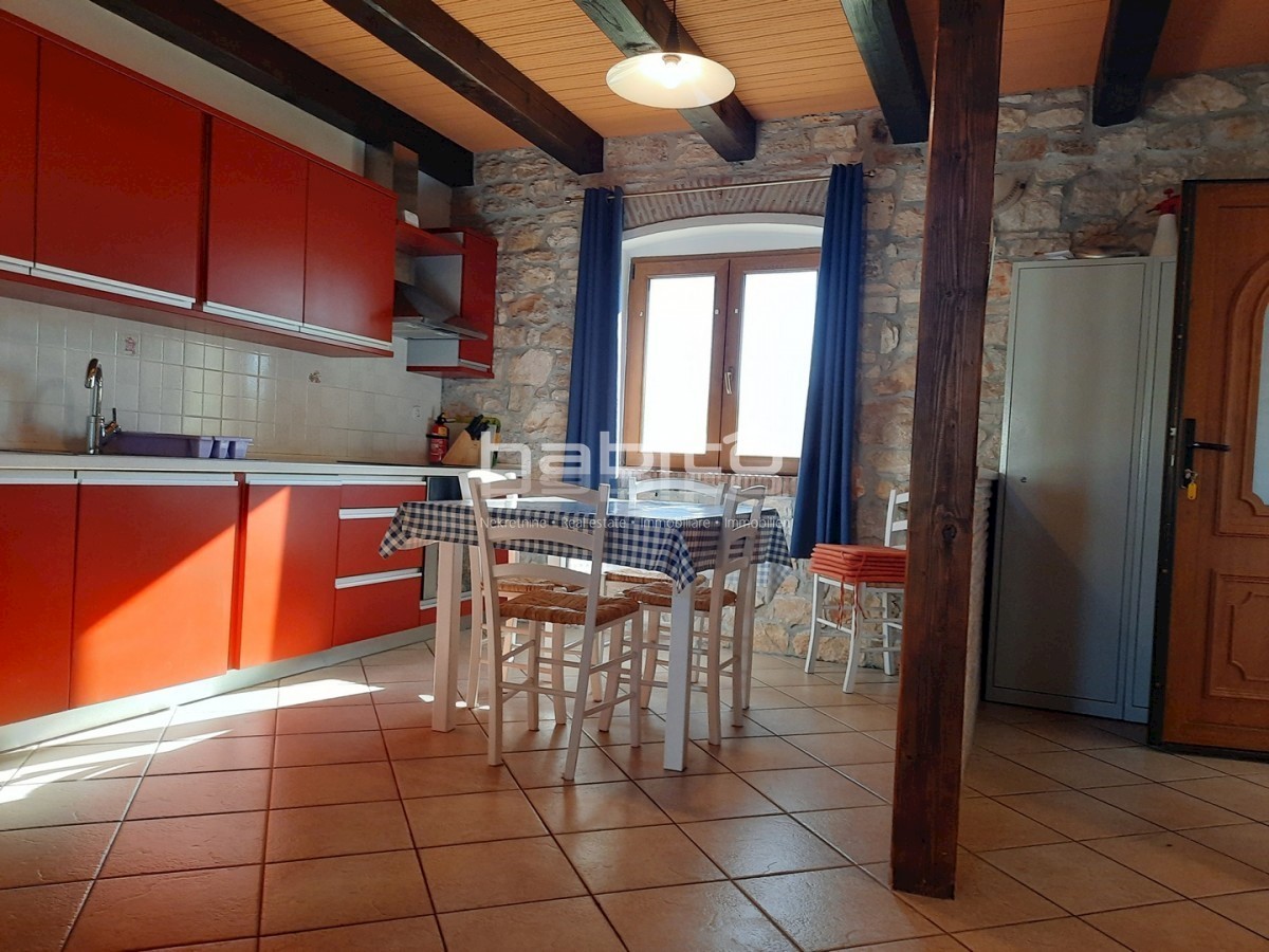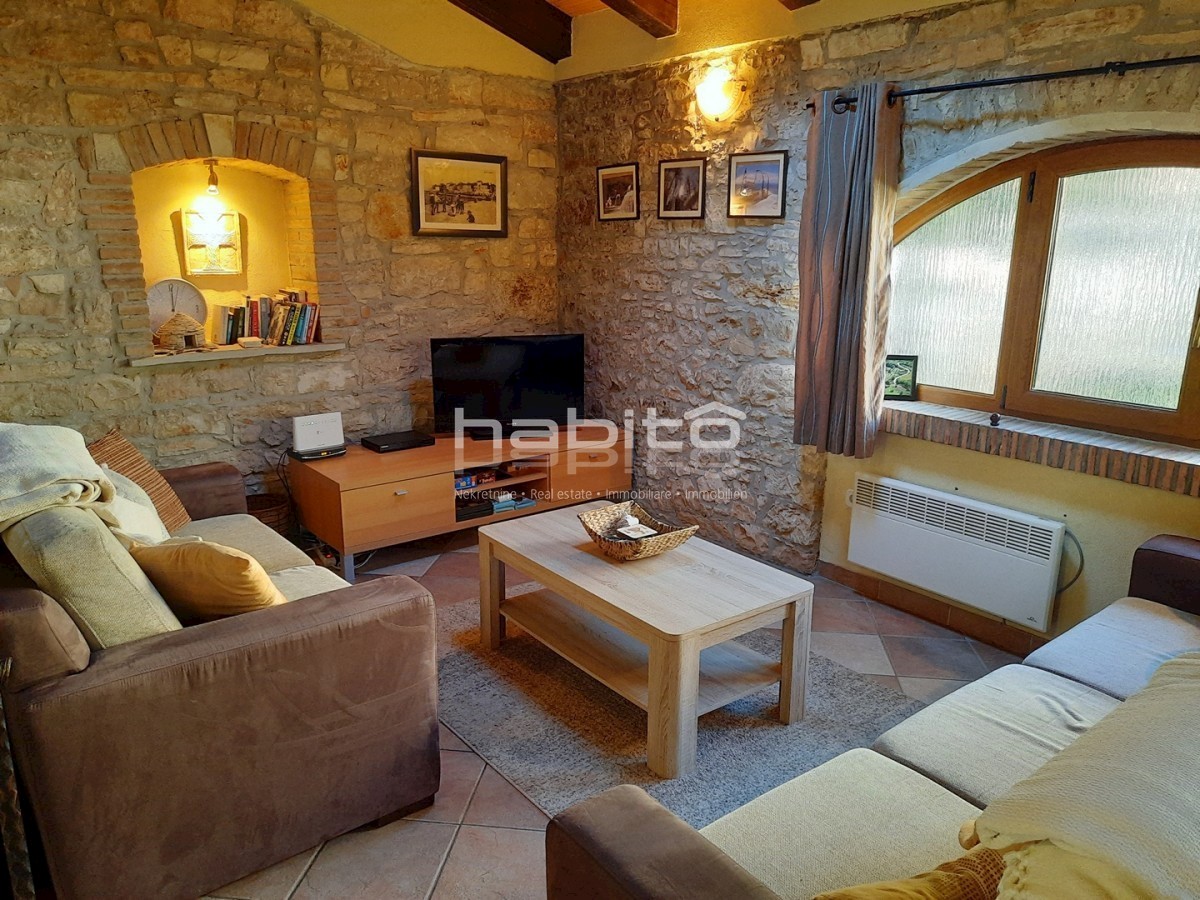 Ta popolnoma prenovljena kamnita hiša se nahaja v majhni vasici, le 5 km od morja. Gre za vrstno hišo (srednja) velikosti 110 m2 v dveh etažah. V pritličju je pokrita terasa, kopalnica, kuhinja, jedilnica in dnevna soba s kaminom, v prvem nadstropju pa dv