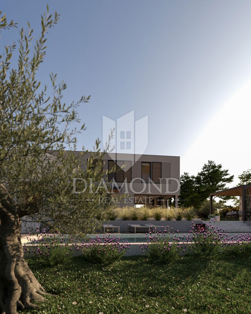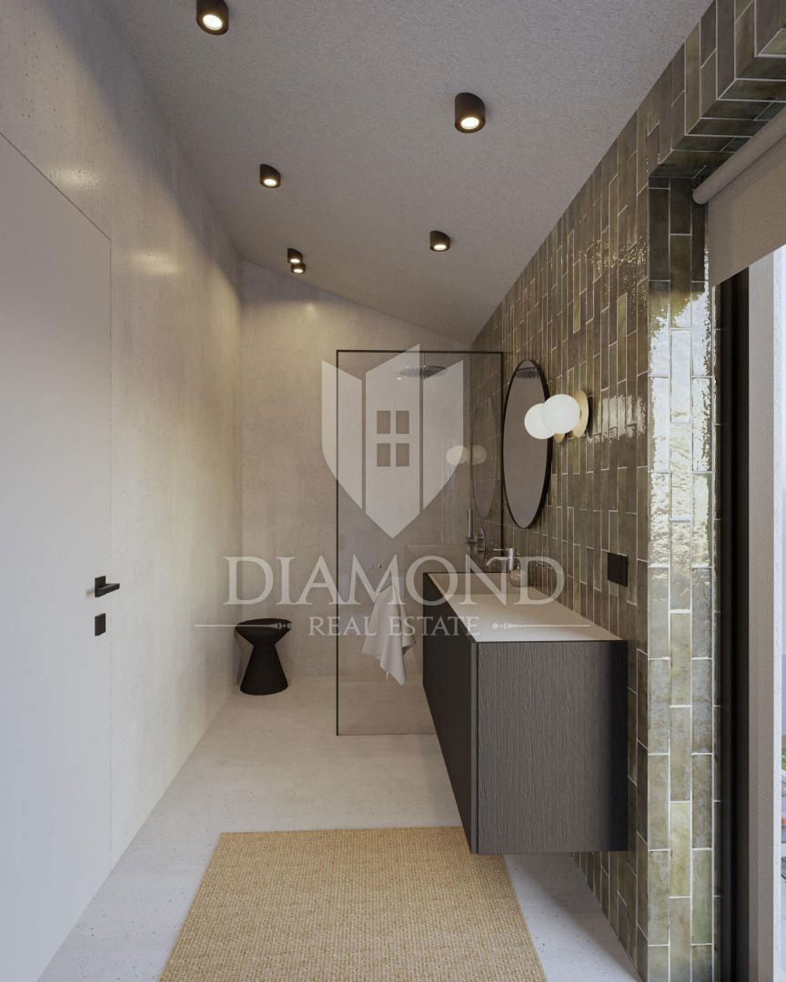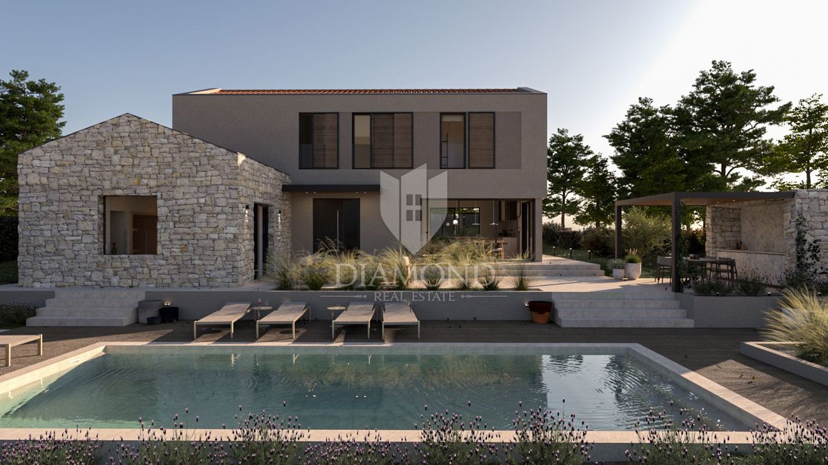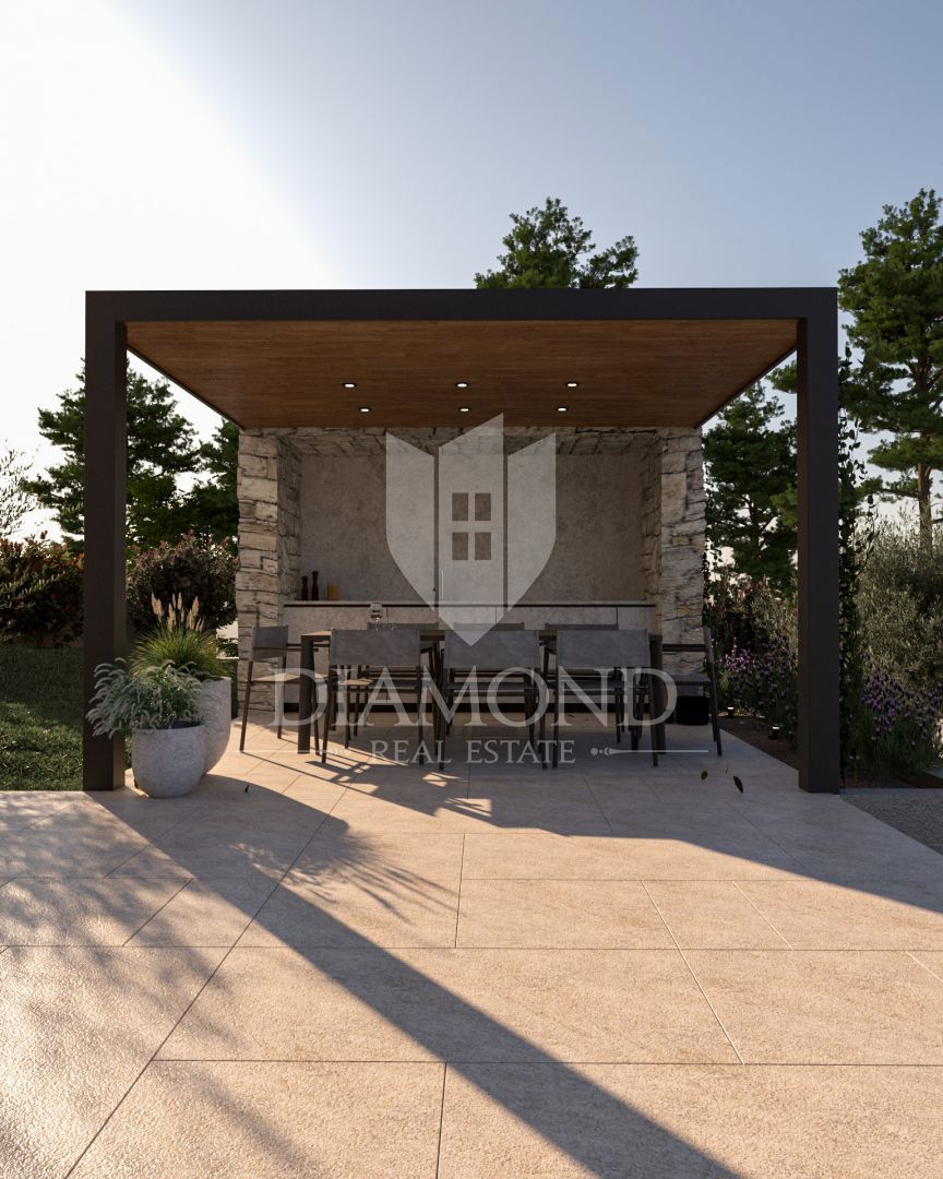 Poreč, okolica, fantastična vila v mirnem okolju! Ta impozantna vila v okolici Poreča je pravi biser arhitekture in razkošja. S kamnitimi poudarki in skrbno načrtovanim prostorom ta vila ponuja sodoben življenjski slog, obogaten s tradicionalnimi elemen
