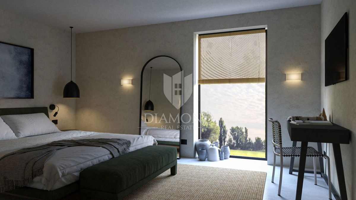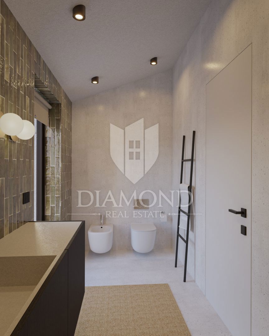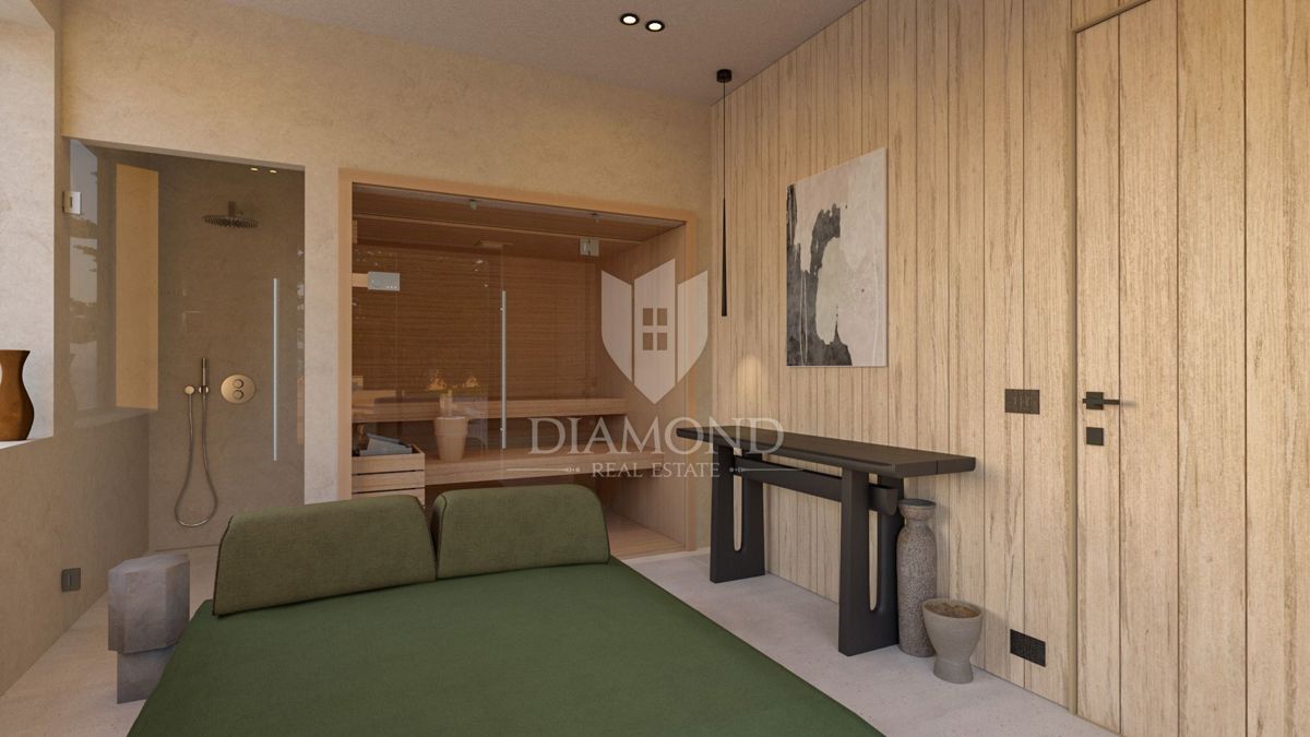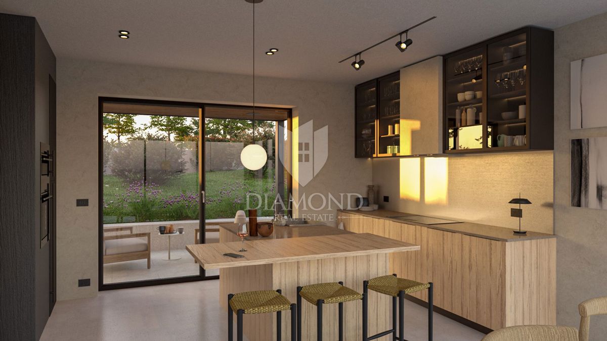 Poreč, okolica, fantastična vila v mirnem okolju! Ta impozantna vila v okolici Poreča je pravi biser arhitekture in razkošja. S kamnitimi poudarki in skrbno načrtovanim prostorom ta vila ponuja sodoben življenjski slog, obogaten s tradicionalnimi elemen