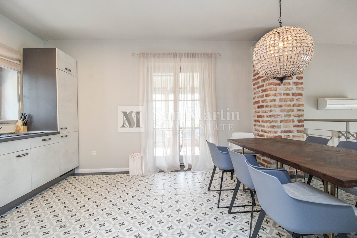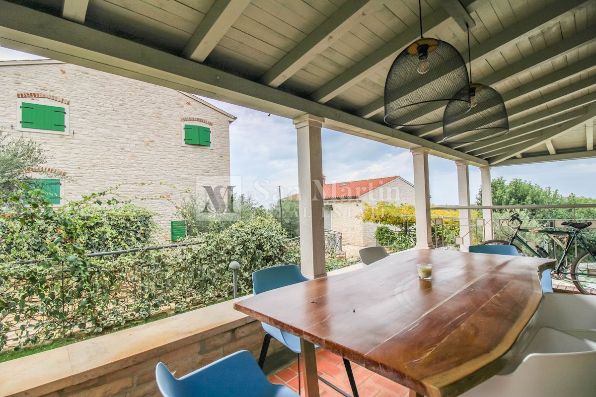 Poreč, okolica - samostojna kamnita hiša na robu naselja V bližini Poreča, na slikovitem, mirnem mestu, se prodaja res lepa kamnita hiša. Ta lepotec se nahaja na zemljišču velikosti 781 m2, njegova skupna površina pa je 200 m2. Hiša se razteza v dveh eta